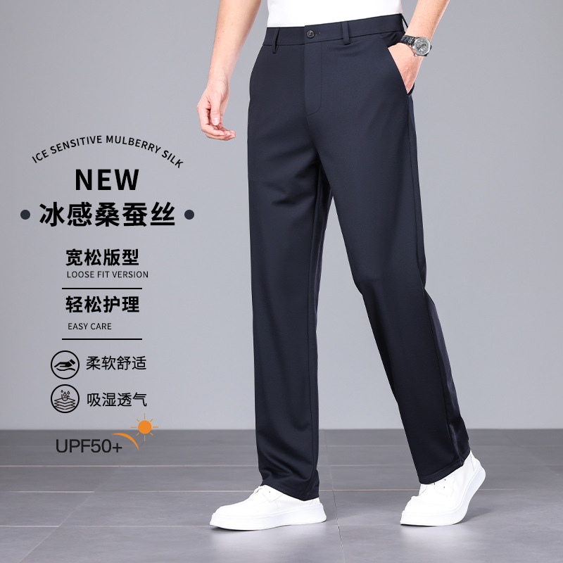 Chiếc quần dành cho nam giới này được dệt từ sợi tơ tự nhiên, mang đến cảm giác mát mẻ ngay khi mặc vào, đặc biệt phù hợp cho mùa hè. Chất vải mỏng nhẹ, co giãn tốt và rất thoáng khí. Kiểu dáng thẳng đứng lịch sự, dễ dàng phối hợp cho cả đi làm và những lúc thư giãn. Bạn có thể giặt như quần áo thông thường và ủi ở nhiệt độ vừa phải để giữ dáng quần bền đẹp. | Tên sản phẩm: Quần Nam Chất Liệu Lụa Tơ Tằm Thoáng Khí Hàng Mùa Hè - Thời Trang Nam | Mã sản phẩm: B1187 - Giá: 980.000đ | Mã nhà sản xuất: WATYM-G03Hình ảnh sản phẩm