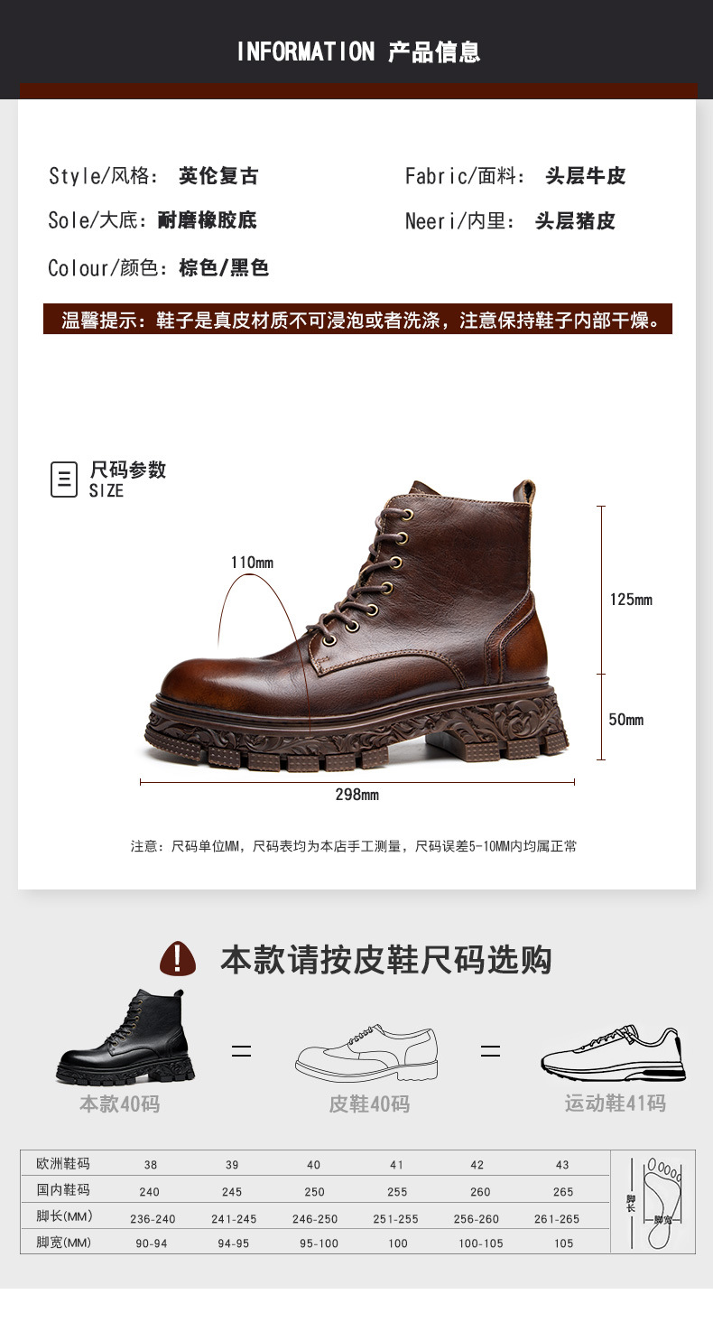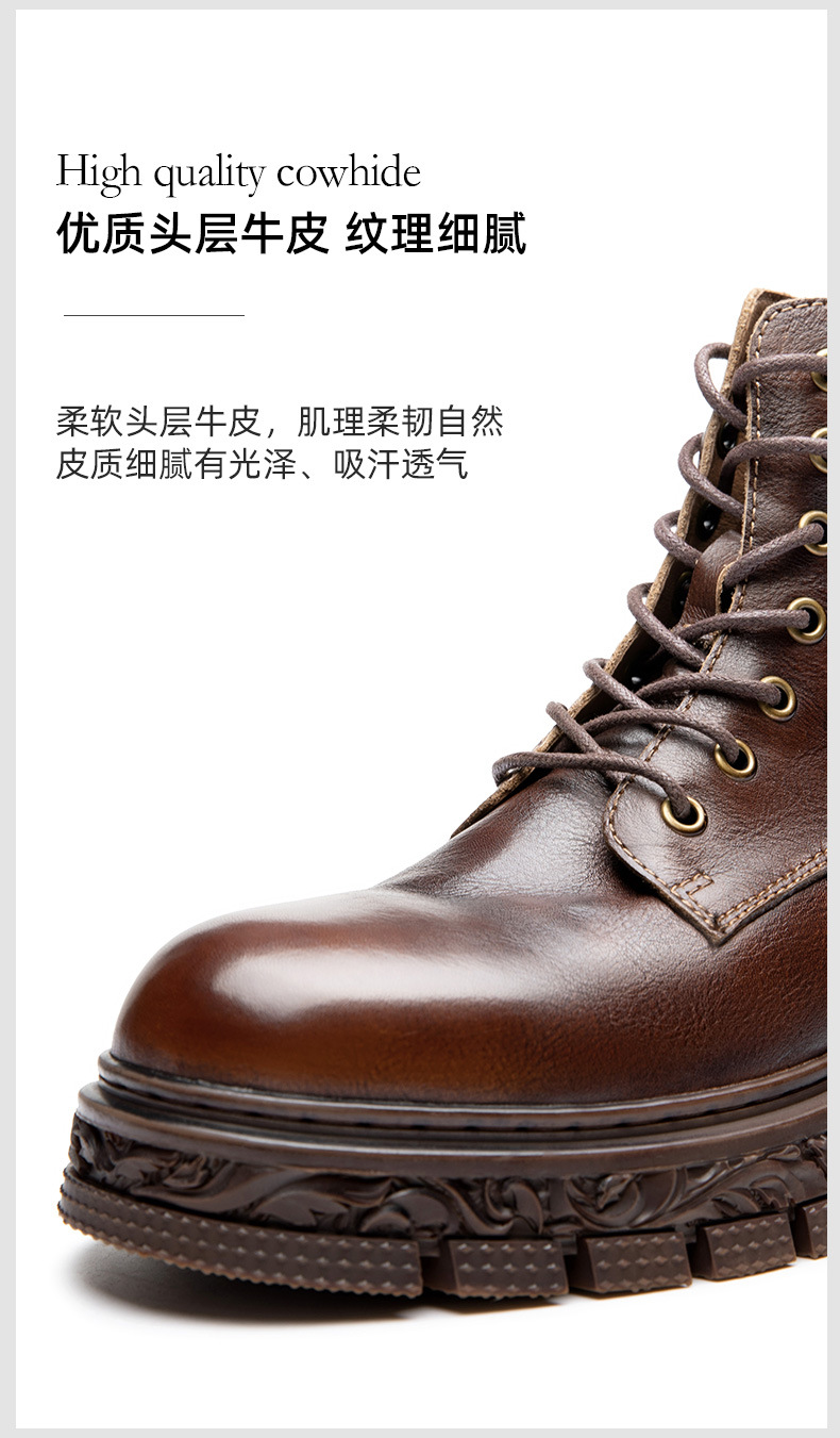 Giày bốt cổ cao này mang phong cách cổ điển với kiểu dáng mạnh mẽ. Sản phẩm được làm từ chất liệu da bò tự nhiên, mang lại độ bền và khả năng thoáng khí tốt. Đế giày dày giúp bảo vệ đôi chân và tăng thêm phần khí chất. Bạn có thể dễ dàng phối cùng quần jeans hay quần vải để tạo nên vẻ ngoài cá tính. Sử dụng hàng ngày và vệ sinh bằng khăn mềm để giữ giày luôn sạch đẹp. | Tên sản phẩm: Giày Da Nam Chất Liệu Da Bò Thoáng Khí Đế Cao Phục Cổ Cổ Điển - Giày Dép Nam | Mã sản phẩm: B1222 - Giá: 2.670.000đ | Mã nhà sản xuất: SHDT-G06Hình ảnh sản phẩm