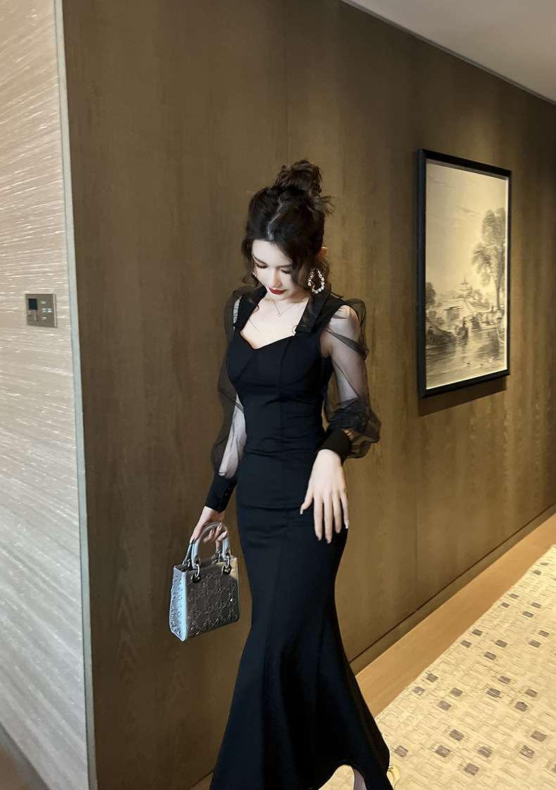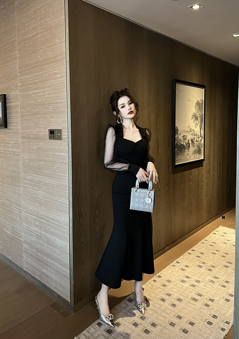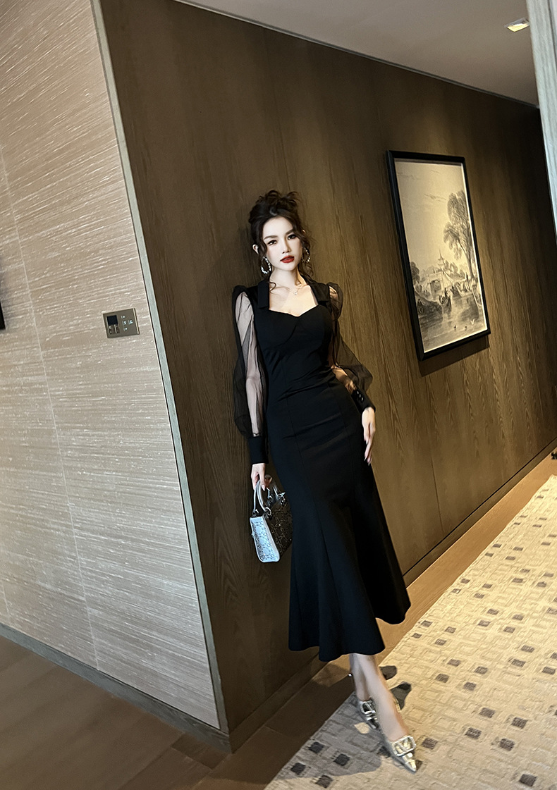 Chiếc đầm dáng dài lấy cảm hứng từ phong cách thanh lịch cổ điển. Thiết kế cổ vuông và tay bồng vừa vặn tôn dáng. Phần thân dưới xòe nhẹ như đuôi cá, tạo nét uyển chuyển khi di chuyển. Chất vải mềm mại kết hợp lớp voan mỏng nhẹ mang lại vẻ nữ tính. Sản phẩm phù hợp cho những buổi gặp mặt hoặc dạo phố. Có thể giặt bằng tay và phơi trong bóng mát để giữ dáng đẹp lâu dài. | Tên sản phẩm: Váy Đầm Liền Thân Dáng Dài Nữ Lưới Mỏng Kiểu Đuôi Cá Hàng Mùa Xuân Thu Đông - Thời Trang Nữ | Mã sản phẩm: B1224 - Giá: 1.130.000đ | Mã nhà sản xuất: CHDG-G04Hình ảnh sản phẩm