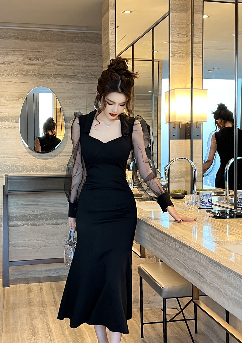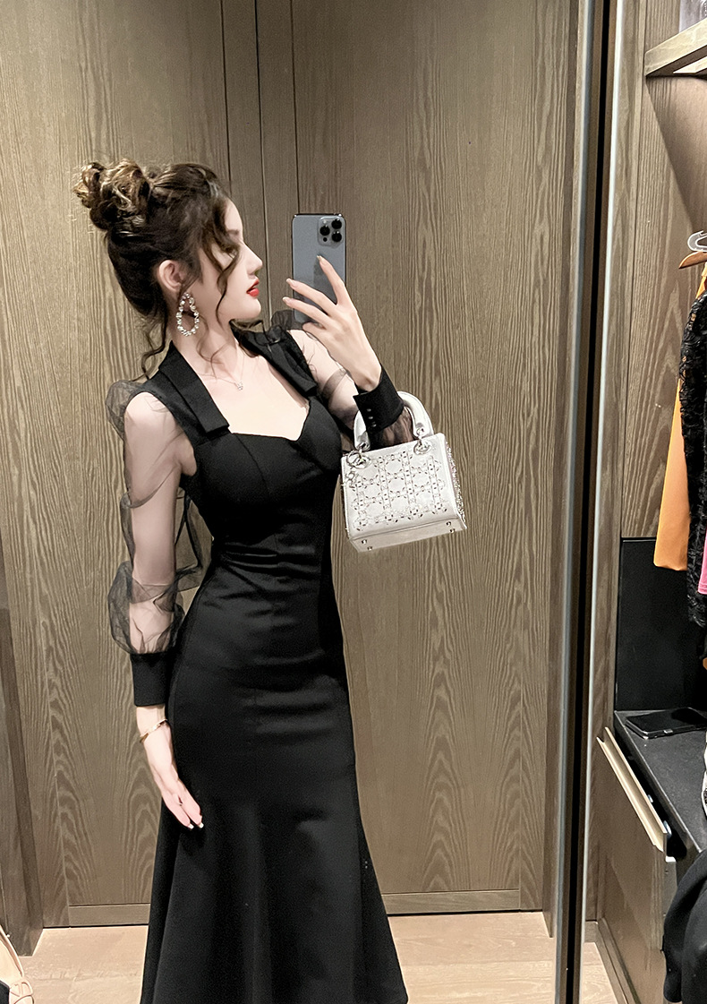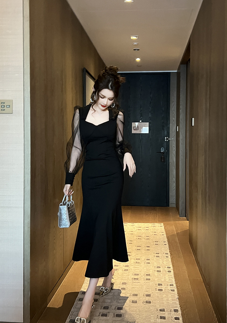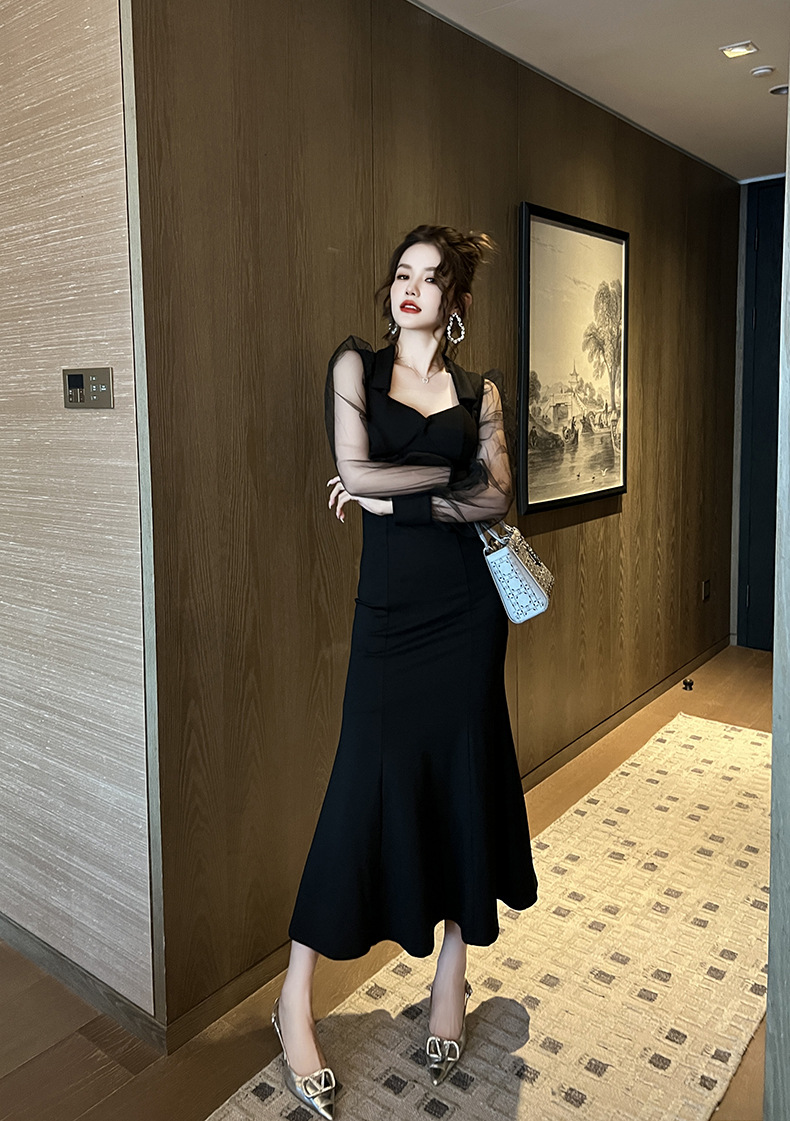 Chiếc đầm dáng dài lấy cảm hứng từ phong cách thanh lịch cổ điển. Thiết kế cổ vuông và tay bồng vừa vặn tôn dáng. Phần thân dưới xòe nhẹ như đuôi cá, tạo nét uyển chuyển khi di chuyển. Chất vải mềm mại kết hợp lớp voan mỏng nhẹ mang lại vẻ nữ tính. Sản phẩm phù hợp cho những buổi gặp mặt hoặc dạo phố. Có thể giặt bằng tay và phơi trong bóng mát để giữ dáng đẹp lâu dài. | Tên sản phẩm: Váy Đầm Liền Thân Dáng Dài Nữ Lưới Mỏng Kiểu Đuôi Cá Hàng Mùa Xuân Thu Đông - Thời Trang Nữ | Mã sản phẩm: B1224 - Giá: 1.130.000đ | Mã nhà sản xuất: CHDG-G04Hình ảnh sản phẩm