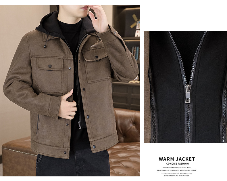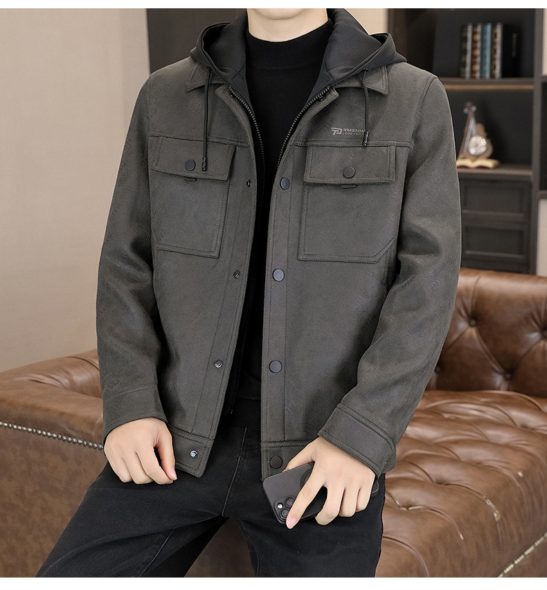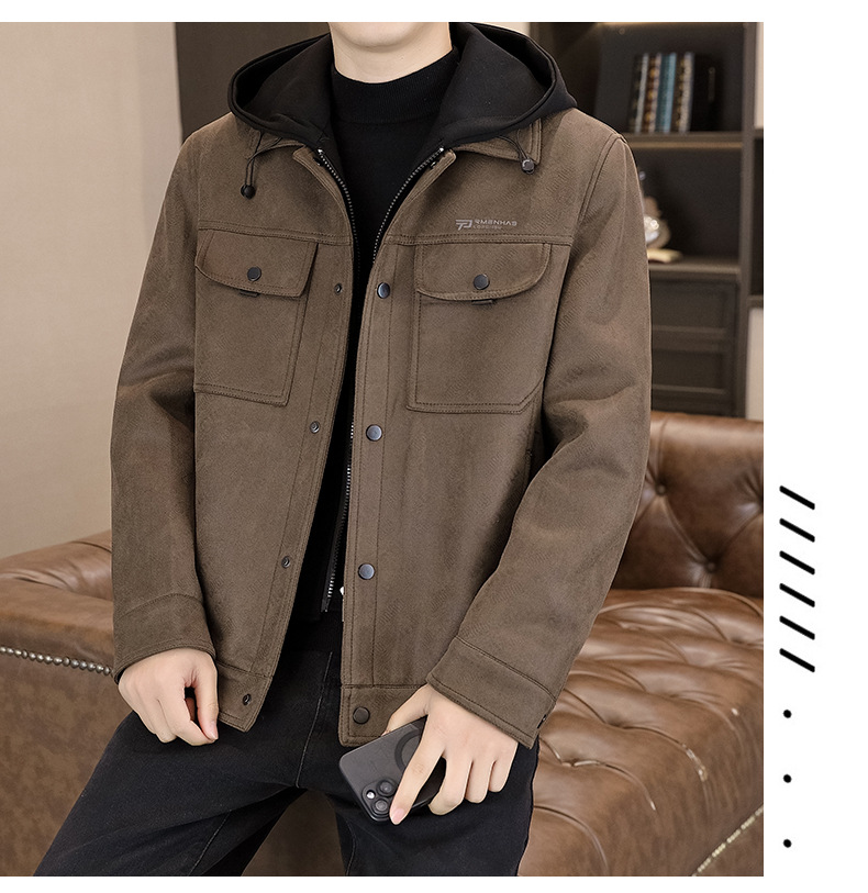 Áo khoác nam có mũ trùm có thể tháo rời, chất liệu da lộn mềm mại bên ngoài và lớp lót dày bằng len cừu ấm áp bên trong. Thiết kế kiểu dáng trẻ trung, năng động, phù hợp cho mùa thu đông. Sản phẩm mang đến cảm giác dễ chịu và giữ nhiệt tốt. Có thể mặc như áo khoác thông thường hoặc tháo mũ để tạo phong cách linh hoạt. Phù hợp cho các hoạt động hằng ngày và những lúc thư giãn. | Tên sản phẩm: Áo Da Nam Mũ Liền Dày Ấm Hàng Mùa Xuân Thu Đông Phong Cách Trẻ Trung - Thời Trang Nam | Mã sản phẩm: B1241 - Giá: 1.790.000đ | Mã nhà sản xuất: SUDIN-G05Hình ảnh sản phẩm