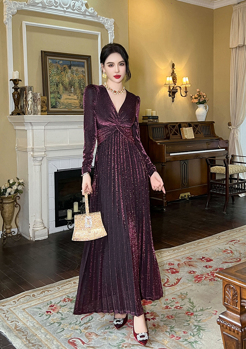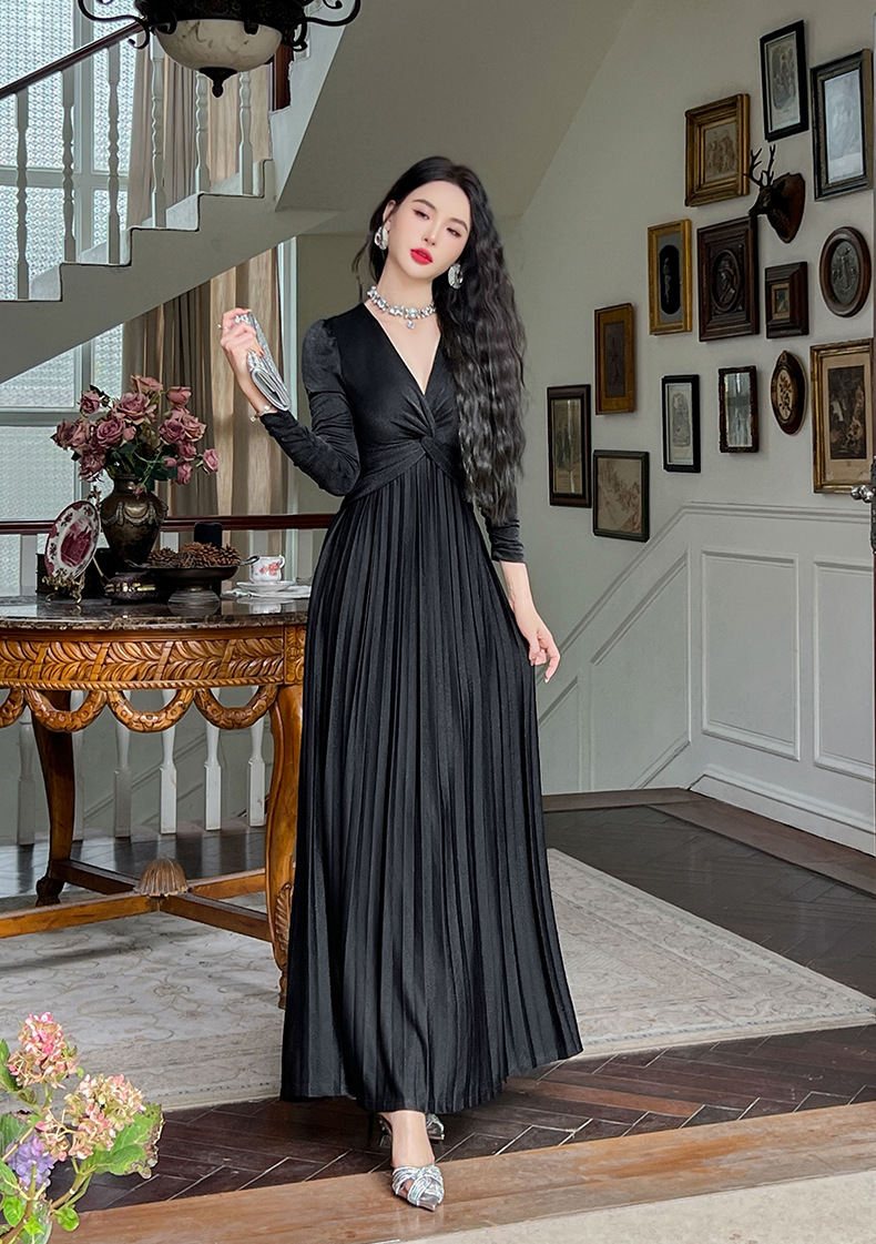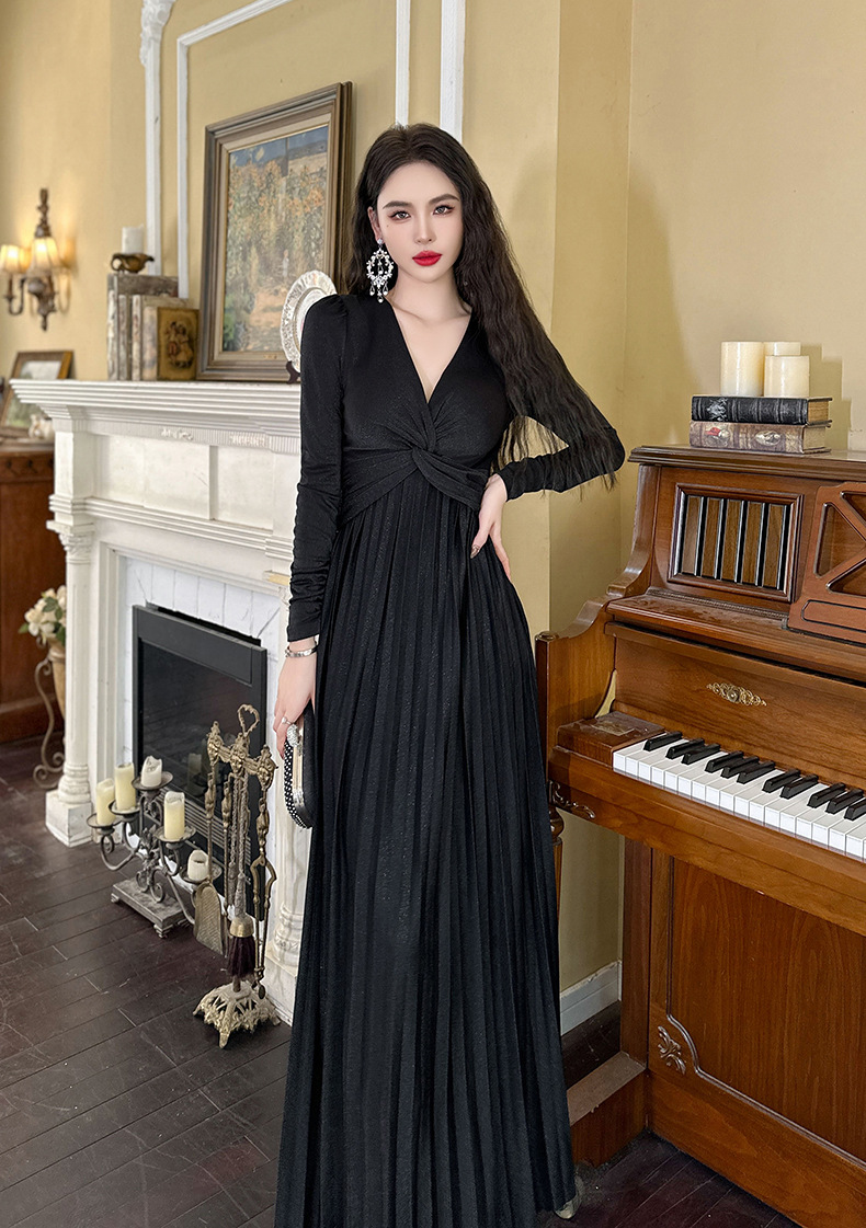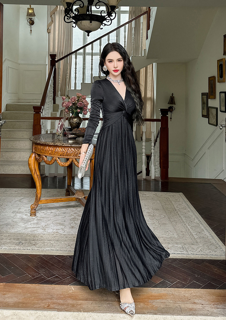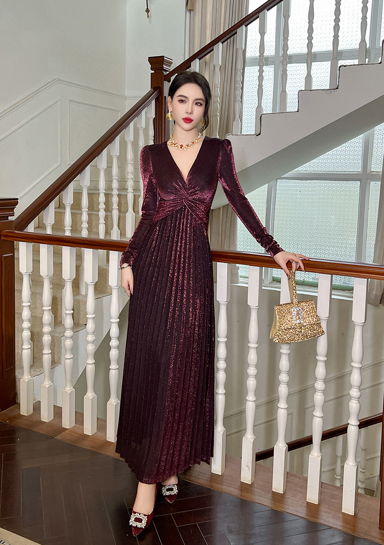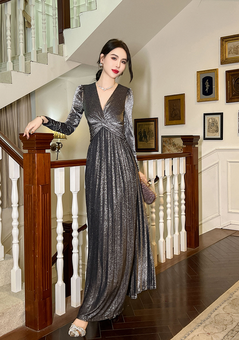 Chiếc đầm dành cho mùa thu với thiết kế vòng cổ chữ V tôn dáng, điểm nhấn là nút thắt trang nhã ngay trước ngực. Chất vải óng ánh tạo nên vẻ đẹp hiện đại, kết hợp cùng các đường xếp ly mềm mại từ eo xuống tà, giúp tôn lên đường nét cơ thể. Sản phẩm có phần eo cao giúp tạo dáng thanh thoát. Mặc kèm với giày cao gót hoặc giày đế bằng đều phù hợp, dễ dàng phối đồ cho nhiều dịp khác nhau. | Tên sản phẩm: Váy Đầm Liền Thân Nữ Cổ Chữ V Hàng Mùa Xuân Thu Đông - Thời Trang Nữ | Mã sản phẩm: B1270 - Giá: 1.260.000đ | Mã nhà sản xuất: CHDG-G04Hình ảnh sản phẩm