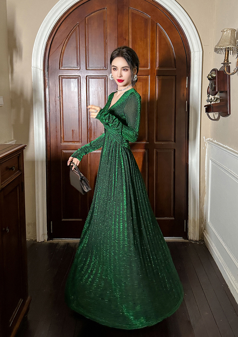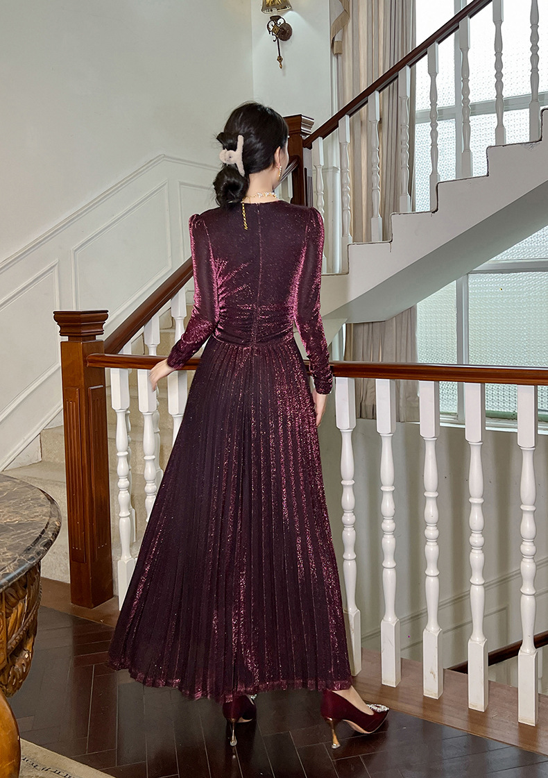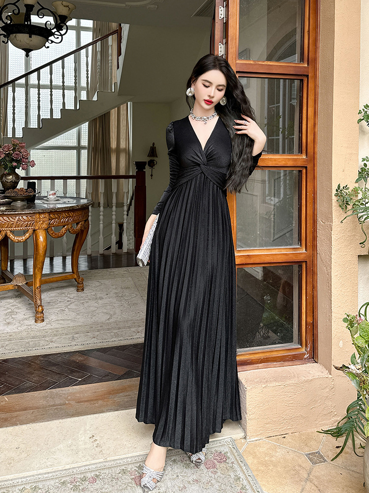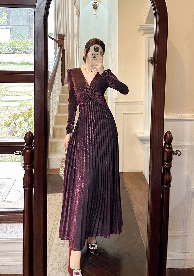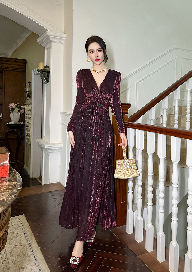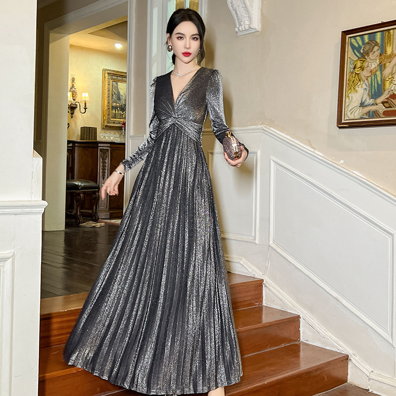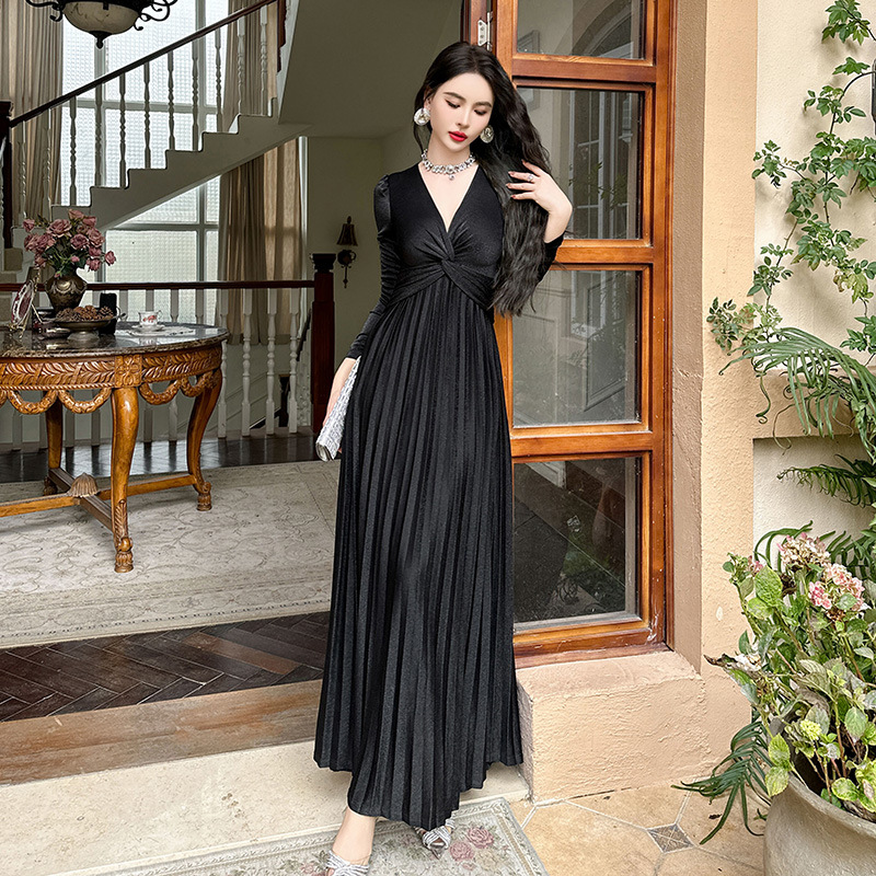 Chiếc đầm dành cho mùa thu với thiết kế vòng cổ chữ V tôn dáng, điểm nhấn là nút thắt trang nhã ngay trước ngực. Chất vải óng ánh tạo nên vẻ đẹp hiện đại, kết hợp cùng các đường xếp ly mềm mại từ eo xuống tà, giúp tôn lên đường nét cơ thể. Sản phẩm có phần eo cao giúp tạo dáng thanh thoát. Mặc kèm với giày cao gót hoặc giày đế bằng đều phù hợp, dễ dàng phối đồ cho nhiều dịp khác nhau. | Tên sản phẩm: Váy Đầm Liền Thân Nữ Cổ Chữ V Hàng Mùa Xuân Thu Đông - Thời Trang Nữ | Mã sản phẩm: B1270 - Giá: 1.260.000đ | Mã nhà sản xuất: CHDG-G04Hình ảnh sản phẩm