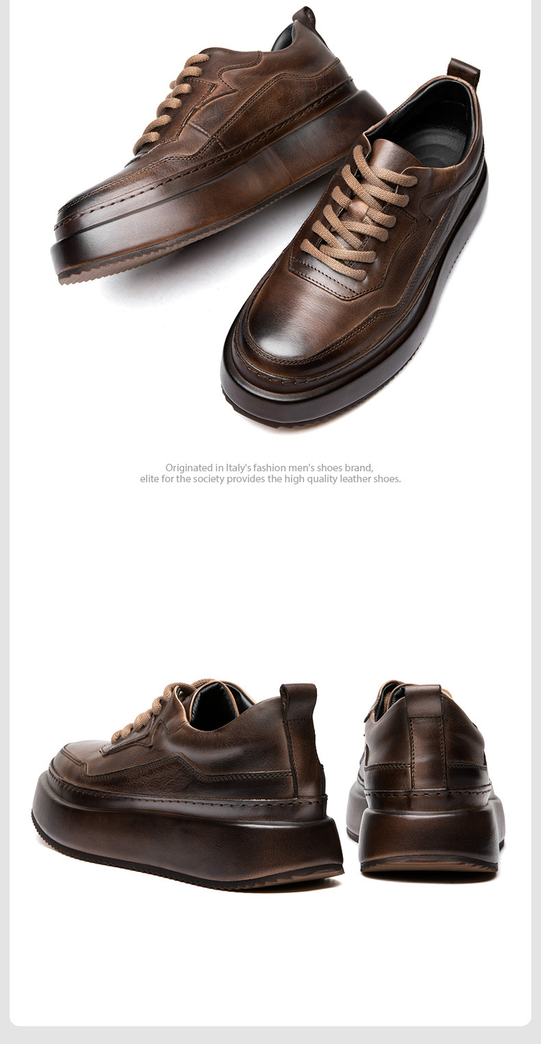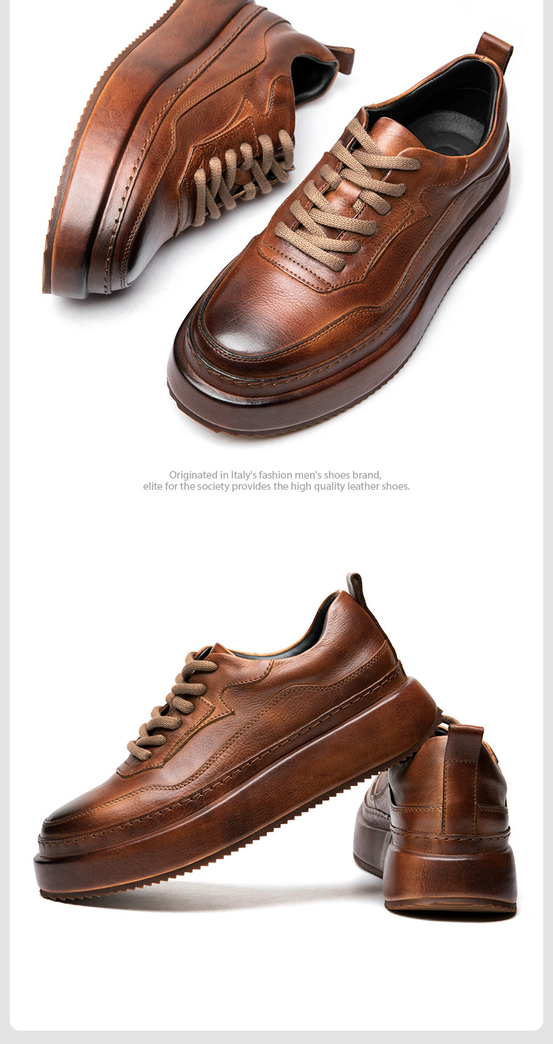 Giày tây nam thiết kế phần đế dày tạo dáng chuẩn, giúp tôn chiều cao một cách tự nhiên. Sản phẩm được làm từ chất liệu da thật bền đẹp, bên trong có thiết kế thoáng khí, mang lại cảm giác dễ chịu khi sử dụng cả ngày. Kiểu dáng linh hoạt, phù hợp cho cả công sở và những dịp thường ngày. Bạn có thể kết hợp cùng quần âu hoặc quần jeans để có vẻ ngoài chỉn chu. | Tên sản phẩm: Giày Da Nam Chất Liệu Da Bò Tăng Chiều Cao Thoáng Khí Đế Cao Hàng Mùa Xuân Thu Đông - Giày Dép Nam | Mã sản phẩm: B1294 - Giá: 2.860.000đ | Mã nhà sản xuất: SHDT-G06Hình ảnh sản phẩm