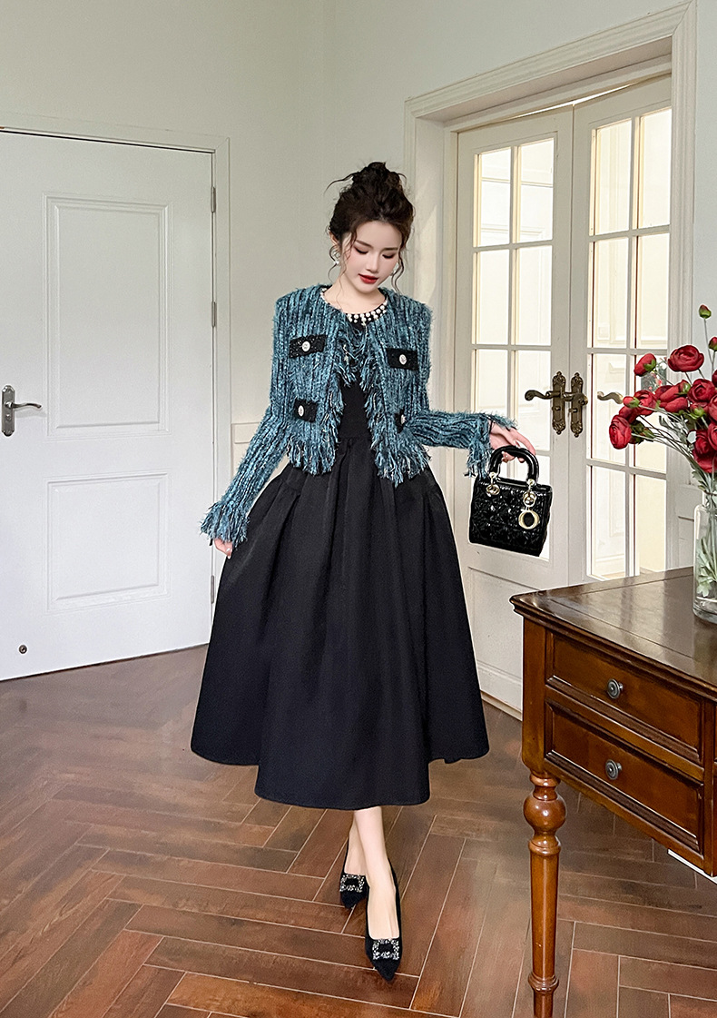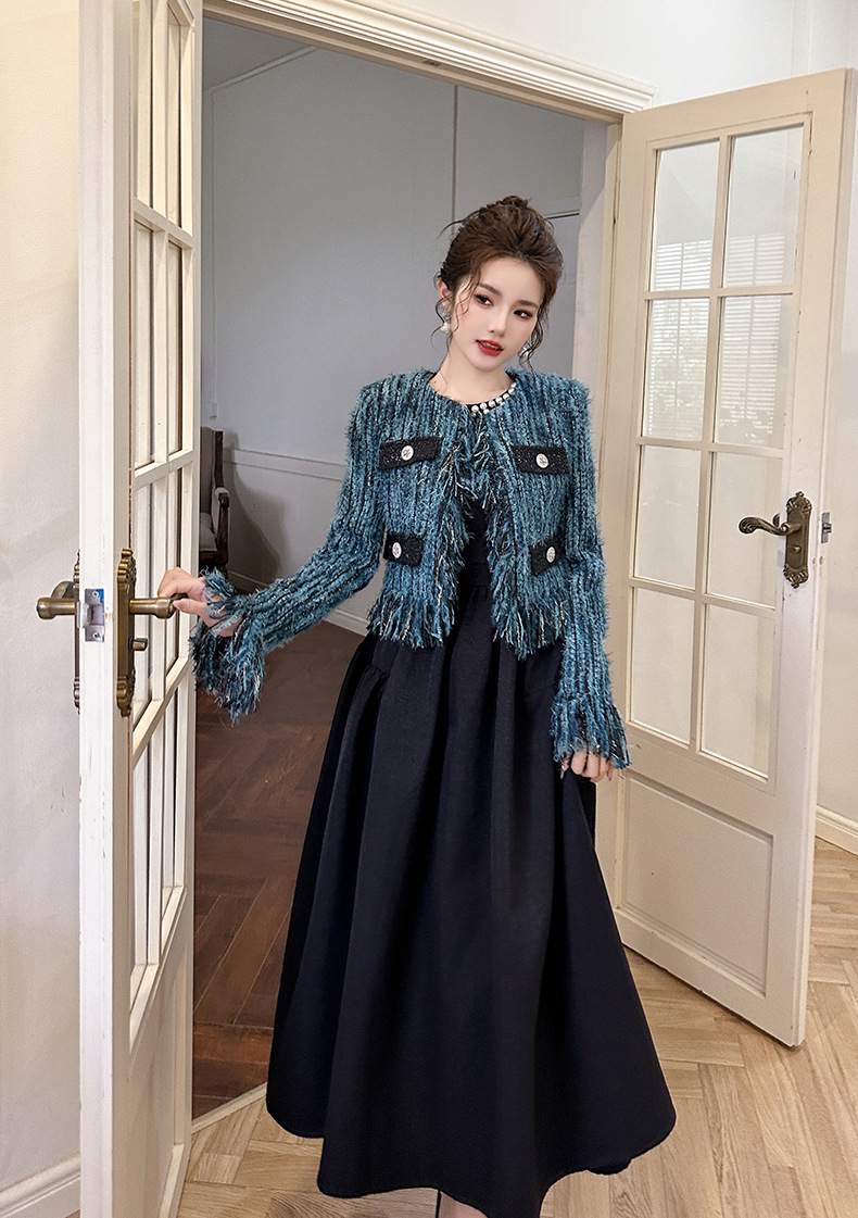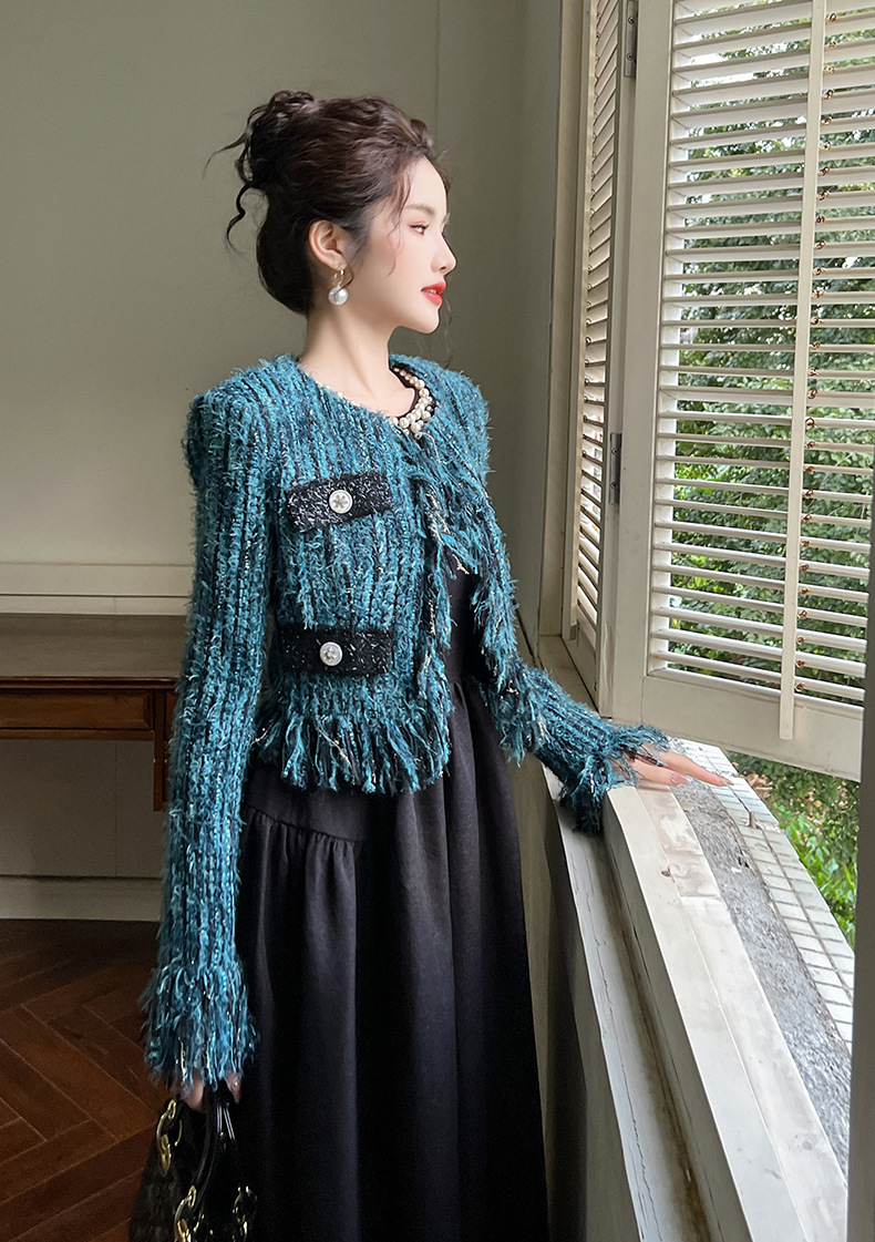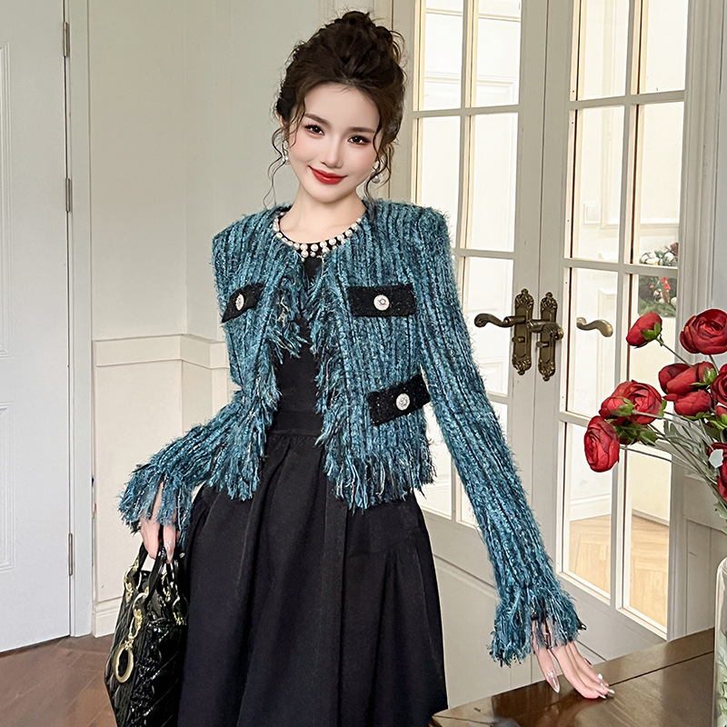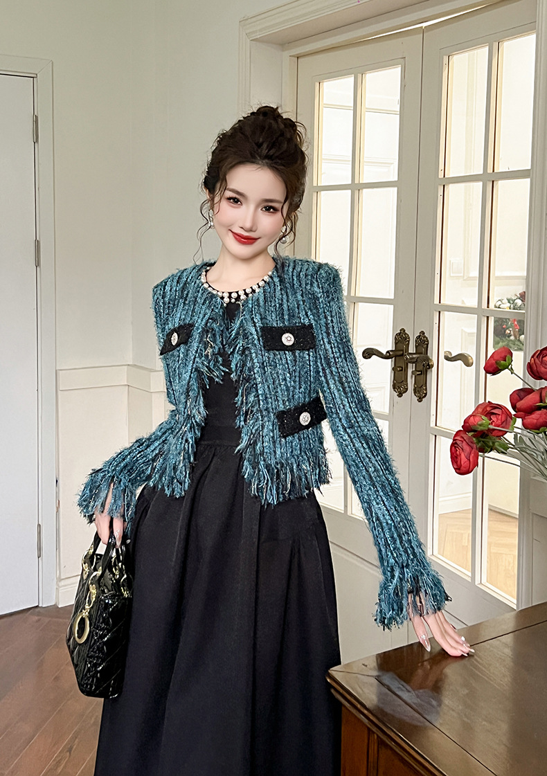 Áo khoác nữ ngắn kiểu dáng ôm dành cho mùa thu đông. Thiết kế tôn dáng với phần l áo điểm xuyến những chi tiết tua rua tinh tế, giúp tạo điểm nhấn nổi bật. Kiểu áo này dễ dàng phối cùng nhiều trang phục như quần dài, chân váy. Bạn có thể mặc bên trong áo thun hoặc áo len để giữ ấm và tạo sự cân đối cho tổng thể. | Tên sản phẩm: Áo Khoác Nữ Dáng Ôm Hàng Mùa Xuân Thu Đông - Thời Trang Nữ | Mã sản phẩm: B1365 - Giá: 1.360.000đ | Mã nhà sản xuất: CHDG-G04Hình ảnh sản phẩm