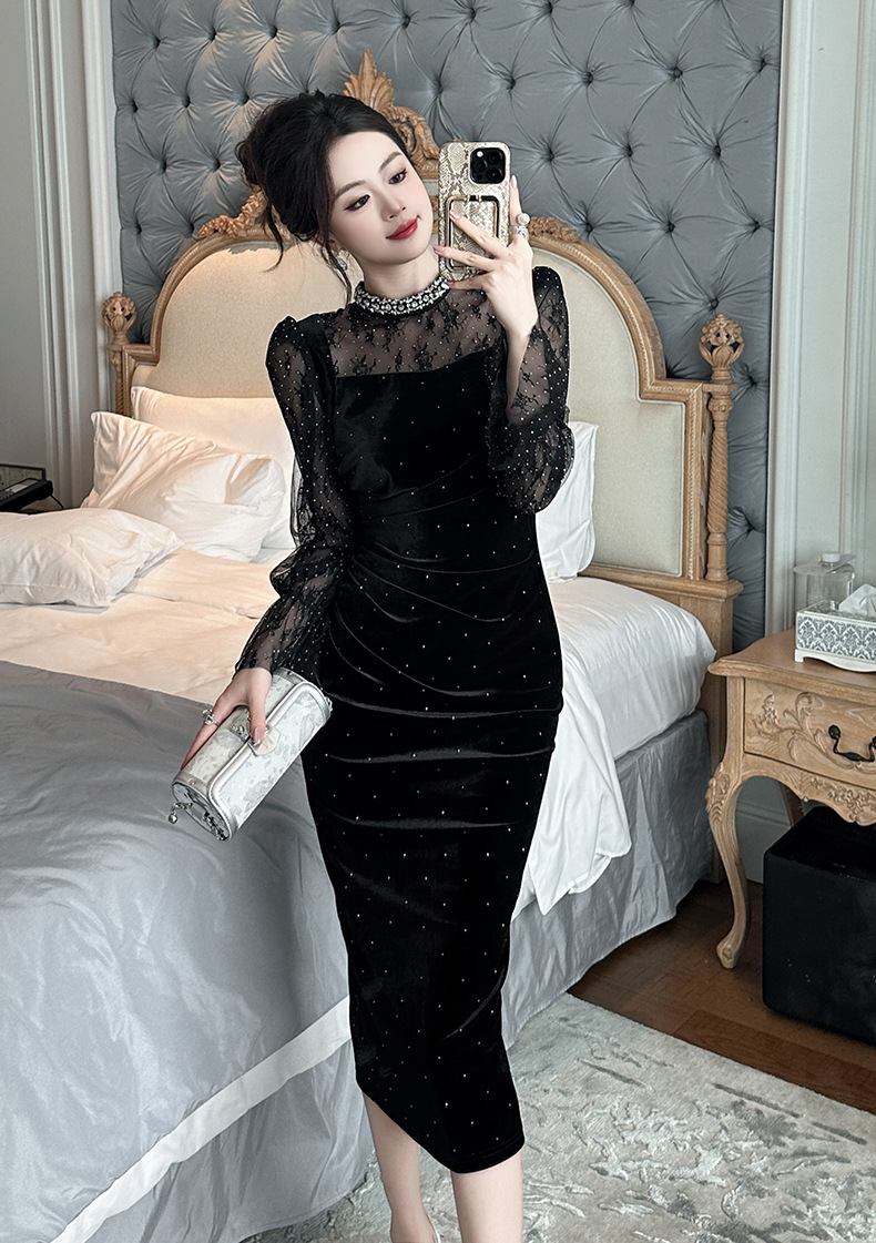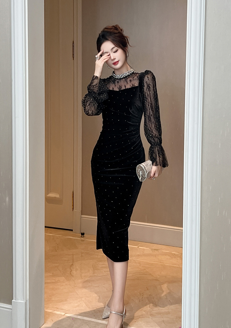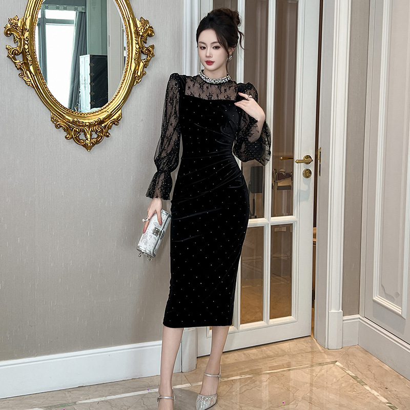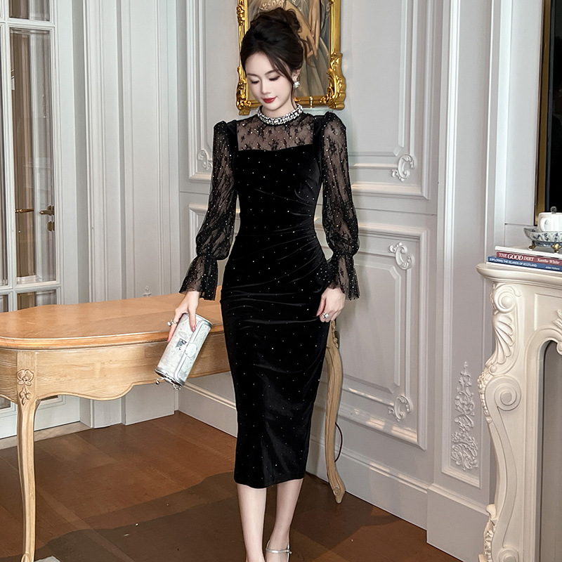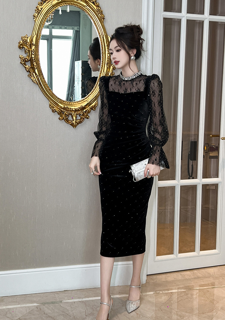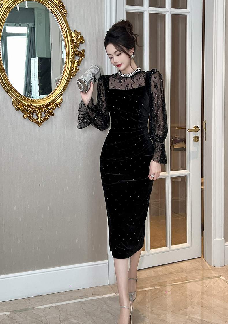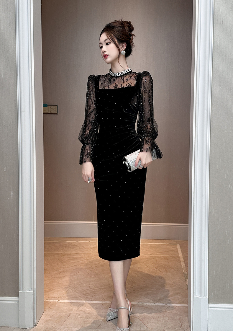 Đầm dự tiệc cuối năm với thiết kế kết hợp tinh tế giữa chất liệu nhung mềm mại và những chi tiết ren được may tỉ mỉ. Form đầm ôm body tôn dáng, phù hợp cho các buổi lễ hội vào mùa thu đông. Sản phẩm có thể mặc kèm áo khoác mỏng hoặc phụ kiện để tạo điểm nhấn. Chỉ cần giặt nhẹ và phơi khô tự nhiên để giữ form vải và các chi tiết trang trí luôn đẹp. | Tên sản phẩm: Váy Đầm Liền Thân Nữ Chất Liệu Ren Hàng Mùa Xuân Thu Đông - Thời Trang Nữ | Mã sản phẩm: B1372 - Giá: 1.350.000đ | Mã nhà sản xuất: CHDG-G04Hình ảnh sản phẩm
