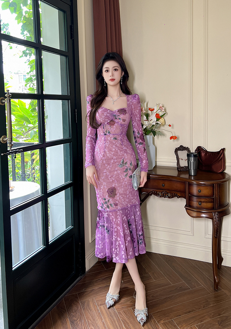 Chiếc đầm dành cho nữ với họa tiết hoa nhỏ xinh, tôn dáng người mặc một cách tinh tế. Thiết kế cổ vuông kiểu cách, kết hợp cùng phần chân váy xòe dáng đuôi cá duyên dáng, mang đến vẻ đẹp dịu dàng và nữ tính. Chất vải mềm mại giúp bạn thoải mái vận động cả ngày. Sản phẩm phù hợp để đi làm, dự tiệc hoặc tạo điểm nhấn trong những dịp gặp mặt. Dễ dàng phối cùng giày cao gót và một chiếc túa xách nhỏ để hoàn thiện set đồ. | Tên sản phẩm: Váy Đầm Liền Thân Dáng Dài Nữ Dáng Ôm Họa Tiết Hoa Hàng Mùa Xuân Thu Đông - Thời Trang Nữ | Mã sản phẩm: B1374 - Giá: 1.130.000đ | Mã nhà sản xuất: CHDG-G04Hình ảnh sản phẩm