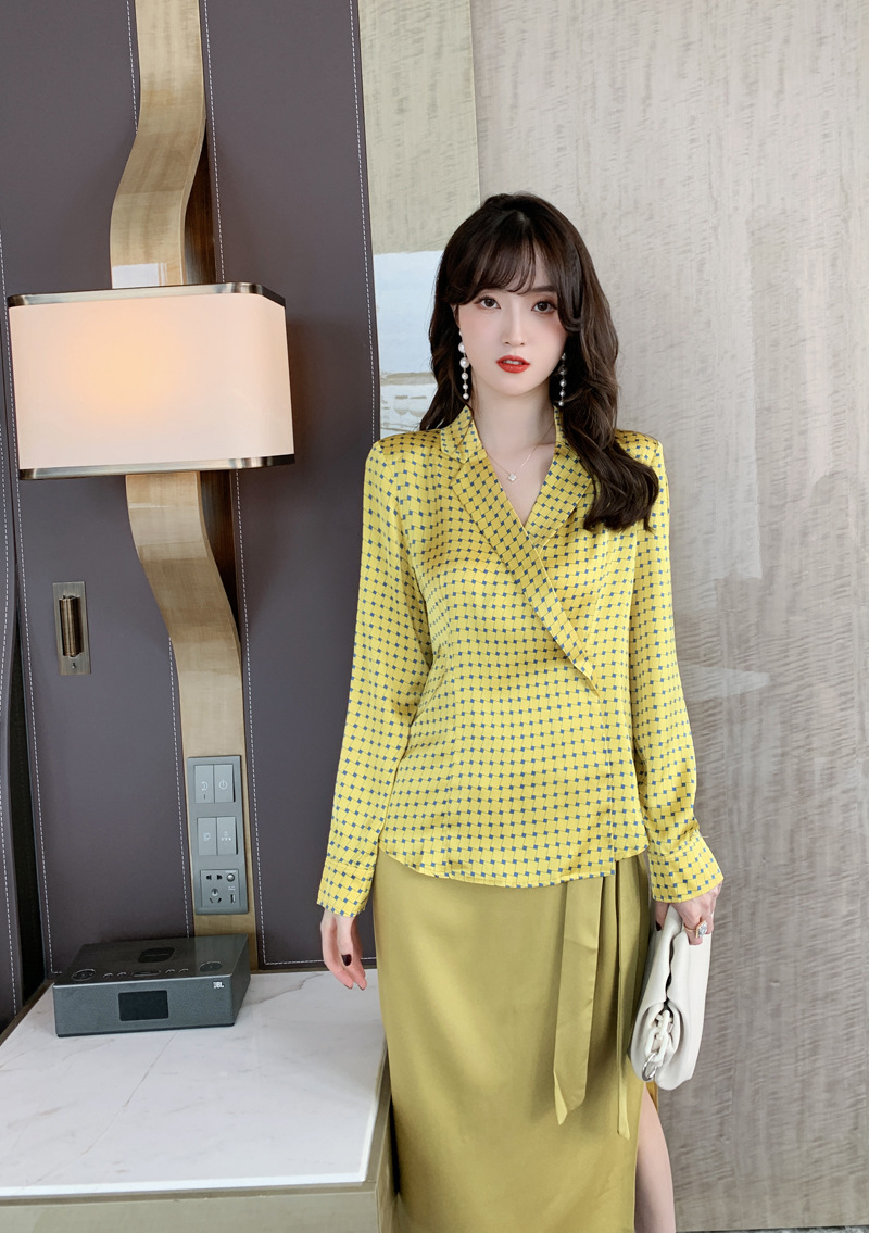 Áo sơ mi nữ dáng dài tay, điểm nhấn từ họa tiết kẻ ô vuông hiện đại và màu vàng tươi sáng. Cổ bẻ tạo nên nét lịch sự, phù hợp cho những ngày thu se lạnh. Chất vải mềm mại giúp người mặc thoải mái suốt ngày dài. Dễ dàng phối cùng quần jeans hoặc chân váy để tạo phong cách trẻ trung. Có thể mặc như áo khoác nhẹ hoặc áo chính trong bộ trang phục. | Tên sản phẩm: Áo Sơ Mi Nữ Dài Tay Kẻ Caro Kẻ Caro Kín Cổ Hàng Mùa Xuân Thu Đông - Thời Trang Nữ | Mã sản phẩm: B1377 - Giá: 640.000đ | Mã nhà sản xuất: CHDG-G02Hình ảnh sản phẩm