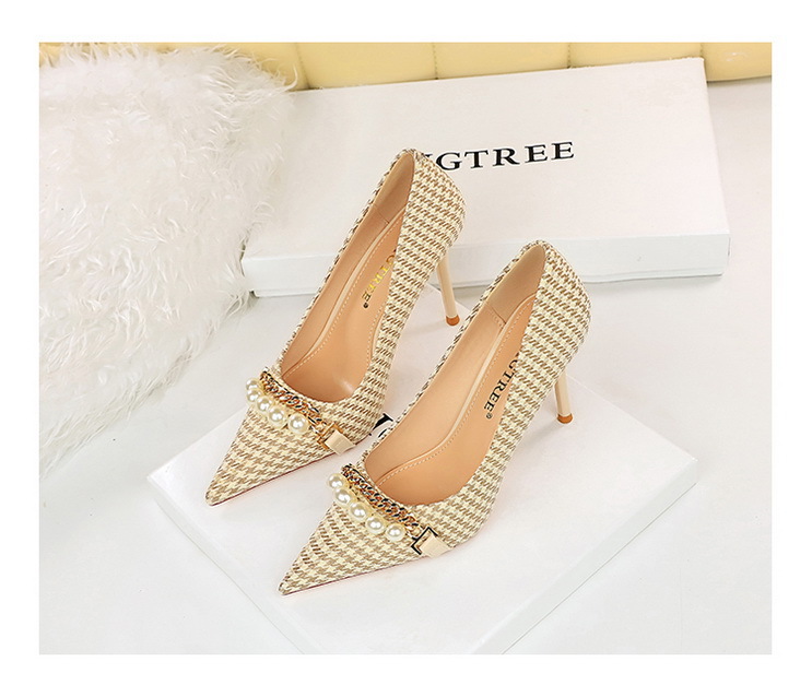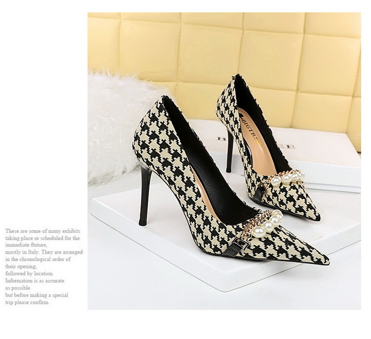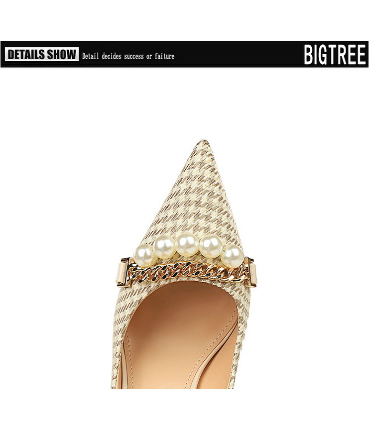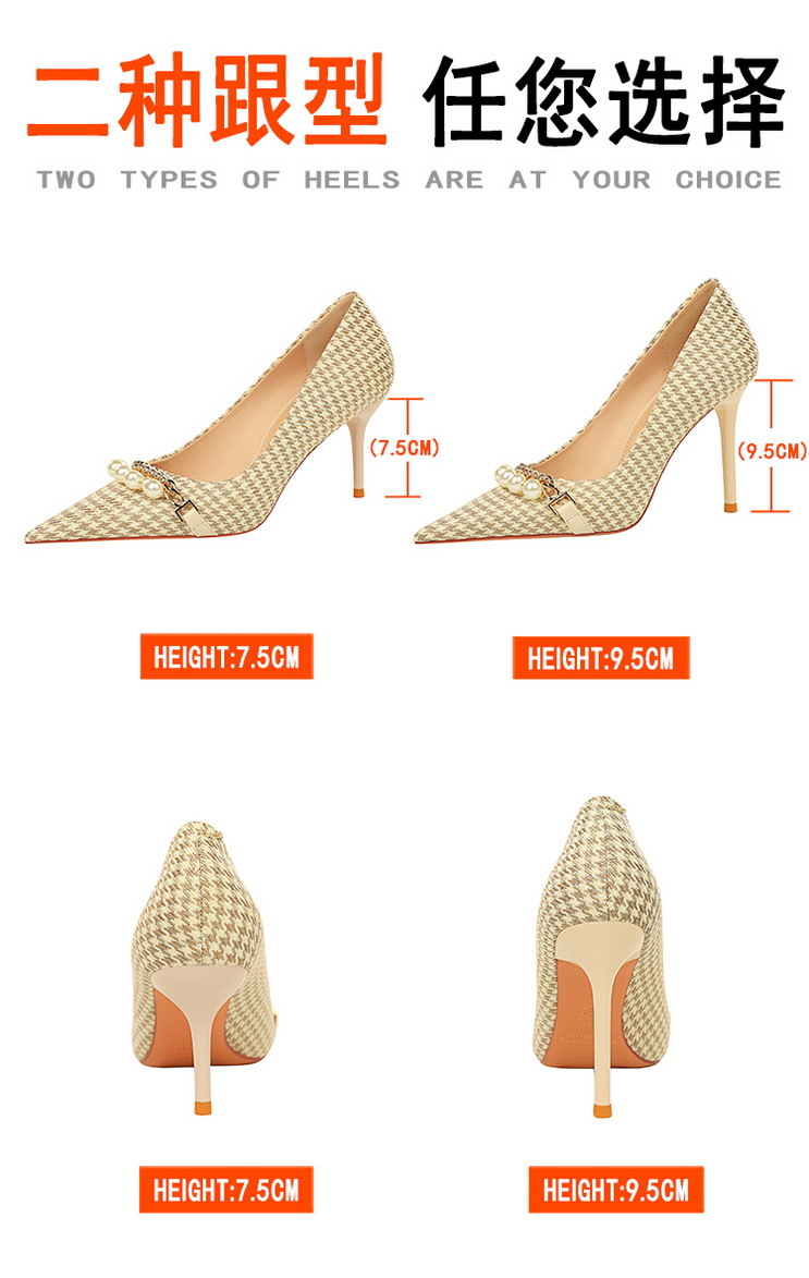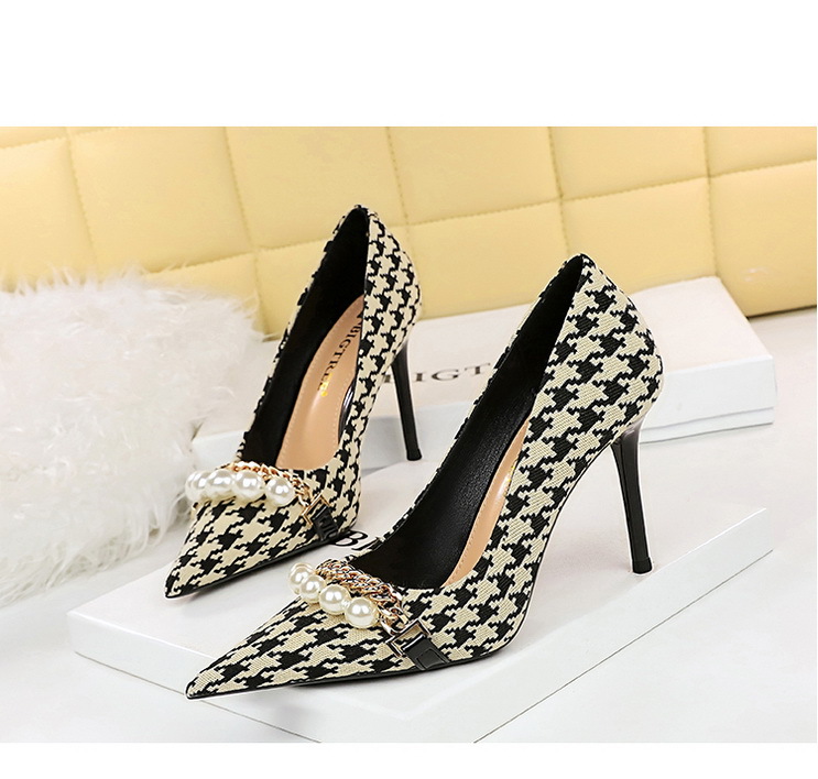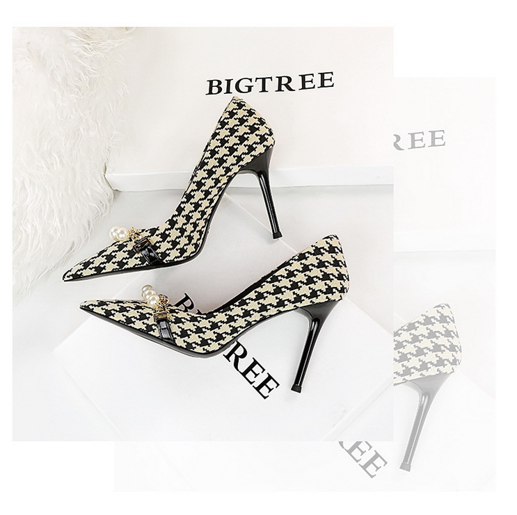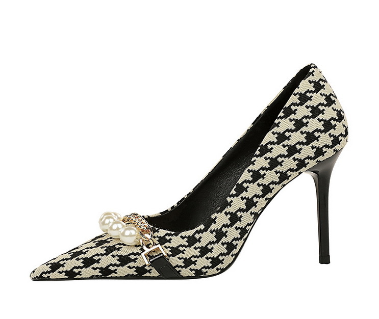 Đôi giày này mang kiểu dáng thời trang châu Âu, nổi bật với họa tiết caro ngàn chim cách điệu. Phần mũi nhọn thanh lịch cùng cổ giày khoét sâu tôn lên vẻ duyên dáng. Điểm nhấn đặc biệt là chuỗi hạt ngọc tr trang trí mảnh m phía trên, tạo nét mềm mại. Thiết kế với gót nhọn vừa phải, giúp nâng đỡ bàn chân thoải mái khi di chuyển. Bạn có thể phối cùng nhiều loại trang phục để tạo điểm nhấn ấn tượng. | Tên sản phẩm: Giày Cao Gót Nữ Mũi Nhọn Gót Nhọn Kẻ Caro Phong Cách Âu Mỹ - Giày Dép Nữ | Mã sản phẩm: B1385 - Giá: 640.000đ | Mã nhà sản xuất: PITYIN-G02Hình ảnh sản phẩm