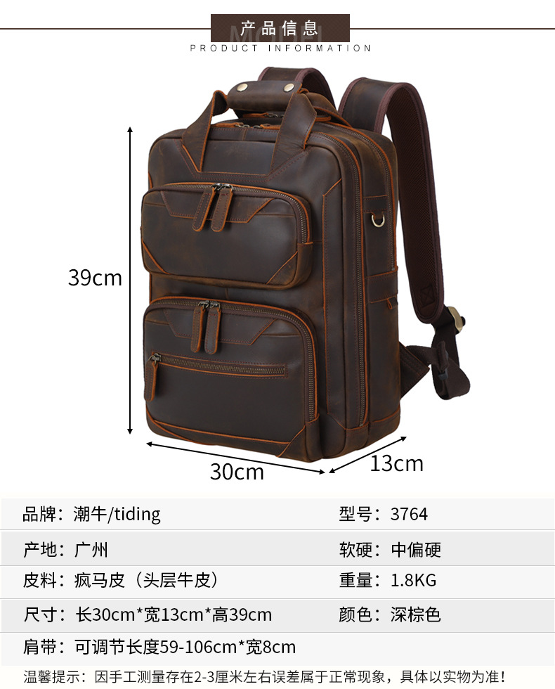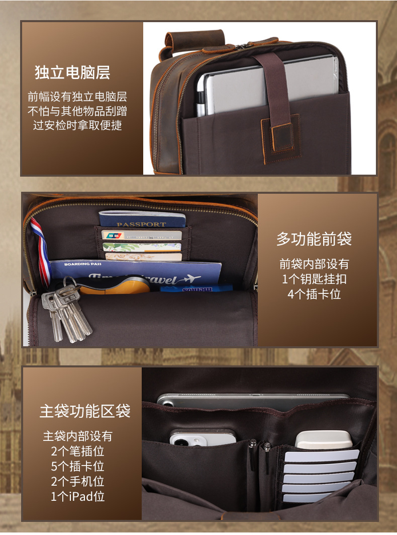 Ba lô máy tính này có kích thước vừa vặn cho laptop 15,6 inch, được làm từ chất da bò mềm mại có vân tự nhiên tạo vẻ cổ điển. Kiểu dáng phù hợp cho các chuyến đi chơi ngoài trời, với nhiều ngăn rộng rãi giúp sắp xếp đồ đạc gọn gàng. Bạn có thể đeo hai v để phân tán sức nặng, dễ dàng mang theo máy tính và các vật dụng cá nhân mỗi khi di chuyển. | Tên sản phẩm: Túi Xách Nam Chất Liệu Da Bò Túi Đựng Máy Tính Phục Cổ Cổ Điển - Túi Xách Ví Nam | Mã sản phẩm: B1388 - Giá: 4.210.000đ | Mã nhà sản xuất: GUDNG-G06Hình ảnh sản phẩm
