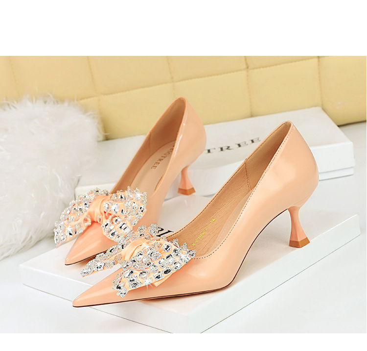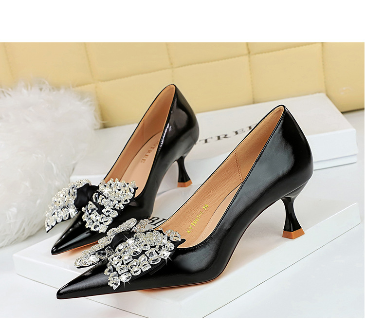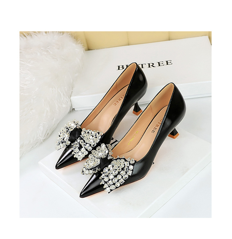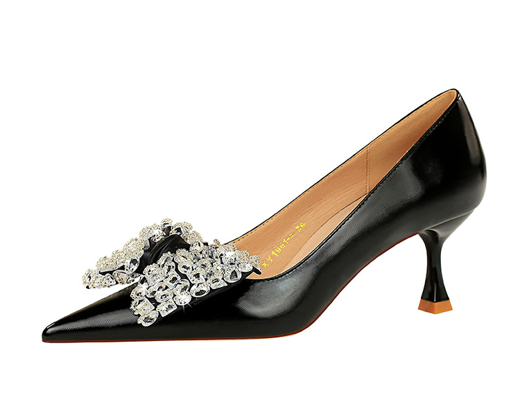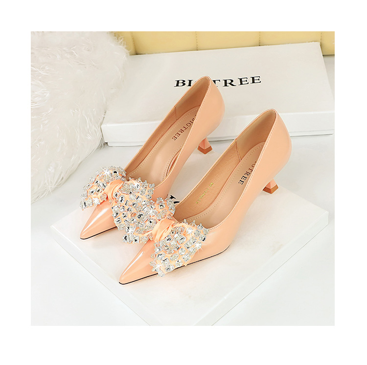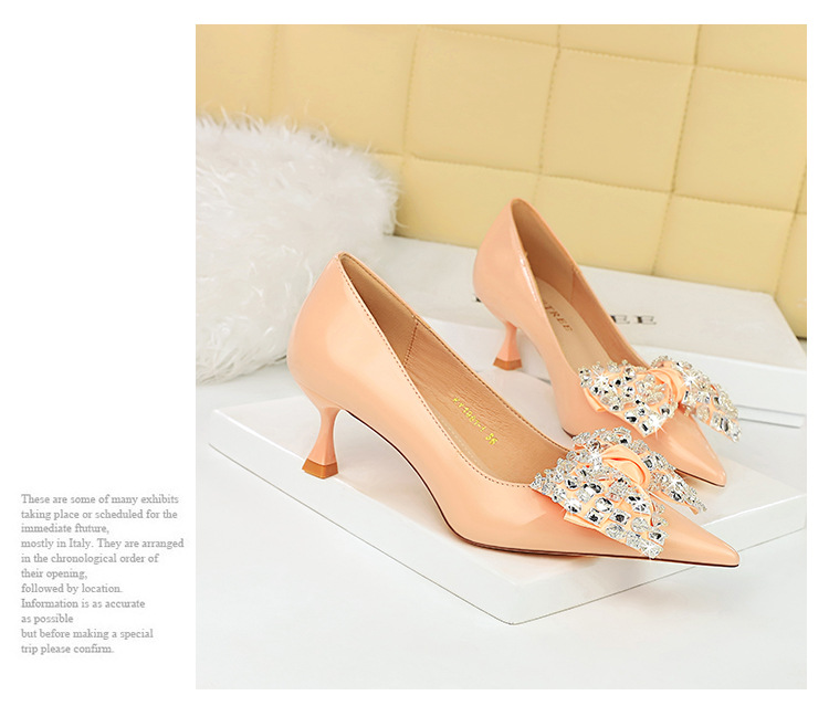 Đôi giày này có kiểu dáng thời trang với mũi nhọn thanh thoát và phần cổ thấp. Phần gót được thiết kế độc đáo theo dạng hình ly. Điểm nhấn nổi bật là chi tiết nơ kết hợp với đá lấp lánh tạo nên vẻ đẹp nữ tính và duyên dáng. Sản phẩm rất phù hợp để mang trong các buổi tiệc hoặc sự kiện. Bạn chỉ cần xỏ chân vào và cột dây nơ lại là đã có ngay một phong cách hoàn hảo. | Tên sản phẩm: Giày Cao Gót Nữ Thắt Nơ Bướm Gắn Đá Mũi Nhọn Phong Cách Hàn Quốc - Giày Dép Nữ | Mã sản phẩm: B1391 - Giá: 710.000đ | Mã nhà sản xuất: PITYIN-G02Hình ảnh sản phẩm