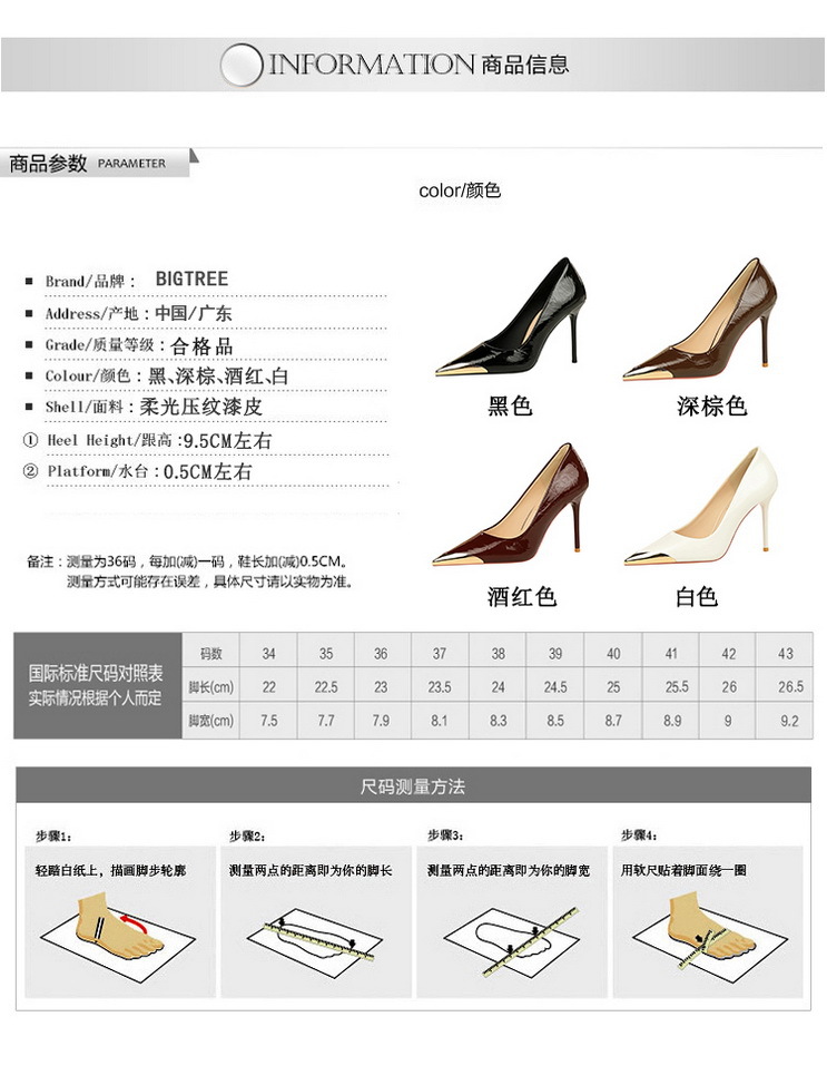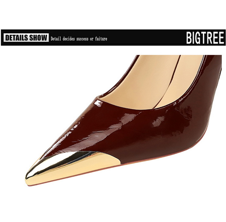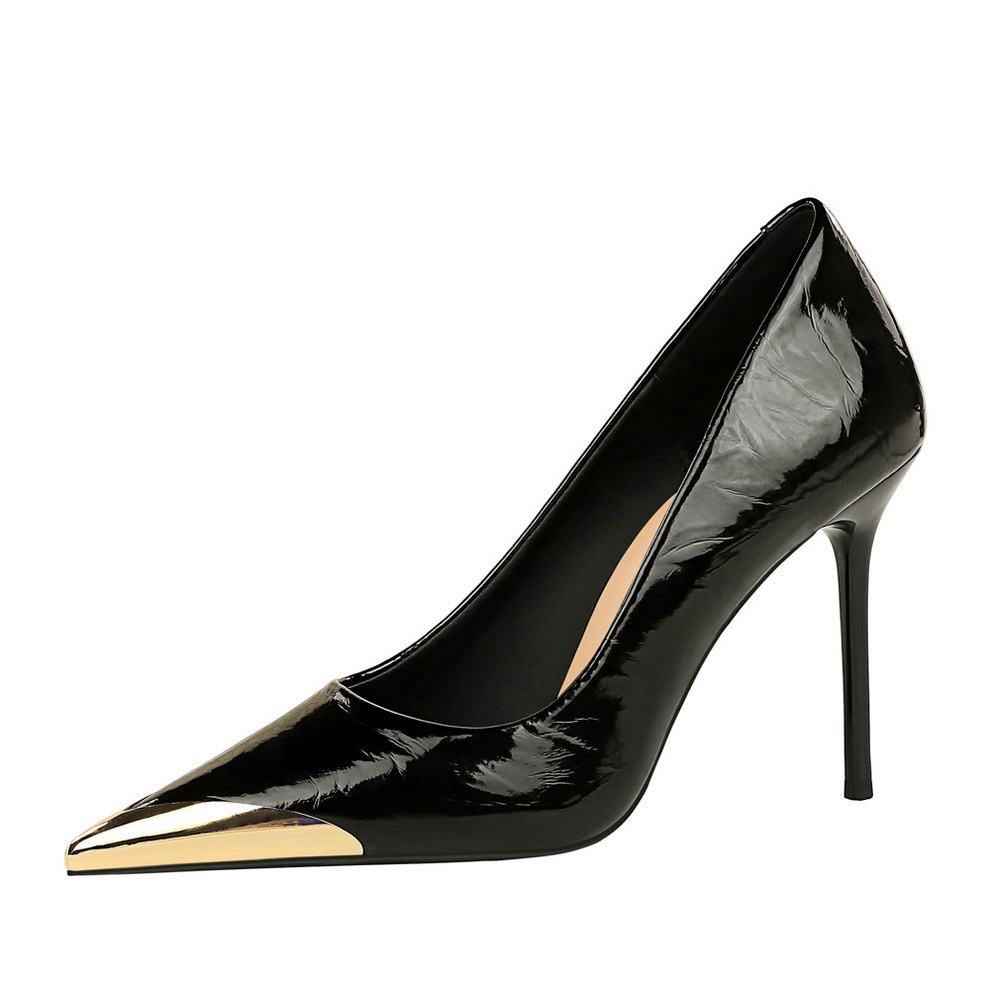 Đôi giày này có kiểu dáng mũi nhọn và cổ thấp, phối cùng chi tiết trang trí kim loại ở mũi tạo điểm nhấn nổi bật. Phong cách thiết kế theo xu hướng hiện đại, phù hợp cho các buổi tiệc hoặc sự kiện. Chất liệu bóng bẩy giúp đôi giàu thêm phần thu hút. Phần gót rất cao và thanhai mảnh, giúp tôn dáng người sử dụng. Khi mang, bạn nên chọn size phù hợp với bàn chân để cảm thấy thoải mái nhất. | Tên sản phẩm: Giày Cao Gót Nữ Mũi Nhọn Gót Nhọn Phong Cách Hàn Quốc - Giày Dép Nữ | Mã sản phẩm: B1395 - Giá: 640.000đ | Mã nhà sản xuất: PITYIN-G02Hình ảnh sản phẩm