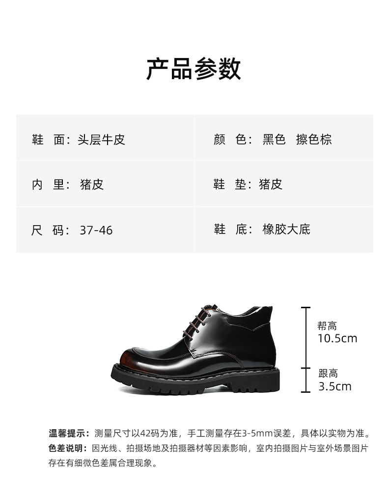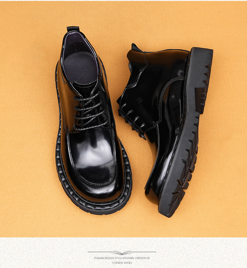 Đôi bốt nam này có phần đế dày giúp tăng chiều cao và tạo dáng đứng khỏe khoắn. Bề mặt da bóng loáng, kiểu dáng cổ thấp mang phong cách Anh điệu đà. Sản phẩm được làm từ chất liệu da thật, bền chắc và ôm chân. Dễ dàng phối hợp với quần jean hay quần âu để tạo nên vẻ ngoài lịch sự hoặc phong cách hàng ngày. Chỉ cần lau sạch nhẹ nhàng bằng vải mềm để giữ vẻ bóng đẹp. | Tên sản phẩm: Boot Cổ Thấp Nam Chất Liệu Da Bò Đế Cao Hàng Mùa Xuân Thu Đông - Giày Dép Nam | Mã sản phẩm: B1422 - Giá: 2.730.000đ | Mã nhà sản xuất: SHDAP-G06Hình ảnh sản phẩm