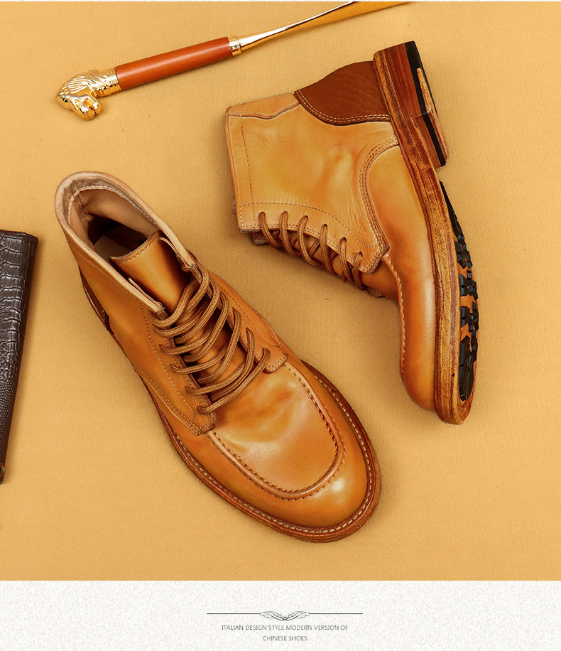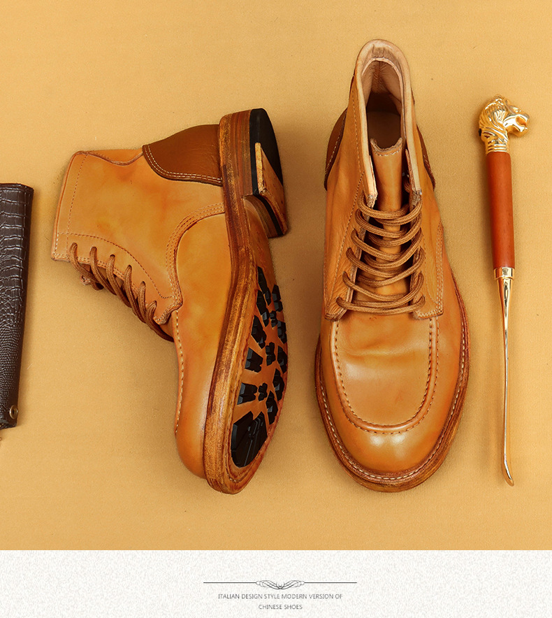 Giày bốt cổ cao này mang phong cách cổ điển với kiểu dáng được rửa màu tạo vẻ đẹp hoài niệm. Sản phẩm được làm từ chất liệu da thật bền chắc, kết hợp với phần đế được gia công tỉ mỉ, đảm bảo độ bền và êm ái khi mang. Kiểu dáng phù hợp cho các hoạt động thường ngày, dễ dàng kết hợp với nhiều trang phục. Chỉ cần vệ sinh bề mặt nhẹ nhàng bằng khăn mềm và bảo quản nơi khô ráo sau khi sử dụng. | Tên sản phẩm: Giày Boot Martin Nam Chất Liệu Da Bò Phục Cổ Cổ Điển - Giày Dép Nam | Mã sản phẩm: B1424 - Giá: 4.530.000đ | Mã nhà sản xuất: SHDAP-G06Hình ảnh sản phẩm