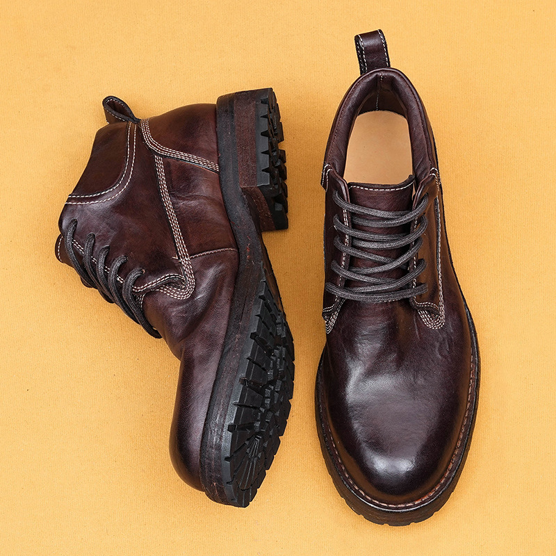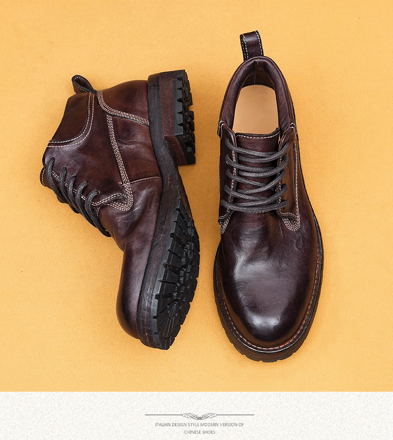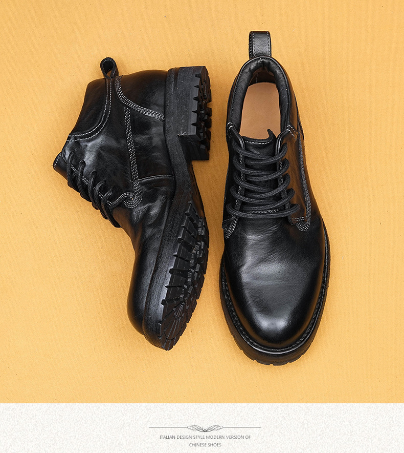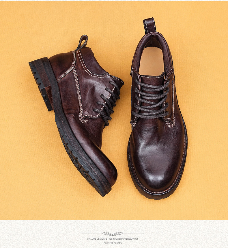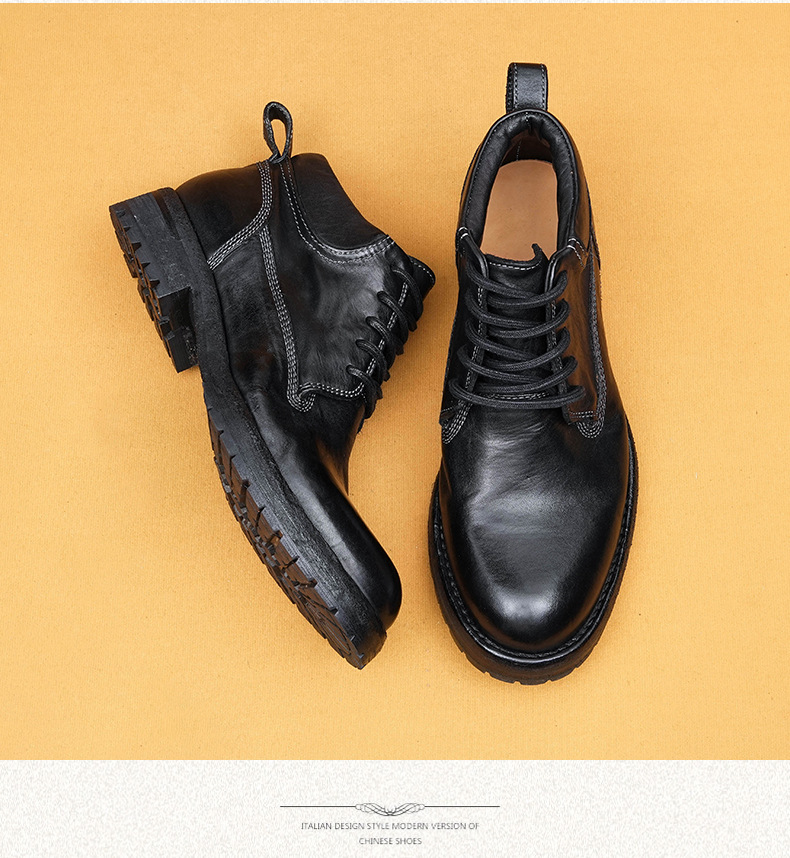 Giày bốt nam được làm từ chất liệu da ngựa thật, mang đến độ bền cao theo thời gian. Kiểu dáng bốt công sở cổ điển, kết hợp đường may thủ công tỉ mỉ và đế được ráp theo cách đặc biệt giúp chống thấm nước tốt. Sản phẩm có vẻ ngoài cổ điển, phù hợp để kết hợp cùng quần jeans hoặc quần vải. Bạn chỉ cần xỏ giày và buộc dây là đã có thể sử dụng ngay. | Tên sản phẩm: Boot Martin Nam Phục Cổ Cổ Điển - Giày Dép Nam | Mã sản phẩm: B1428 - Giá: 4.900.000đ | Mã nhà sản xuất: SHDAP-G06Hình ảnh sản phẩm