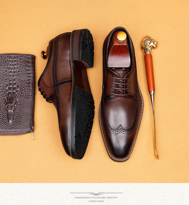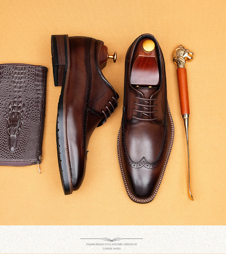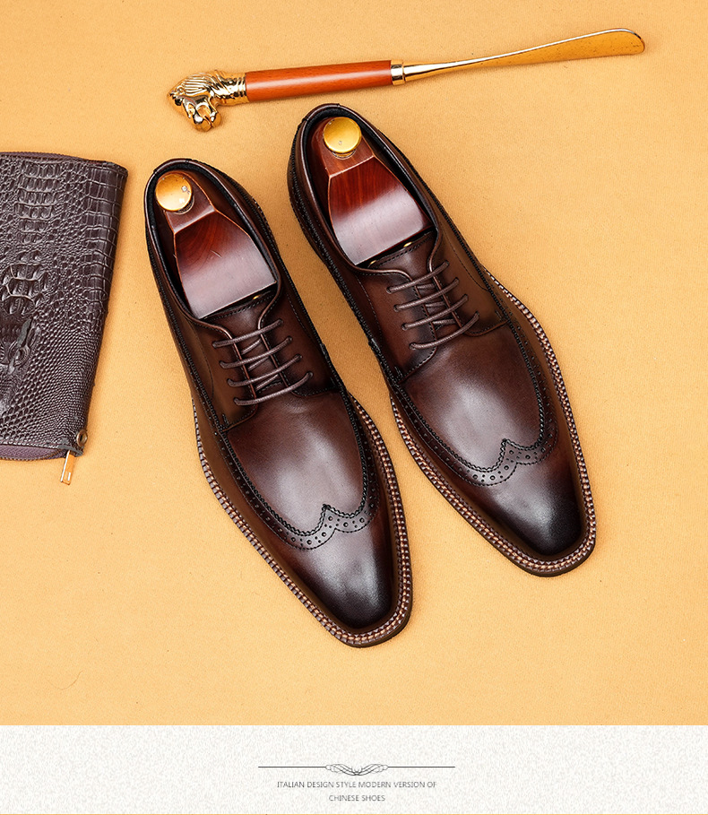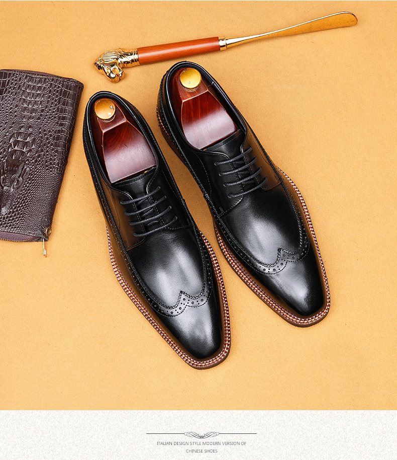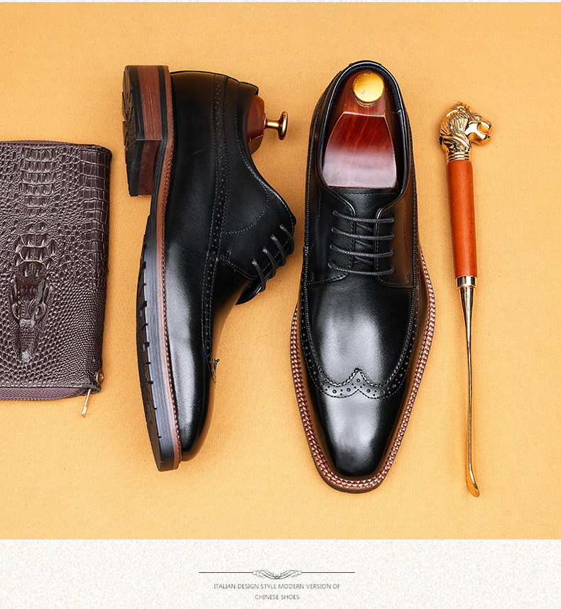 Giày da thật dành cho nam, kiểu dáng mang phong cách cổ điển châu Âu. Mũi giày nhọn, thân giày điểm xuyết những đường chạm khắc tinh tế. Sản phẩm có màu sắc được phối một cách nghệ thuật, tạo vẻ ngoài lịch lãm. Rất phù hợp để mang trong các dịp làm việc hay sự kiện. Bạn chỉ cần vệ sinh nhẹ bằng khăn mềm và sử dụng cùng bộ trang phục phù hợp. | Tên sản phẩm: Giày Da Nam Chất Liệu Da Bò Mũi Nhọn Họa Tiết Hoa Phục Cổ Cổ Điển - Giày Dép Nam | Mã sản phẩm: B1436 - Giá: 2.360.000đ | Mã nhà sản xuất: SHDAP-G05Hình ảnh sản phẩm