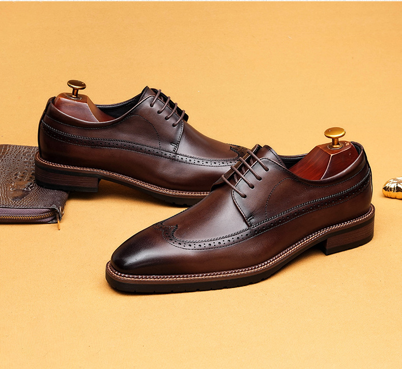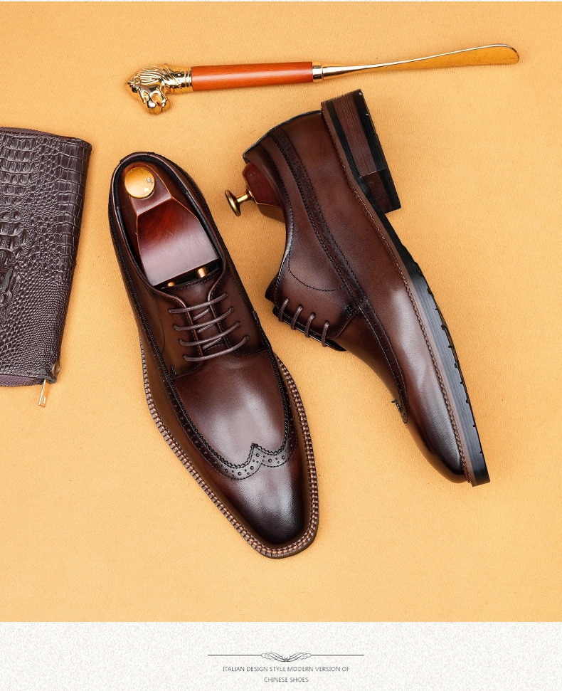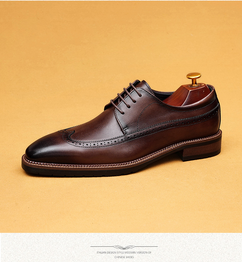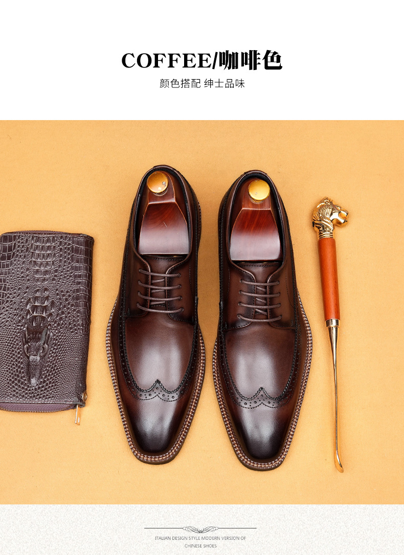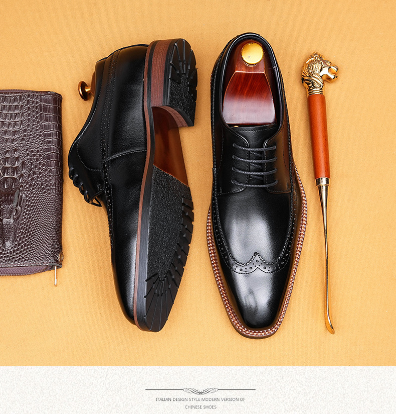 Giày da thật dành cho nam, kiểu dáng mang phong cách cổ điển châu Âu. Mũi giày nhọn, thân giày điểm xuyết những đường chạm khắc tinh tế. Sản phẩm có màu sắc được phối một cách nghệ thuật, tạo vẻ ngoài lịch lãm. Rất phù hợp để mang trong các dịp làm việc hay sự kiện. Bạn chỉ cần vệ sinh nhẹ bằng khăn mềm và sử dụng cùng bộ trang phục phù hợp. | Tên sản phẩm: Giày Da Nam Chất Liệu Da Bò Mũi Nhọn Họa Tiết Hoa Phục Cổ Cổ Điển - Giày Dép Nam | Mã sản phẩm: B1436 - Giá: 2.360.000đ | Mã nhà sản xuất: SHDAP-G05Hình ảnh sản phẩm