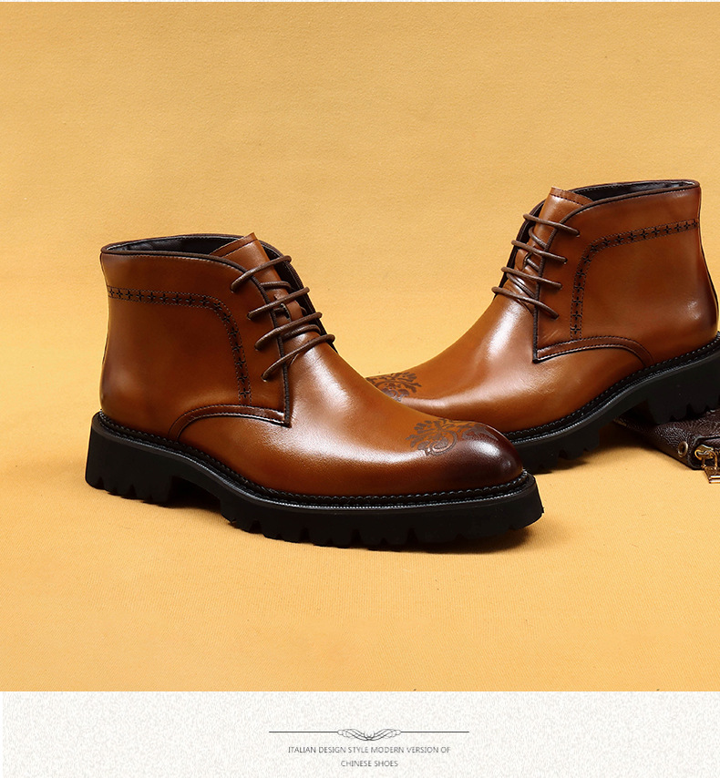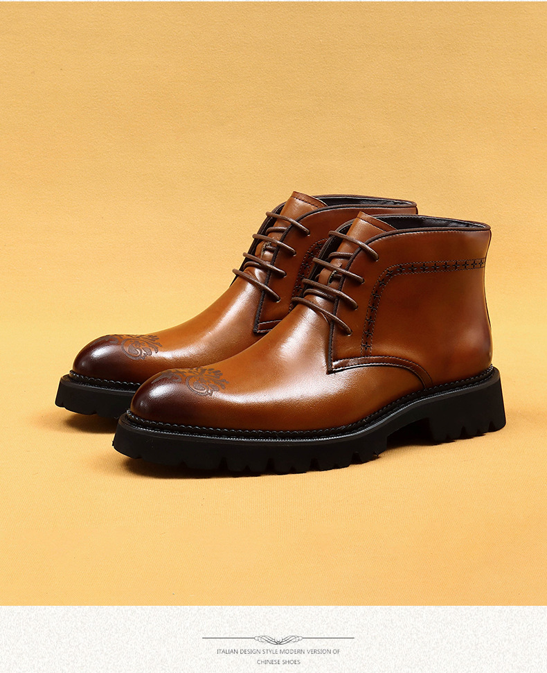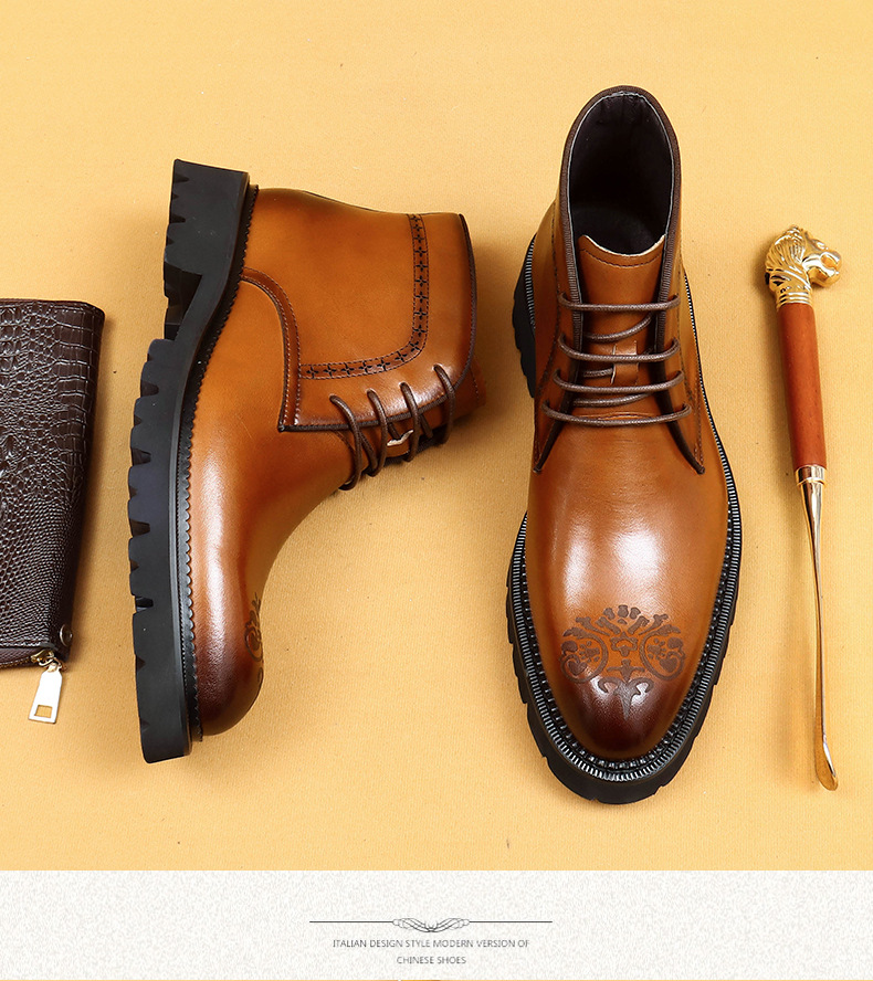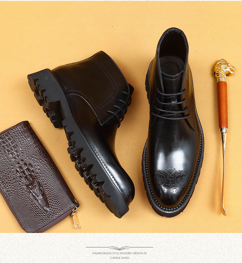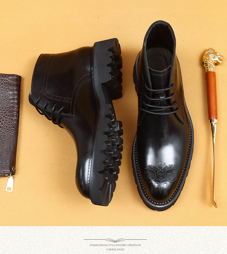 Bốt cổ cao này được làm từ chất liệu da thật, mang đến cảm giác thoải mái và bền bỉ khi sử dụng. Kiểu dáng phối hợp giữa nét cổ điển và hiện đại, với phần mũi nhọn tinh tế cùng các chi tiết hoa văn tinh xảo. Đế giày được thiết kế có độ dày vừa phải, giúp nâng đỡ tốt cho đôi chân. Sản phẩm phù hợp để đi làm hoặc dùng trong các dịp gặp gỡ thông thường. Có thể kết hợp cùng quần âu hoặc quần jeans để tạo nên vẻ ngoại hình chỉn chu. | Tên sản phẩm: Boot Martin Nam Chất Liệu Da Bò Mũi Nhọn Họa Tiết Hoa Đế Cao - Giày Dép Nam | Mã sản phẩm: B1462 - Giá: 2.680.000đ | Mã nhà sản xuất: SHDAP-G06Hình ảnh sản phẩm