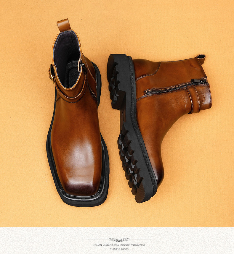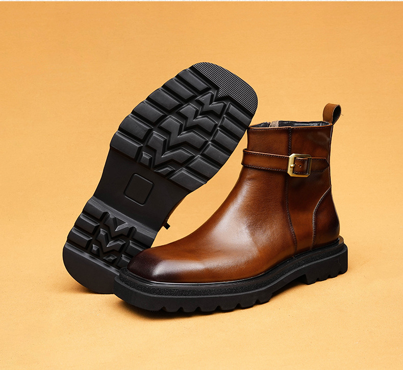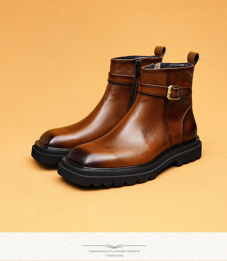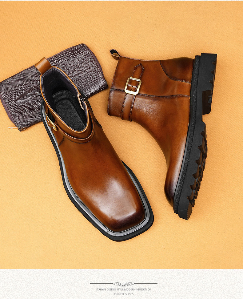 Đôi bốt da thật dành cho nam, kiểu dáng bốt gót thấp cổ điển. Sản phẩm có phần đế được làm dày dặn, tạo dáng đứng và khỏe khoắn. Thiết kế cổ thấp ôm gọn mắt cá chân, kết hợp khóa kéo bên hông giúp việc mang vào và tháo ra dễ dàng. Mũi giày vuông vức mang lại phong cách mạnh mẽ. Rất phù hợp để sử dụng trong những ngày thời tiết lạnh. | Tên sản phẩm: Boot Cổ Thấp Nam Chất Liệu Da Bò Đế Cao Hàng Mùa Xuân Thu Đông - Giày Dép Nam | Mã sản phẩm: B1469 - Giá: 2.640.000đ | Mã nhà sản xuất: SHDAP-G06Hình ảnh sản phẩm