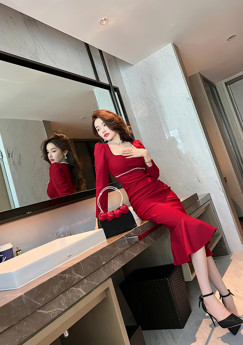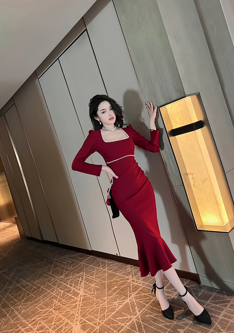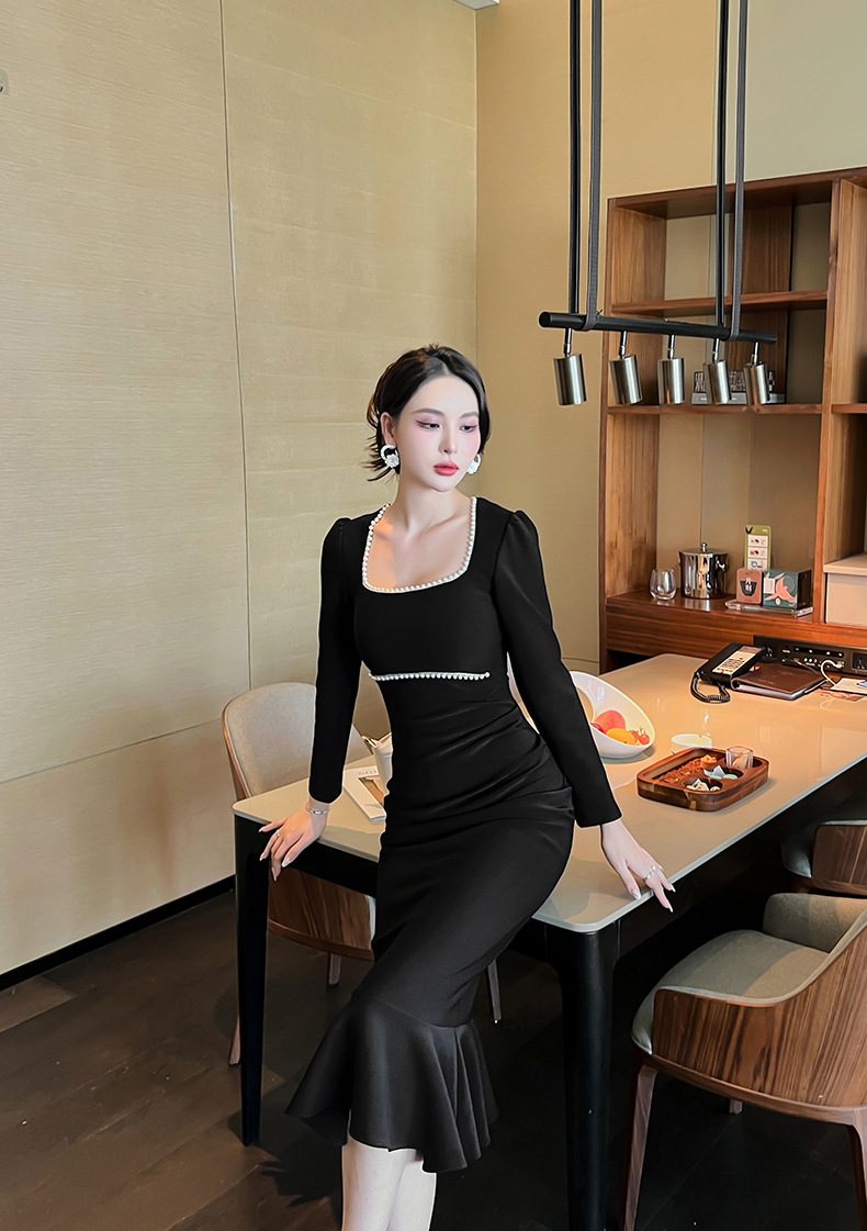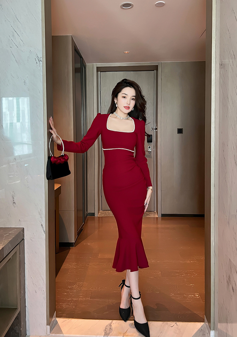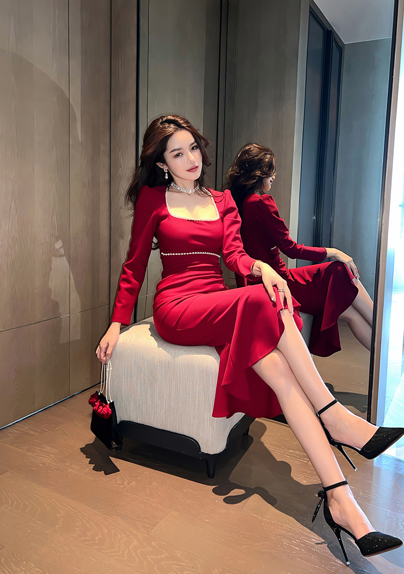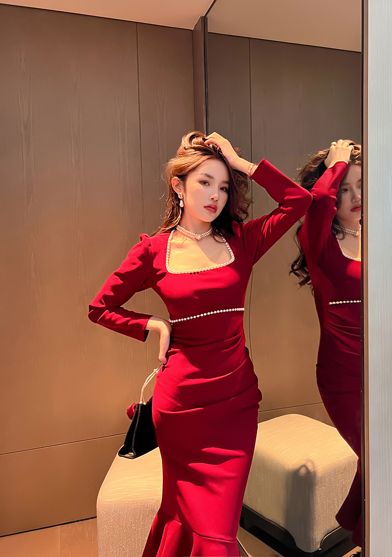 Chiếc đầm dành cho mùa thu với kiểu dáng cổ vuông thanh lịch, tay dài và phần eo ôm tôn dáng. Điểm nhấn là những hạt ngọc tr nhỏ xinh được đính tinh tế cùng thiết kế đuôi cá duyên dáng. Chất vải mềm mại giúp bạn thoải mái trong từng cử động. Sản phẩm phù hợp cho nhiều dịp đi chơi, đi làm hay dự tiệc. Bạn chỉ cần giặt nhẹ và phơi khô tự nhiên để giữ áo bền đẹp. | Tên sản phẩm: Váy Đầm Liền Thân Nữ Dài Tay Kiểu Đuôi Cá Hàng Mùa Xuân Thu Đông - Thời Trang Nữ | Mã sản phẩm: B1473 - Giá: 1.120.000đ | Mã nhà sản xuất: CHDG-G04Hình ảnh sản phẩm