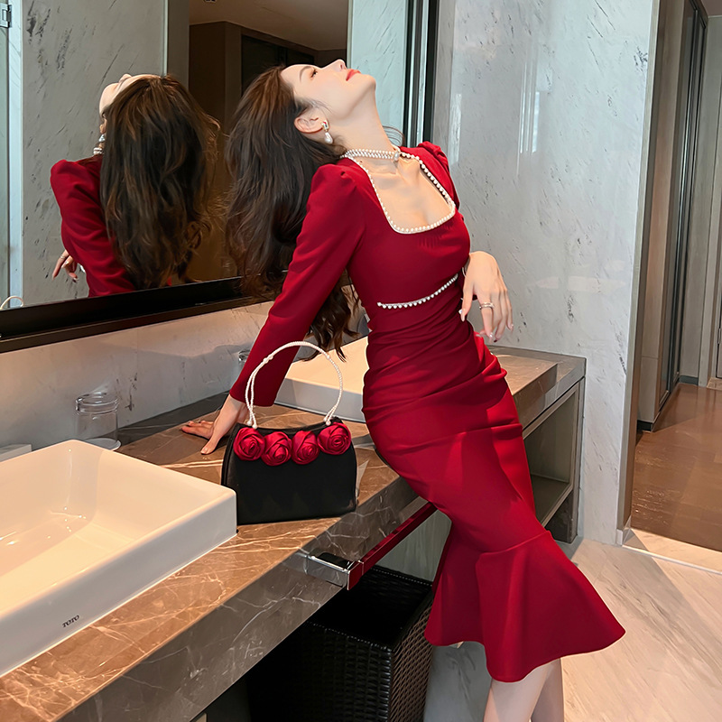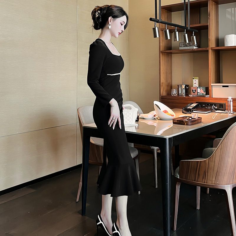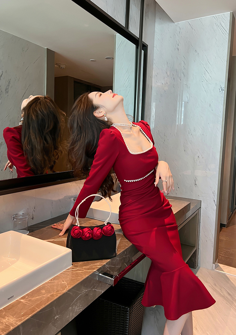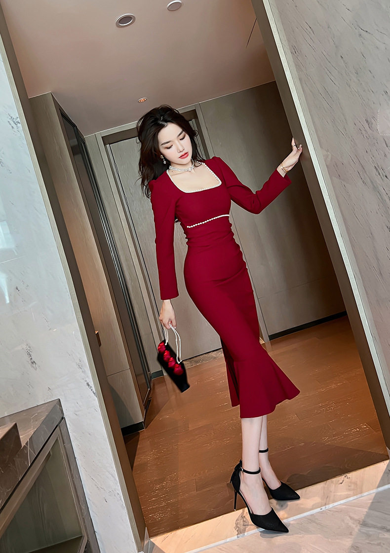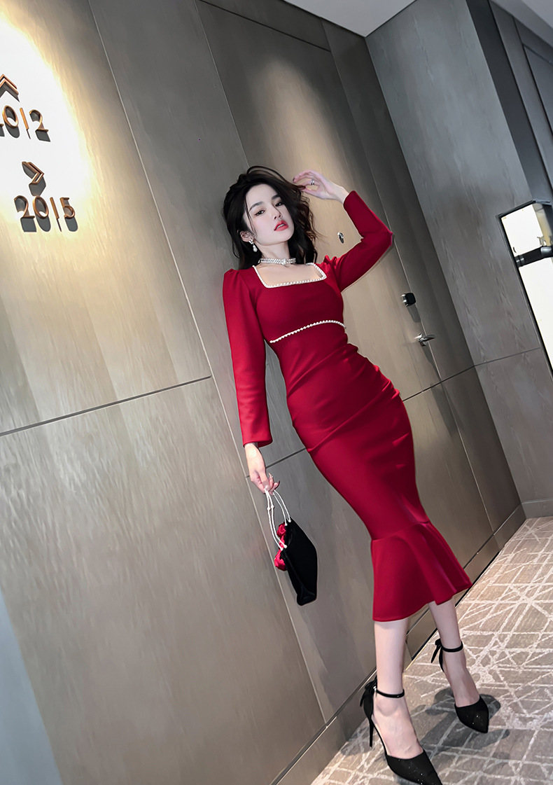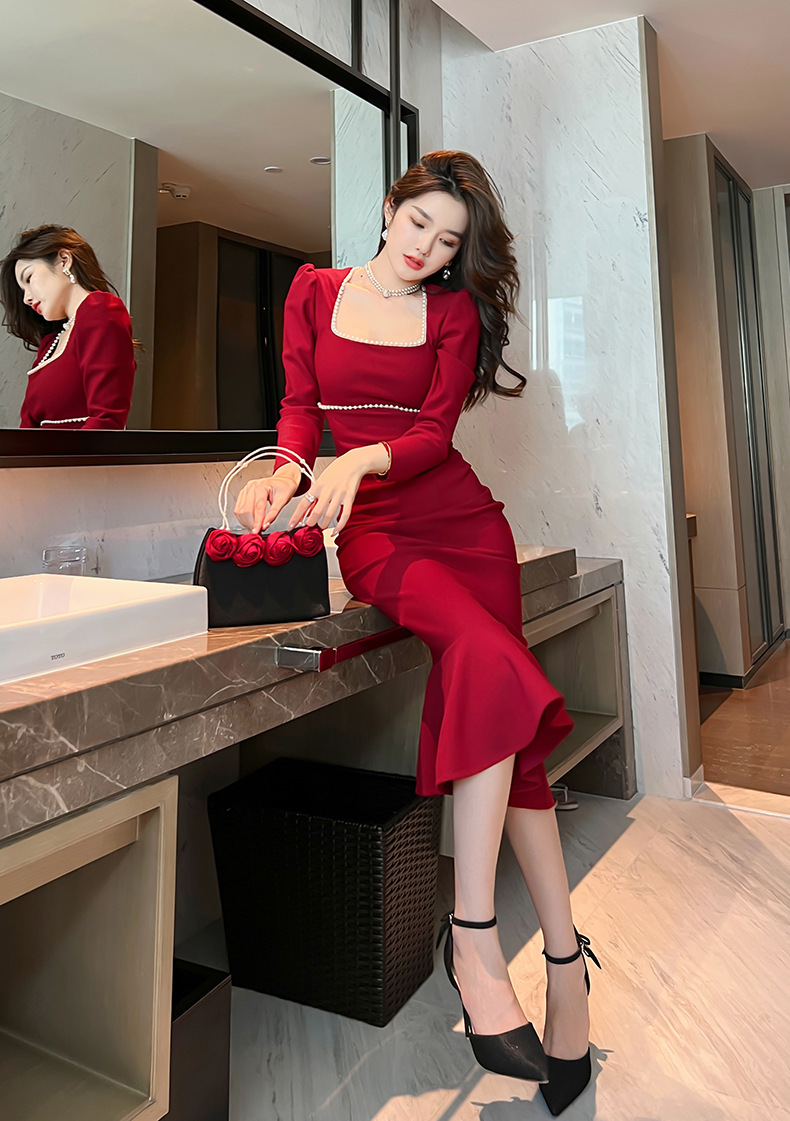 Chiếc đầm dành cho mùa thu với kiểu dáng cổ vuông thanh lịch, tay dài và phần eo ôm tôn dáng. Điểm nhấn là những hạt ngọc tr nhỏ xinh được đính tinh tế cùng thiết kế đuôi cá duyên dáng. Chất vải mềm mại giúp bạn thoải mái trong từng cử động. Sản phẩm phù hợp cho nhiều dịp đi chơi, đi làm hay dự tiệc. Bạn chỉ cần giặt nhẹ và phơi khô tự nhiên để giữ áo bền đẹp. | Tên sản phẩm: Váy Đầm Liền Thân Nữ Dài Tay Kiểu Đuôi Cá Hàng Mùa Xuân Thu Đông - Thời Trang Nữ | Mã sản phẩm: B1473 - Giá: 1.120.000đ | Mã nhà sản xuất: CHDG-G04Hình ảnh sản phẩm