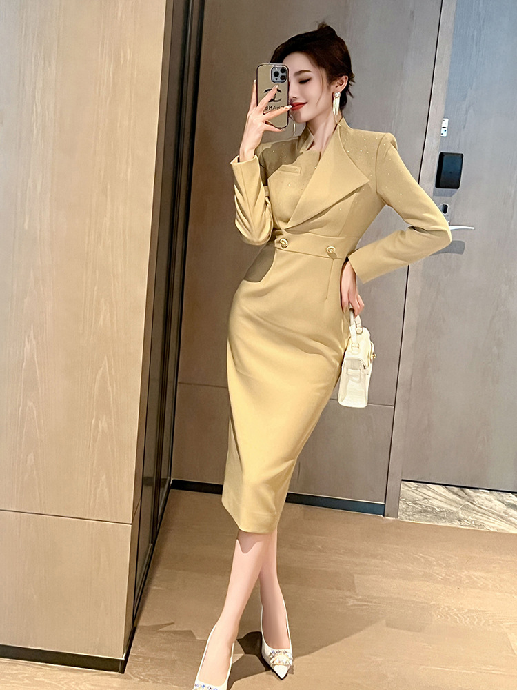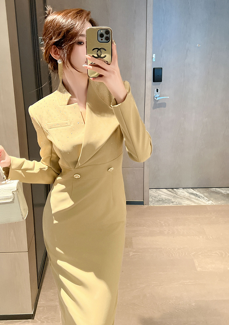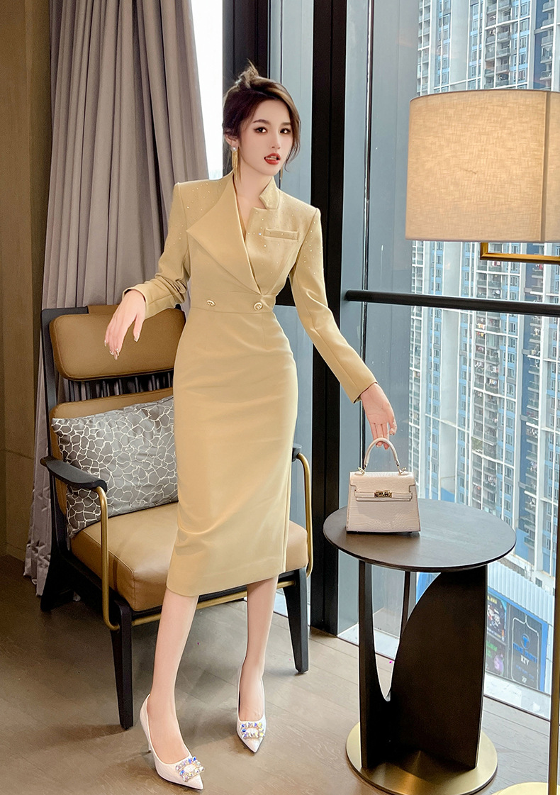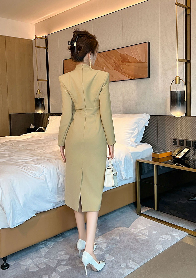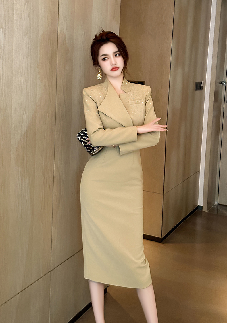 Đầm dáng ôm dành cho nữ, kiểu dáng mới phù hợp khi đi làm. Cổ dựng thiết kế tinh tế, được điểm xuyến tỉ mỉ bằng các hạt đá lấp lánh. Chất vải mềm mại, tôn dáng người mặc. Sản phẩm dễ dàng phối cùng giày cao gót và túi xách. Giặt nhẹ nhàng bằng tay hoặc máy, bảo quản nơi khô ráo để giữ form áo và độ bền của đá trang trí. | Tên sản phẩm: Váy Đầm Liền Thân Nữ Dáng Ôm Hàng Mùa Xuân Thu Đông Đồ Công Sở - Thời Trang Nữ | Mã sản phẩm: B1477 - Giá: 1.360.000đ | Mã nhà sản xuất: CHDG-G04Hình ảnh sản phẩm