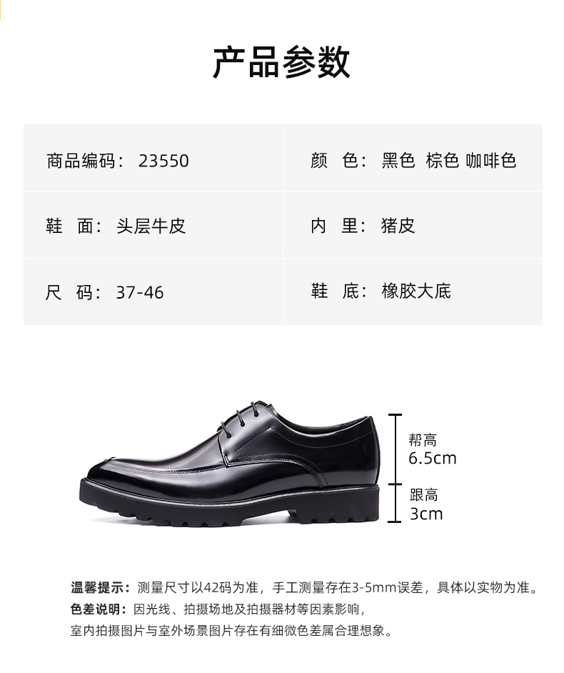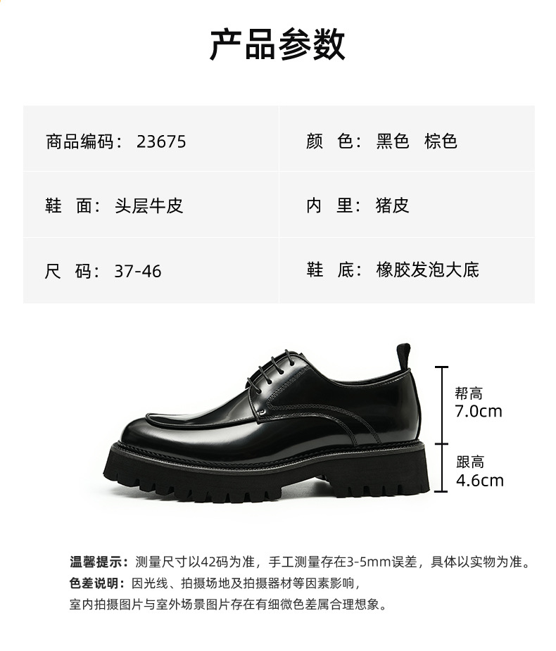 Giày da dành cho nam, kiểu dáng tròn trịa phù hợp cho cả công sở và dạo phố. Sản phẩm được làm từ chất liệu da thật, bề mặt bóng đẹp. Đế giày được thiết kế dày dặn một cách vừa phải, giúp tăng chiều cao nhẹ nhàng và tạo cảm giác thoải mái khi di chuyển. Bạn có thể dễ dàng phối cùng nhiều loại trang phục khác nhau, từ quần âu đến quần jean. | Tên sản phẩm: Giày Da Nam Chất Liệu Da Bò Mũi Tròn Tăng Chiều Cao Đế Cao - Giày Dép Nam | Mã sản phẩm: B1505 - Giá: 2.260.000đ | Mã nhà sản xuất: SHERAW-G05Hình ảnh sản phẩm