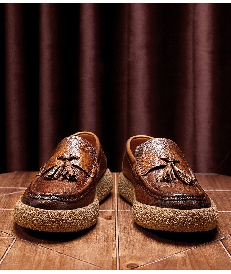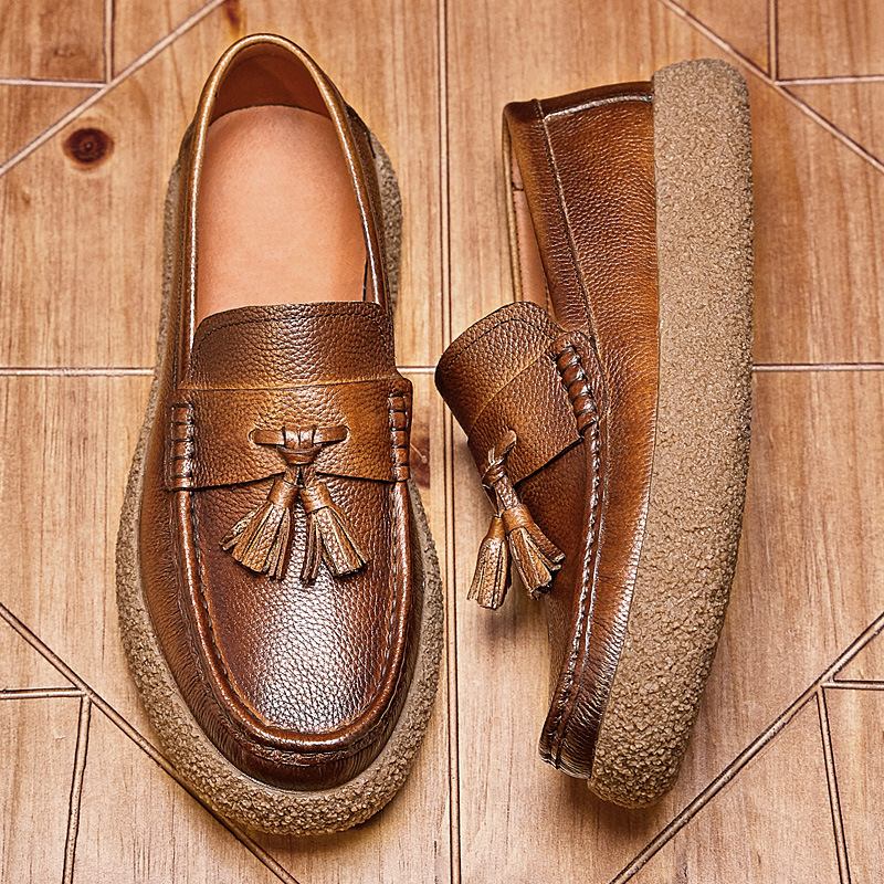 Giày da bò dành cho nam, kiểu dáng lười thư giãn phong cách Anh. Sản phẩm được làm từ chất liệu da bò mềm mại, mang lại cảm giác dễ chịu khi sử dụng. Kiểu giày không cần buộc dây, tiện lợi để mang vào hoặc tháo ra nhanh chóng. Phù hợp để kết hợp với nhiều loại trang phục khác nhau trong các dịp thường ngày. Bạn chỉ cần lau sạch bề mặt bằng vải mềm để giữ giày luôn sạch sẽ. | Tên sản phẩm: Giày Da Nam Chất Liệu Da Bò - Giày Dép Nam | Mã sản phẩm: B1598 - Giá: 2.680.000đ | Mã nhà sản xuất: SHDT-G06Hình ảnh sản phẩm