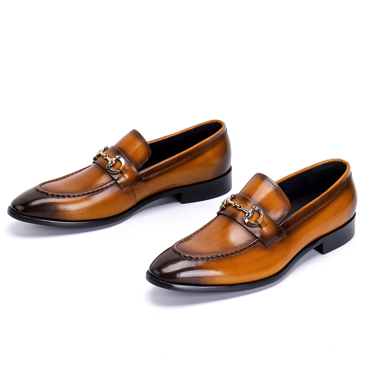 Giày tây dành cho nam, được làm từ chất liệu da thật, mang đến cảm giác thoải mái và bền lâu. Kiểu dáng mũi nhọn thanh lịch, phù hợp cho cả những buổi gặp mặt công việc và dạo phố cuối tuần. Phong cách thiết kế Loafer cổ điển, dễ dàng phối cùng nhiều loại trang phục khác nhau. Chỉ cần xỏ vào là có thể bước đi, rất tiện lợi và nhanh chóng. Đôi giày giúp bạn tự tin và thoải mái trong mọi hoạt động thường ngày. | Tên sản phẩm: Giày Da Nam Chất Liệu Da Bò Mũi Nhọn - Giày Dép Nam | Mã sản phẩm: B1715 - Giá: 2.260.000đ | Mã nhà sản xuất: SHERAW-G05Hình ảnh sản phẩm