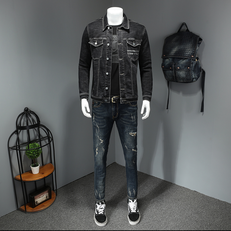 Áo khoác kiểu dáng vải bò nam tính với cổ bẻ, mang đến vẻ ngoại hình khỏe khoắn. Chất liệu được dệt dày dặn và có lớp lót bông mềm bên trong, giữ ấm tốt trong thời tiết se lạnh. Trên nền vải màu đen nổi bật các họa tiết in đặc sắc. Sản phẩm dễ dàng phối cùng quần jeans hoặc quần kaki, phù hợp cho nhiều dịp đi chơi, dạo phố hay làm việc hằng ngày. | Tên sản phẩm: Áo Khoác Nam Chất Liệu Jean Bò Họa Tiết Hoa Dày Ấm - Thời Trang Nam | Mã sản phẩm: B1755 - Giá: 1.780.000đ | Mã nhà sản xuất: QITYGF-G05Hình ảnh sản phẩm