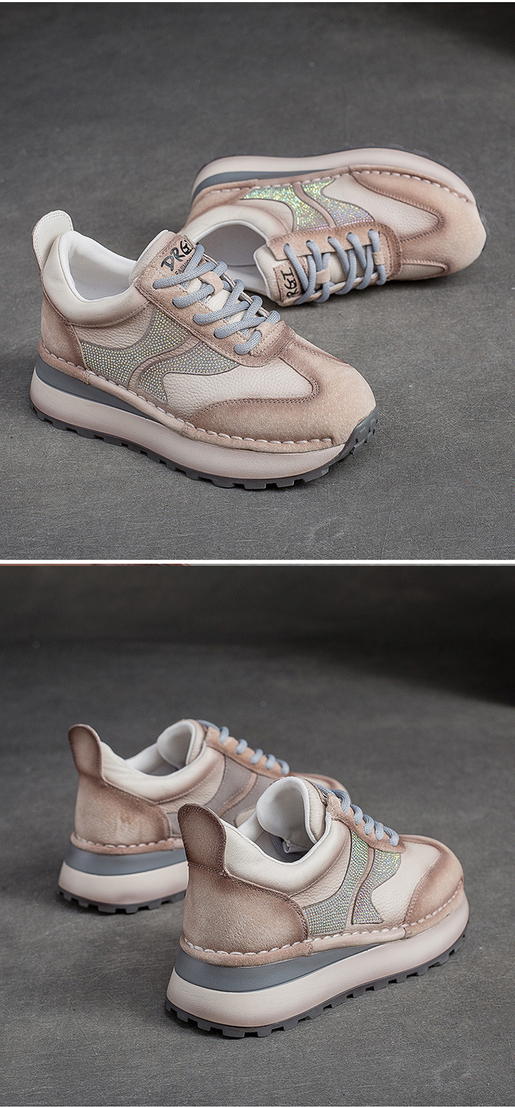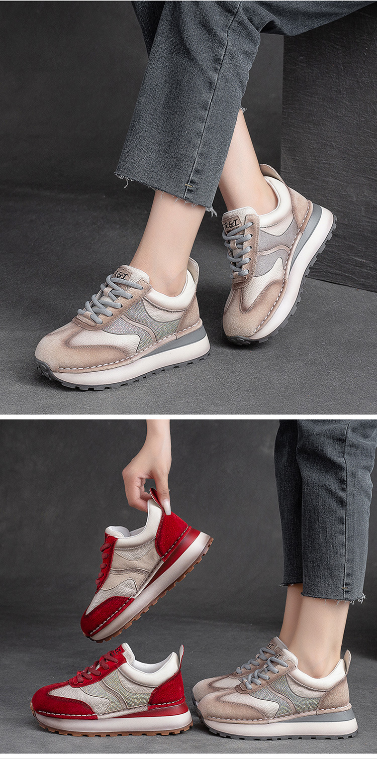 Giày thể thao nữ thiết kế năng động, phù hợp cho mùa thu đông. Sản phẩm được làm từ chất liệu da bò mềm mại, tạo cảm giác dễ chịu khi mang. Phần mũi giày điểm xuyết những viên đá lấp lánh tinh tế cùng sự kết hợp màu sắc hài hòa. Dây cột phía trước giúp điều chỉnh độ ôm vừa vặn. Bạn có thể sử dụng làm giày đi làm, đi chơi hoặc kết hợp với nhiều trang phục thường ngày. | Tên sản phẩm: Giày Thể Thao Nữ Chất Liệu Da Bò Hàng Mùa Xuân Thu Đông - Giày Dép Nữ | Mã sản phẩm: B1787 - Giá: 1.620.000đ | Mã nhà sản xuất: SHDU-G05Hình ảnh sản phẩm