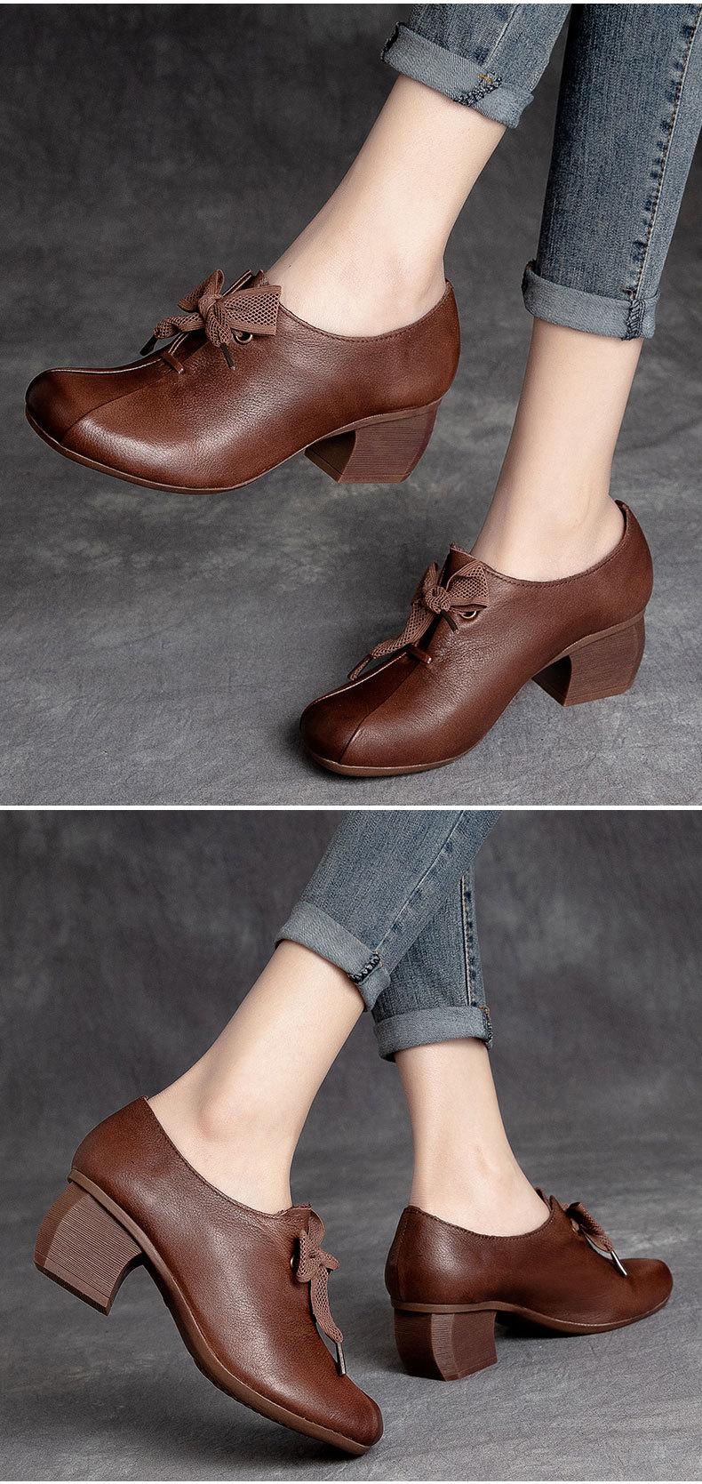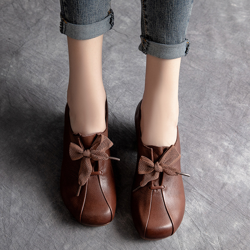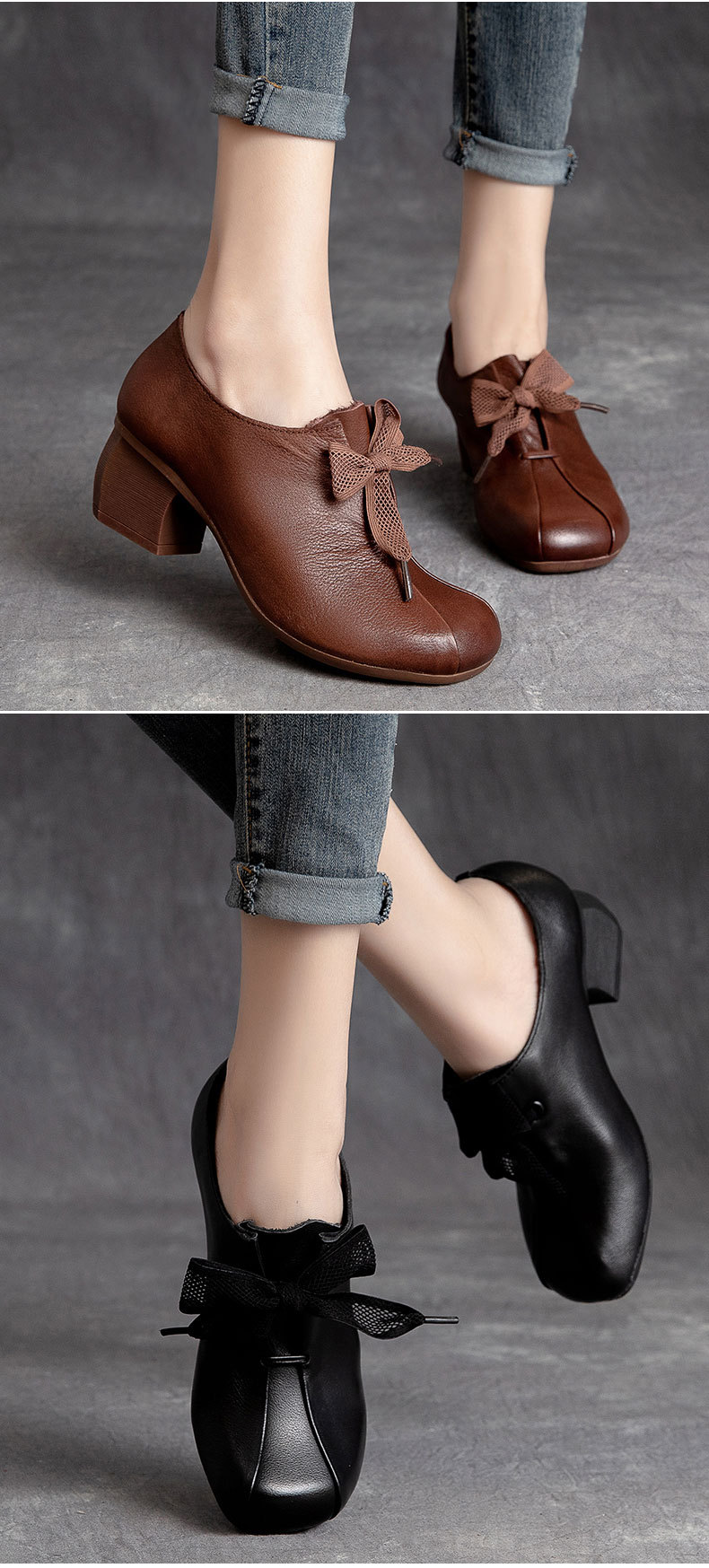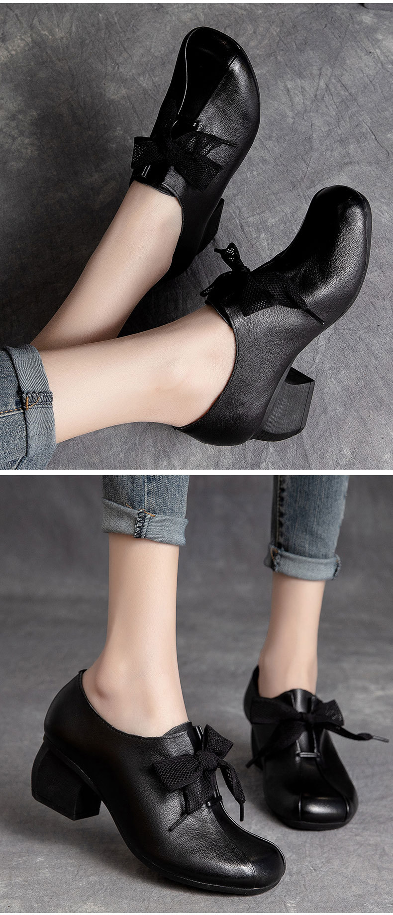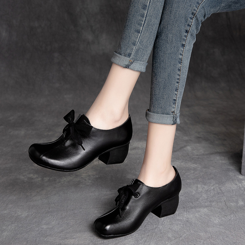 Đôi giày nữ được làm từ chất liệu da bò mềm mại, tạo cảm giác dễ chịu khi mang. Kiểu dáng cổ thấp kín mũi, phần gót được thiết kế chắc chắn. Điểm nhấn là dây rút kèm nơ trang trí tăng thêm nét duyên dáng. Cách phối đồ rất đơn giản, bạn có thể kết hợp cùng quần jeans, váy hay nhiều loại trang phục khác nhau. Sử dụng hàng ngày cho những hoạt động thong thả, nhẹ nhàng. | Tên sản phẩm: Giày Da Nữ Chất Liệu Ren Gót Vuông - Giày Dép Nữ | Mã sản phẩm: B1813 - Giá: 1.050.000đ | Mã nhà sản xuất: SHDU-G03Hình ảnh sản phẩm