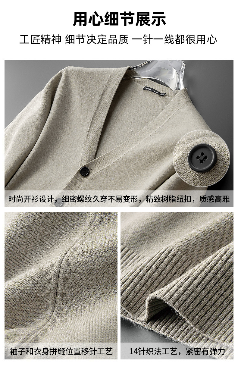 Áo khoác len dệt kim dành cho nam, kiểu dáng cổ chữ V tạo nên điểm nhấn thanh lịch. Chất liệu len mềm mại, ấm áp, phù hợp mặc trong tiết trời thu đông. Thiết kế rộng rãi thoải mái, dễ dàng phối cùng áo thun bên trong. Sản phẩm có thể mặc làm áo khoác nhẹ hoặc áo len mặc thường ngày, giữ ấm hiệu quả mà vẫn rất thoải mái khi vận động. | Tên sản phẩm: Áo Len Nam Áo Len Dáng Dộng Cổ Chữ V Hàng Mùa Xuân Thu Đông - Thời Trang Nam | Mã sản phẩm: B1815 - Giá: 690.000đ | Mã nhà sản xuất: GUDG-G02Hình ảnh sản phẩm