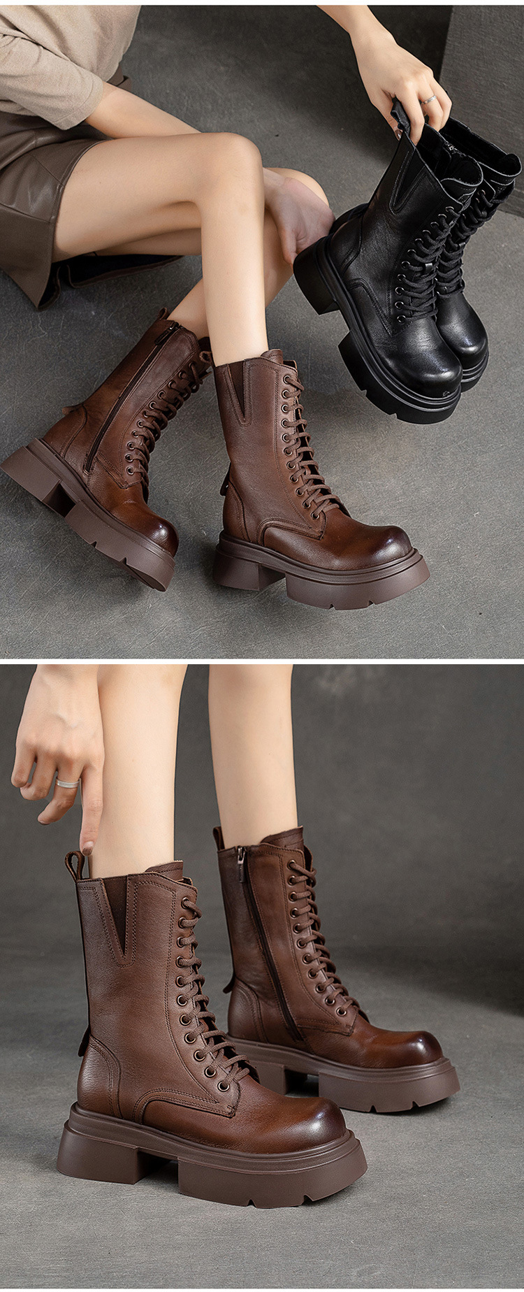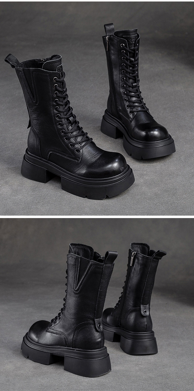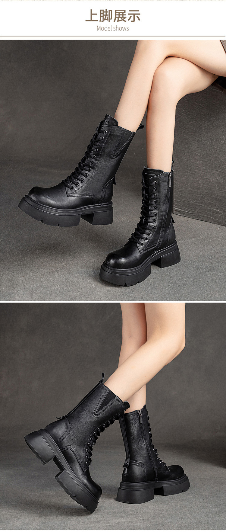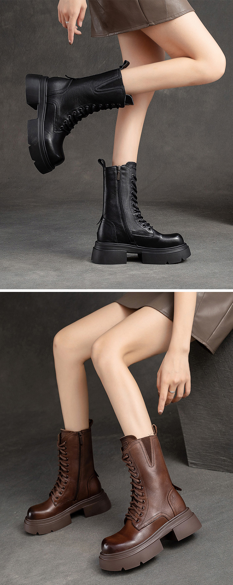 Đôi bốt này được làm từ chất liệu da thật bền đẹp, bên trong có lớp lót bằng vải mềm giữ ấm đôi chân rất tốt cho mùa đông. Kiểu dáng bốt cổ trung cùng phần đế dày mang đến vẻ ngoài khỏe khoắn, năng động. Sản phẩm dễ dàng phối hợp với nhiều loại trang phục như quần jeans hay váy để tạo nên phong cách thời trang cá nhân cho người dùng. | Tên sản phẩm: Giày Boot Martin Nữ Chất Liệu Da Bò Đế Cao Hàng Mùa Xuân Thu Đông - Giày Dép Nữ | Mã sản phẩm: B1824 - Giá: 1.900.000đ | Mã nhà sản xuất: SHDU-G05Hình ảnh sản phẩm