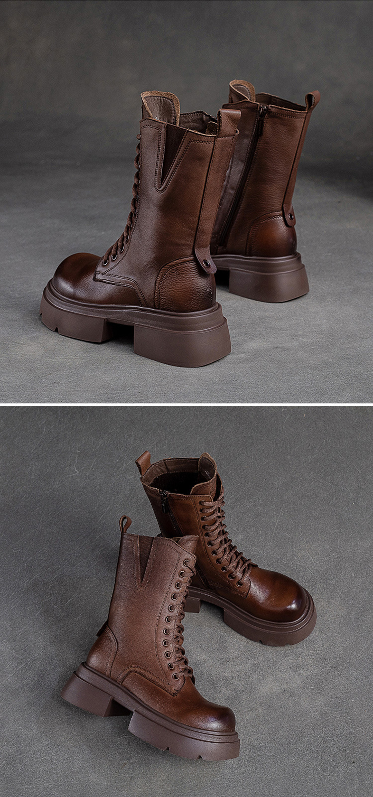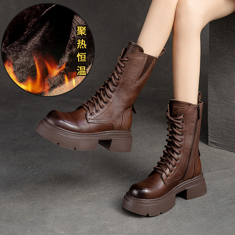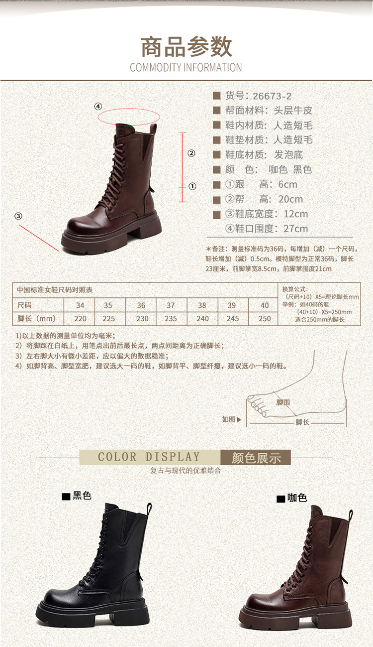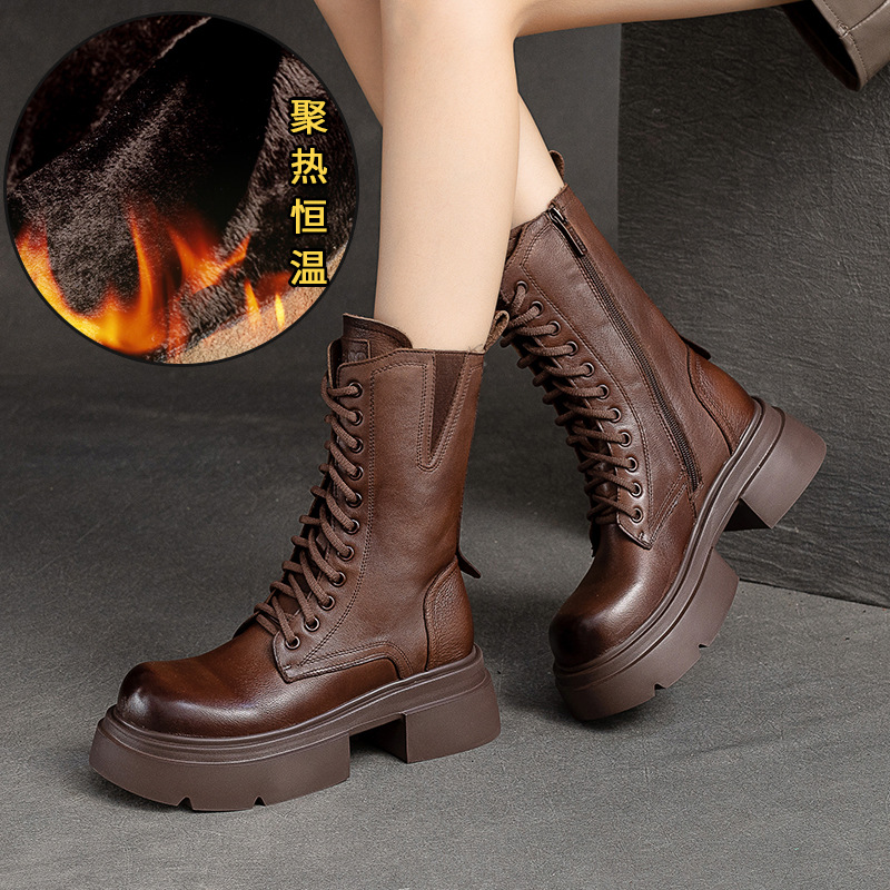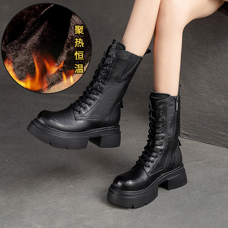 Đôi bốt này được làm từ chất liệu da thật bền đẹp, bên trong có lớp lót bằng vải mềm giữ ấm đôi chân rất tốt cho mùa đông. Kiểu dáng bốt cổ trung cùng phần đế dày mang đến vẻ ngoài khỏe khoắn, năng động. Sản phẩm dễ dàng phối hợp với nhiều loại trang phục như quần jeans hay váy để tạo nên phong cách thời trang cá nhân cho người dùng. | Tên sản phẩm: Giày Boot Martin Nữ Chất Liệu Da Bò Đế Cao Hàng Mùa Xuân Thu Đông - Giày Dép Nữ | Mã sản phẩm: B1824 - Giá: 1.900.000đ | Mã nhà sản xuất: SHDU-G05Hình ảnh sản phẩm