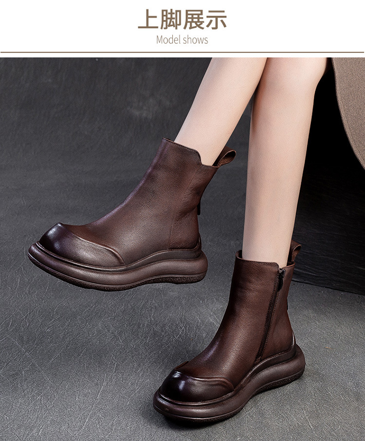 Đôi bốt cổ thấp mới dành cho nữ, kiểu dáng đơn giản và thoải mái. Sản phẩm có phần đế dày tạo cảm giác vững chãi, phù hợp cho việc đi lại hàng ngày hoặc làm việc. Phong cách mang nét cổ điển nhẹ nhàng, dễ dàng kết hợp với nhiều loại trang phục khác nhau như quần jeans hay váy. Chỉ cần xỏ chân vào và kéo khóa phía sau là đã sẵn sàng sử dụng. | Tên sản phẩm: Giày Thể Thao Tăng Chiều Cao Nữ Đế Cao Hàng Mùa Xuân Thu Đông Phục Cổ Cổ Điển - Giày Dép Nữ | Mã sản phẩm: B1836 - Giá: 1.620.000đ | Mã nhà sản xuất: SHDU-G05Hình ảnh sản phẩm