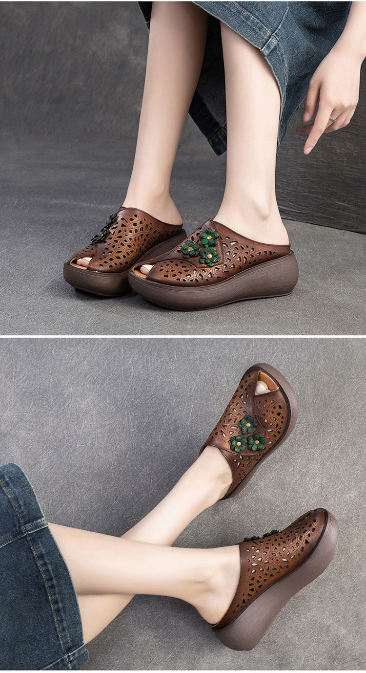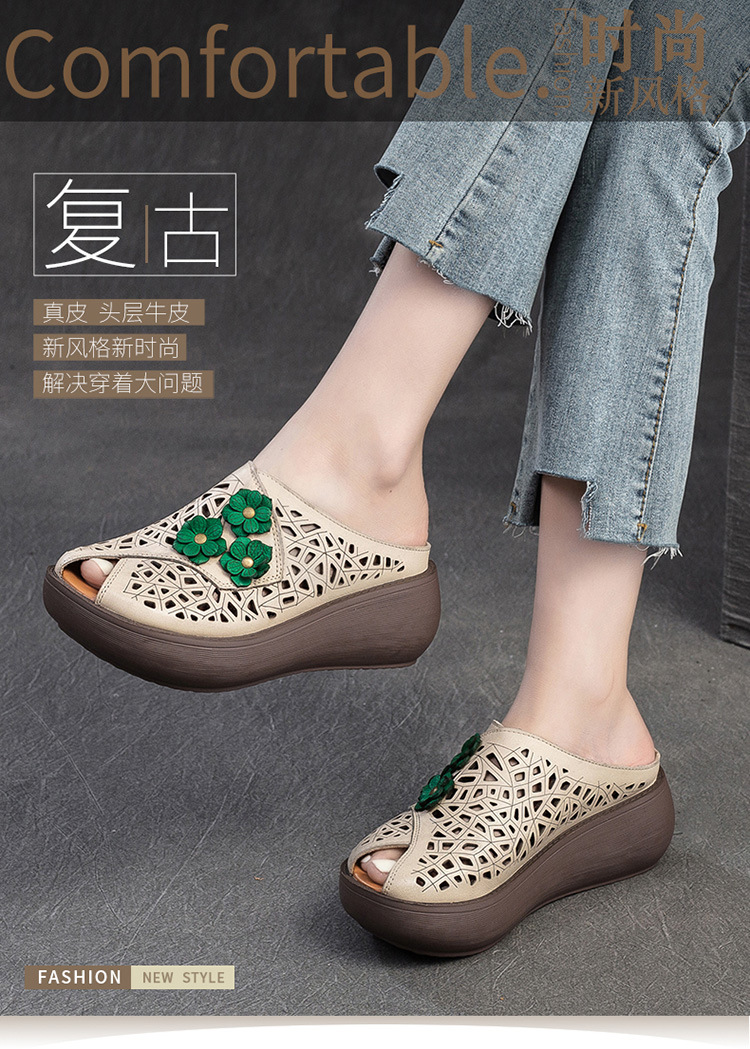 Dép thời trang mùa hè 2024 với phong cách dân tộc độc đáo. Đế dép được thiết kế dạng nghiêng nhẹ cùng phần mũi hở kiểu miệng cá, tạo điểm nhấn cá tính. Điểm nổi bật là các chi tiết khoét lỗ tinh tế giúp đôi chân luôn thông thoáng, dễ chịu. Kiểu dáng thoải mái, dễ phối đồ với nhiều trang phục khác nhau. Sản phẩm phù hợp cho các hoạt động thường ngày, mang lại sự tiện lợi và năng động cho người dùng. | Tên sản phẩm: Giày Dép Lê Nữ Đế Xuồng Miệng Cá Hàng Mùa Hè - Giày Dép Nữ | Mã sản phẩm: B1858 - Giá: 1.380.000đ | Mã nhà sản xuất: SHDU-G04Hình ảnh sản phẩm