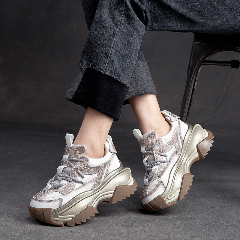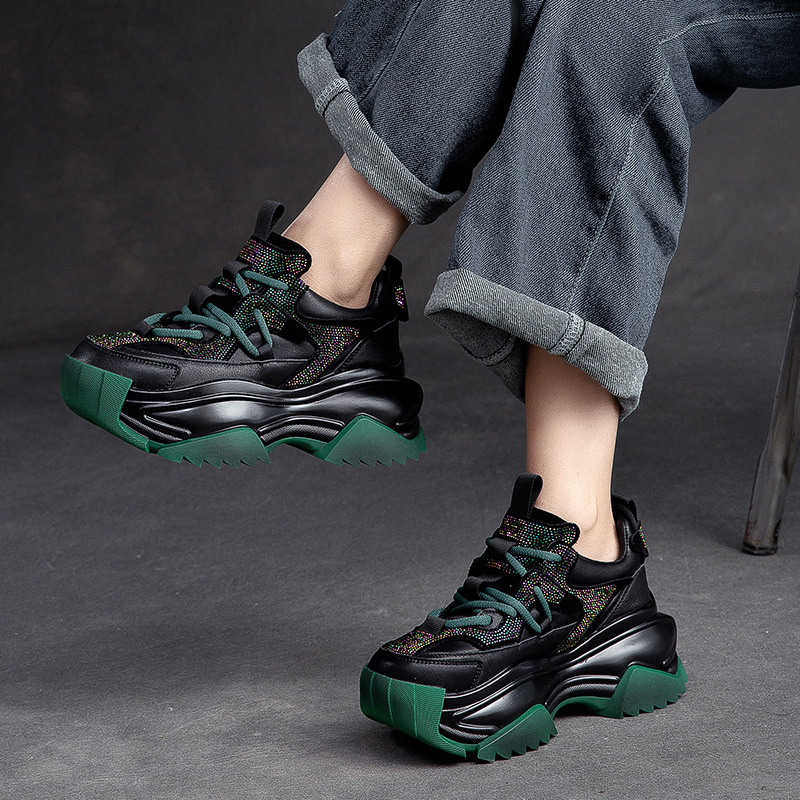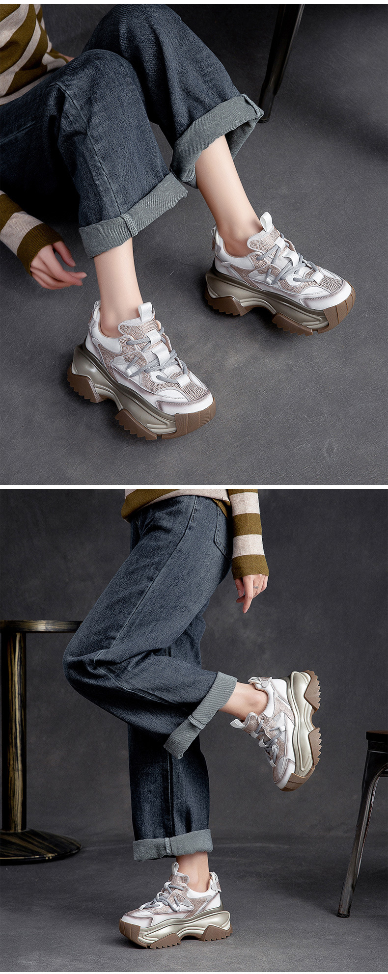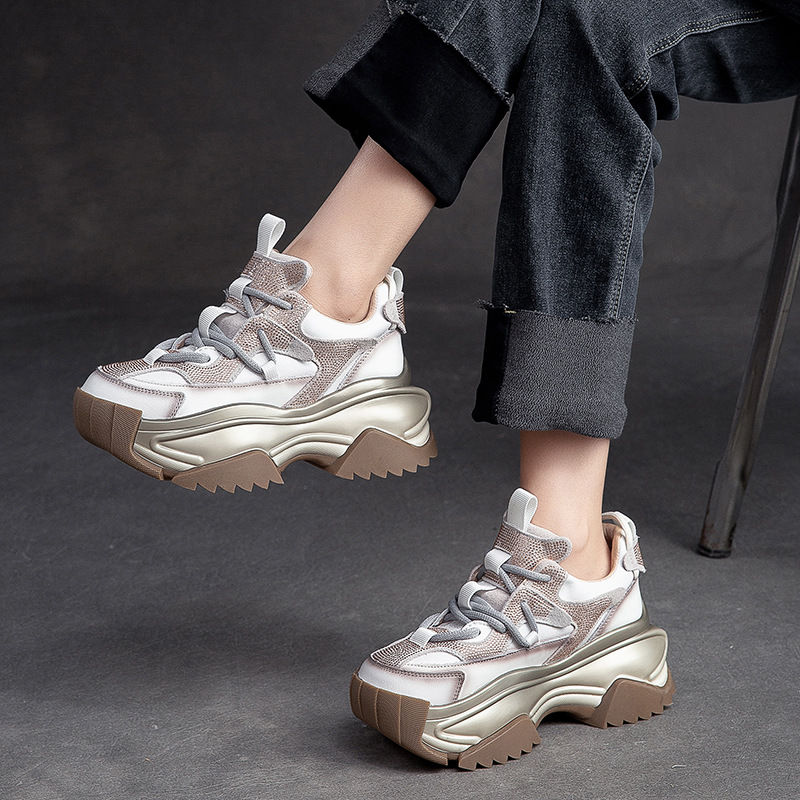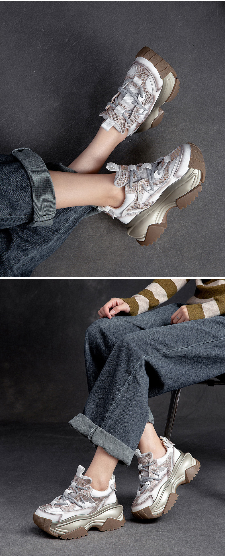 Giày thiết kế dáng thể thao phong cách mới, phù hợp cho các bạn nữ. Sản phẩm có phần đế dày nhẹ, tạo cảm giác thoải mái khi mang. Bề mặt giày được điểm xuyết những chi tiết óng ánh tinh tế, kết hợp cùng màu sắc thuần nhất dễ dàng phối đồ. Kiểu dáng cổ thấp ôm chân, có thể sử dụng hằng ngày để đi học, đi chơi hoặc dạo phố. Mang giày vào và cột dây thật nhẹ nhàng là đã sẵn sàng xuống phố. | Tên sản phẩm: Giày Thể Thao Tăng Chiều Cao Nữ Đế Cao Hàng Mùa Xuân Thu Đông - Giày Dép Nữ | Mã sản phẩm: B1860 - Giá: 1.810.000đ | Mã nhà sản xuất: SHDU-G05Hình ảnh sản phẩm
