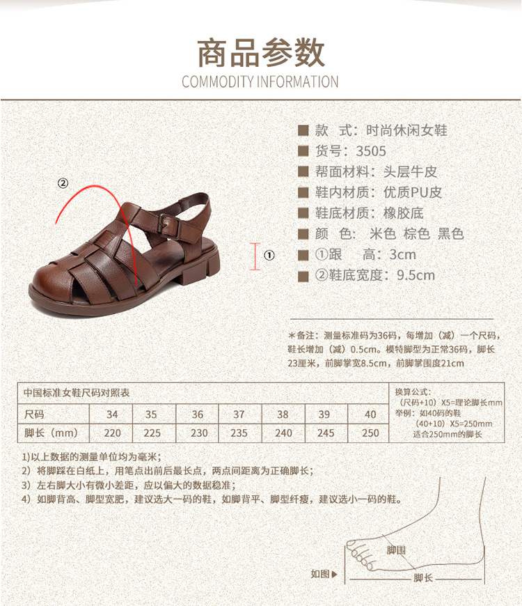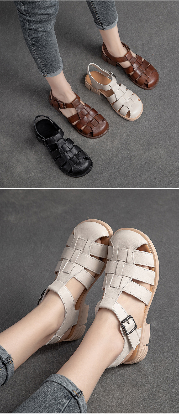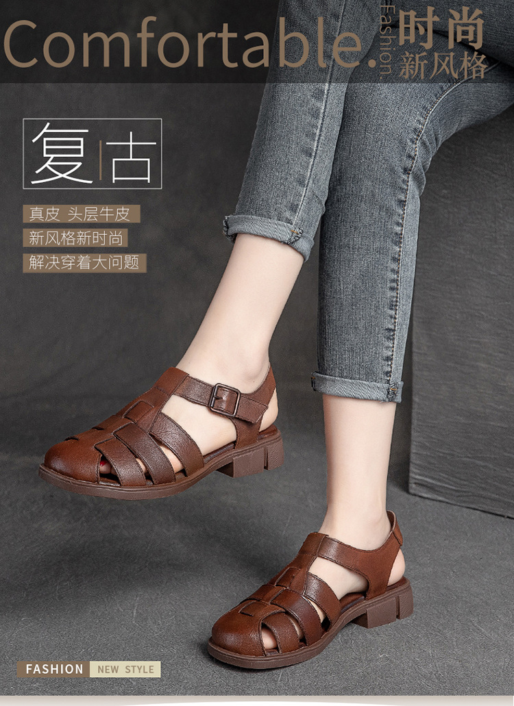 Dép qu hậu mới cho mùa hè với kiểu dáng tròn dễ thương. Đế bằng phẳng mang lại sự thoải mái cho cả ngày dài. Chất liệu thoáng khí giúp đôi chân luôn mát mẻ và dễ chịu. Thiết kế một màu đơn giản nhưng phong cách, dễ dàng kết hợp với nhiều loại trang phục khác nhau như quần shorts, váy hay quần dài. Chỉ cần xỏ chân vào và cài qu sau là đã có ngay một diện mật tươi trẻ và năng động. | Tên sản phẩm: Giày Dép Sandal Nữ Mũi Tròn Thoáng Khí Hàng Mùa Hè Phục Cổ Cổ Điển - Giày Dép Nữ | Mã sản phẩm: B1867 - Giá: 1.280.000đ | Mã nhà sản xuất: SHDU-G04Hình ảnh sản phẩm