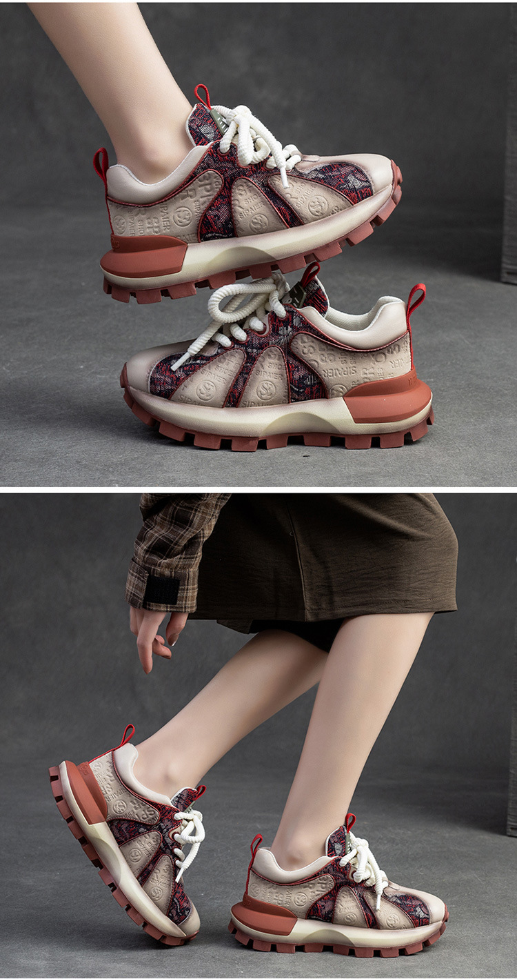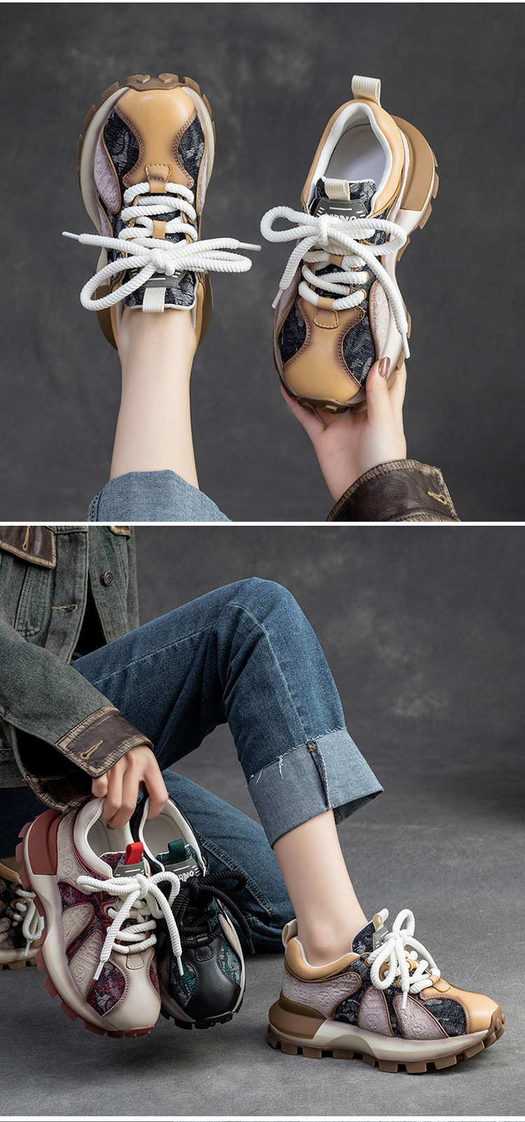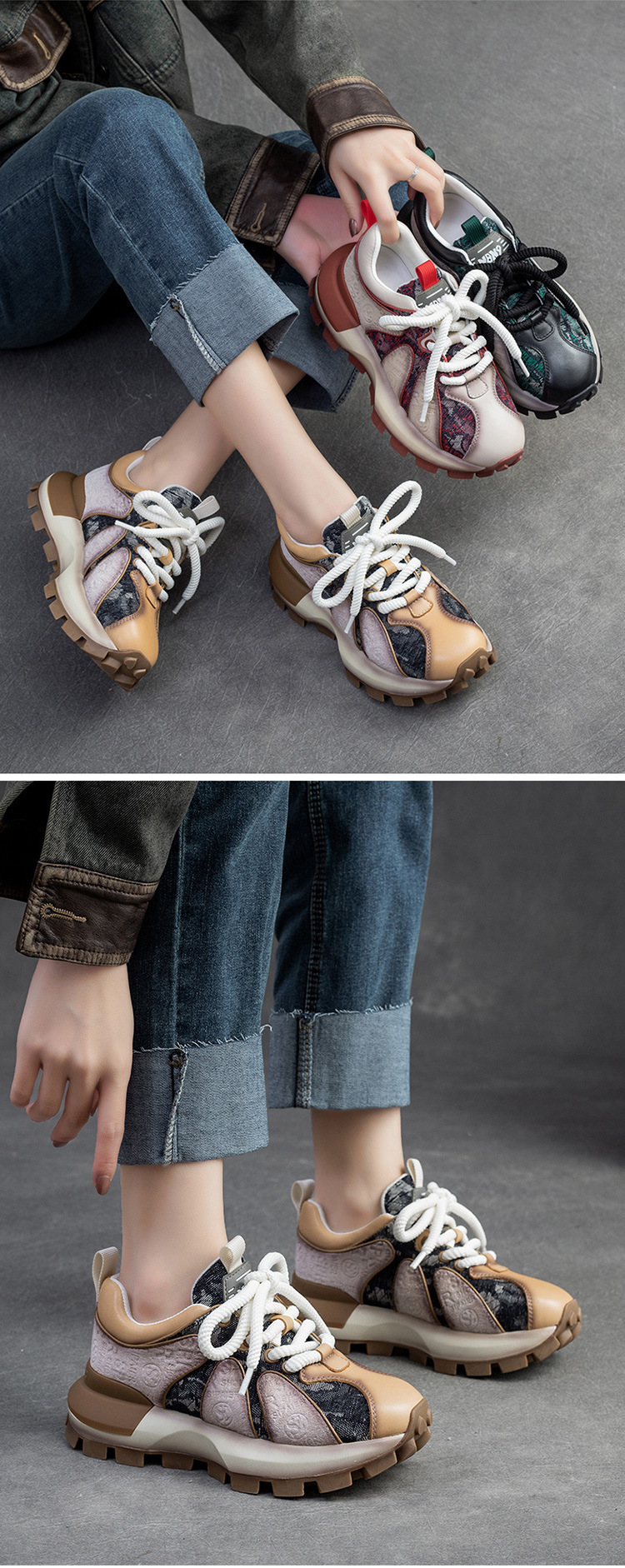 Giày nữ dáng thể thao, phong cách cổ điển nhẹ nhàng cho những ngày thoải mái. Sản phẩm có phần đế hơi dày, ôm tròn bàn chân, được kết hợp từ nhiều màu sắc hài hòa. Kiểu dáng này dễ dàng phối cùng nhiều loại trang phục như quần jeans hay váy ngắn. Bạn có thể mang chúng mỗi ngày để di chuyển mà vẫn cảm thấy êm ái và tiện lợi. | Tên sản phẩm: Giày Thể Thao Tăng Chiều Cao Nữ Mũi Tròn Đế Cao Hàng Mùa Xuân Thu Đông Phục Cổ Cổ Điển - Giày Dép Nữ | Mã sản phẩm: B1872 - Giá: 1.620.000đ | Mã nhà sản xuất: SHDU-G05Hình ảnh sản phẩm