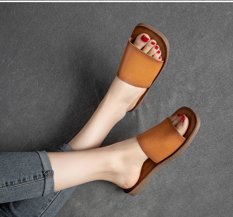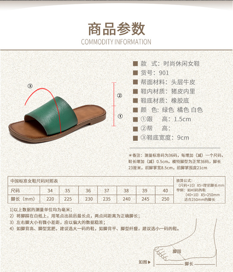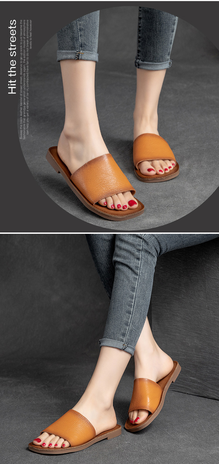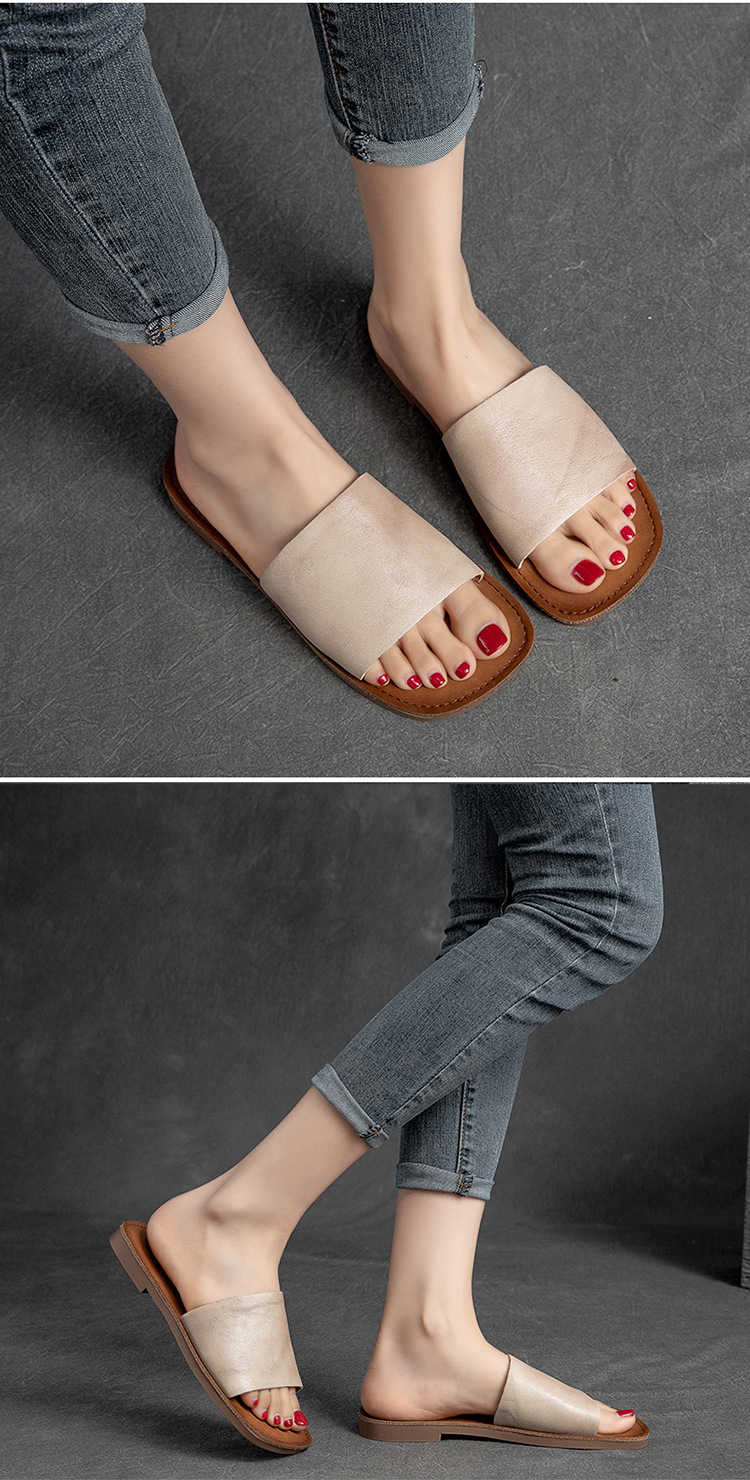 Đôi dép thời trang nữ thiết kế đế bằng, kiểu dáng thoải mái cho những ngày hè oi bức. Chất liệu da bò mềm mại kết hợp công nghệ xử lý bề mặt tạo vẻ ngoài phong cách. Bên trong lót dép có các lỗ thông khí nhỏ, giúp đôi chân luôn khô ráo và dễ chịu khi sử dụng lâu. Bạn chỉ cần xỏ chân vào và đi, rất tiện lợi cho các sinh hoạt thường ngày hay dạo phố. | Tên sản phẩm: Giày Dép Lê Nữ Chất Liệu Da Bò Thoáng Khí Hàng Mùa Hè - Giày Dép Nữ | Mã sản phẩm: B1889 - Giá: 1.050.000đ | Mã nhà sản xuất: SHDU-G03Hình ảnh sản phẩm