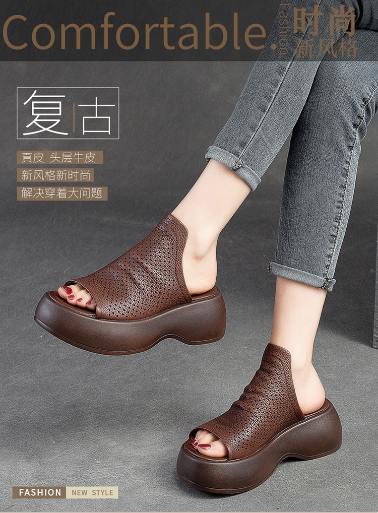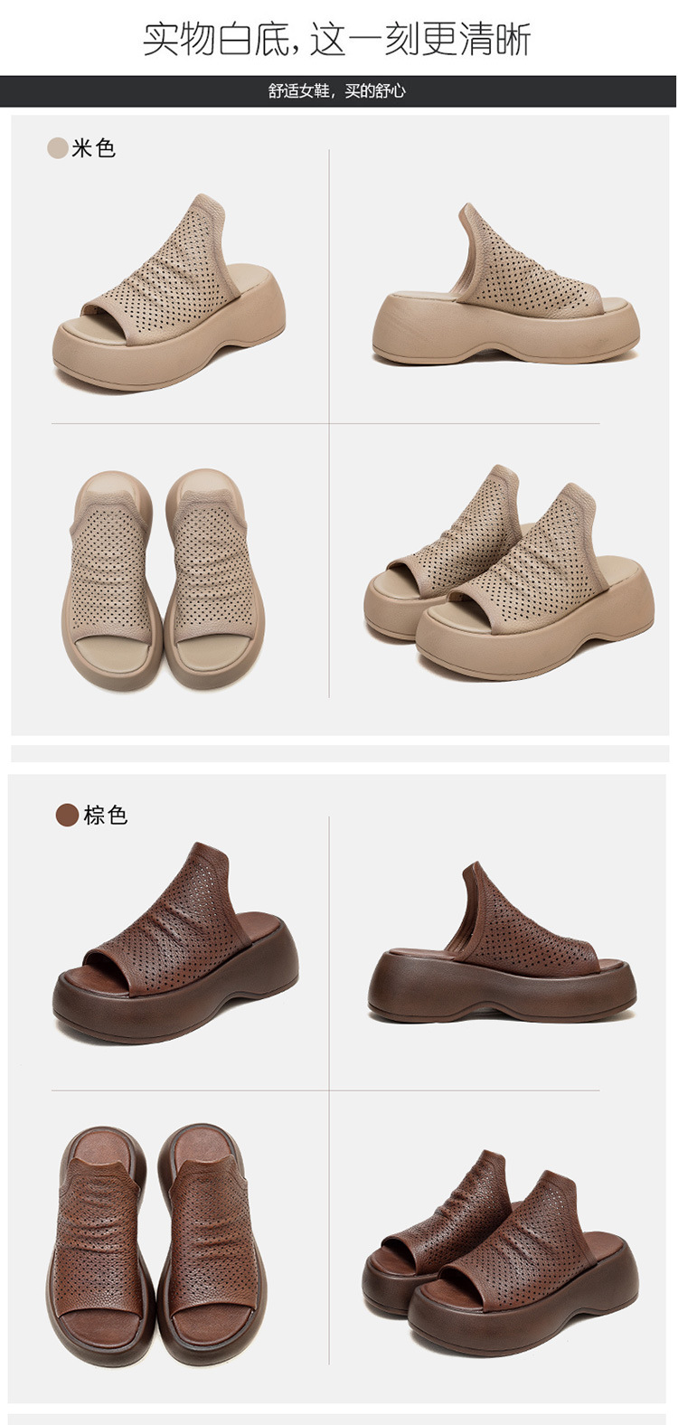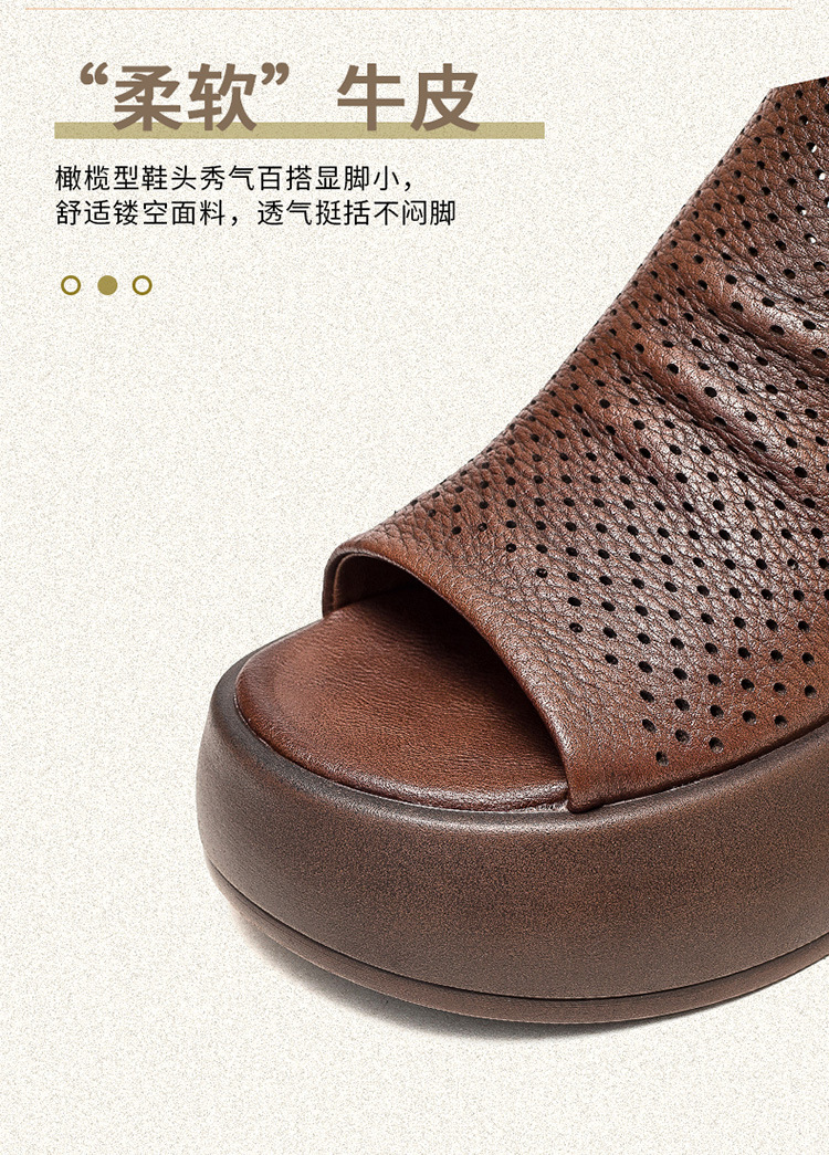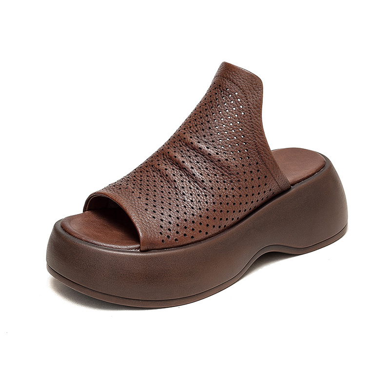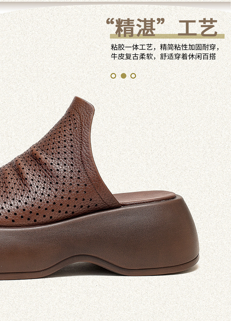 Dép đi trong nhà có phần đế dày và chắc chắn, được làm từ chất liệu da mềm mại và bền. Kiểu dáng mang phong cách cổ điển, với những đường cắt lỗ tỉ mỉ giúp không khí lưu thông tốt, mang lại cảm giác thoải mái và dễ chịu cho đôi chân. Sản phẩm thích hợp để sử dụng hàng ngày tại nhà hoặc những lúc thư giãn. Chỉ cần xỏ chân vào là có thể dùng được ngay, rất tiện lợi và thoáng mát. | Tên sản phẩm: Giày Dép Lê Nữ Chất Liệu Da Bò Thoáng Khí Đế Cao Hàng Mùa Hè Phục Cổ Cổ Điển - Giày Dép Nữ | Mã sản phẩm: B1898 - Giá: 1.380.000đ | Mã nhà sản xuất: SHDU-G04Hình ảnh sản phẩm