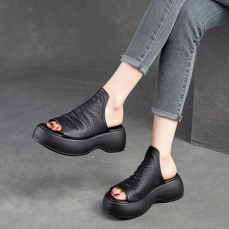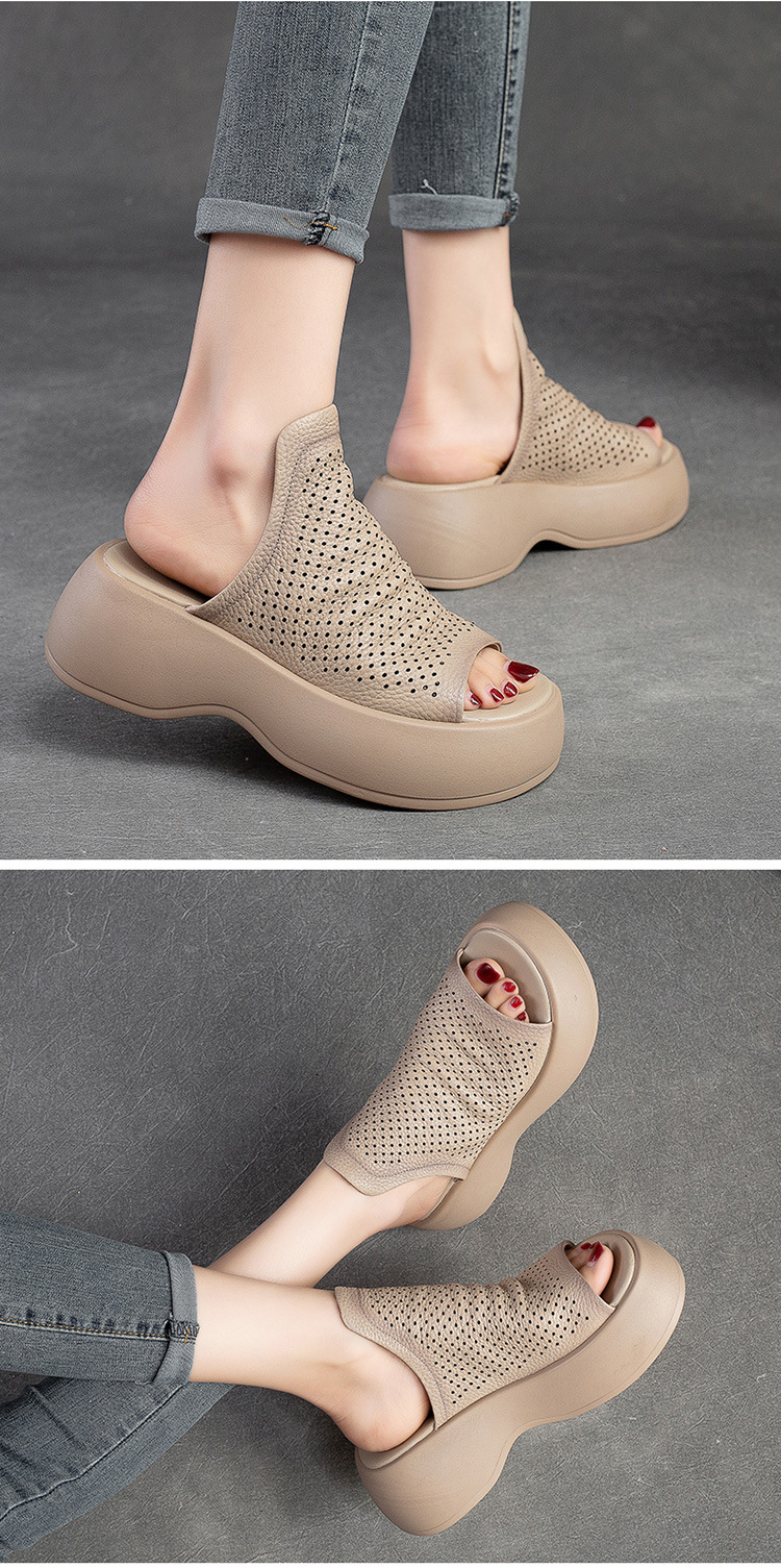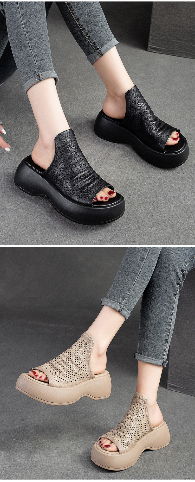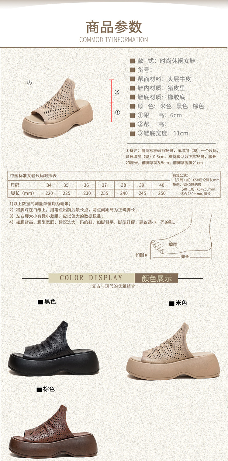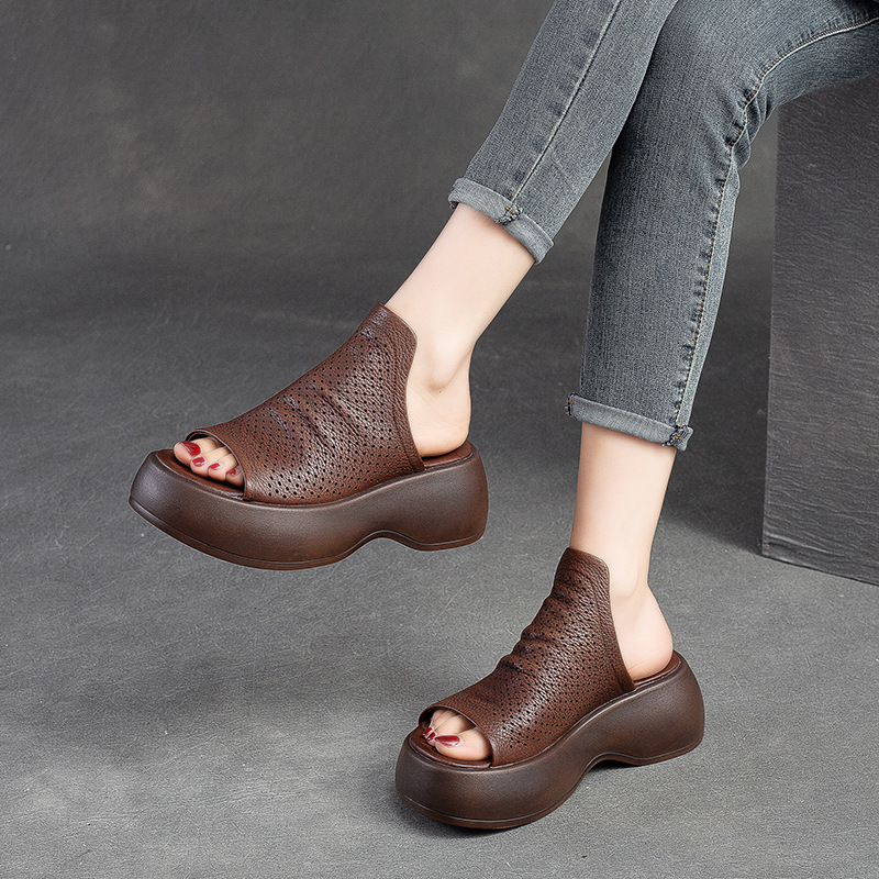 Dép đi trong nhà có phần đế dày và chắc chắn, được làm từ chất liệu da mềm mại và bền. Kiểu dáng mang phong cách cổ điển, với những đường cắt lỗ tỉ mỉ giúp không khí lưu thông tốt, mang lại cảm giác thoải mái và dễ chịu cho đôi chân. Sản phẩm thích hợp để sử dụng hàng ngày tại nhà hoặc những lúc thư giãn. Chỉ cần xỏ chân vào là có thể dùng được ngay, rất tiện lợi và thoáng mát. | Tên sản phẩm: Giày Dép Lê Nữ Chất Liệu Da Bò Thoáng Khí Đế Cao Hàng Mùa Hè Phục Cổ Cổ Điển - Giày Dép Nữ | Mã sản phẩm: B1898 - Giá: 1.380.000đ | Mã nhà sản xuất: SHDU-G04Hình ảnh sản phẩm