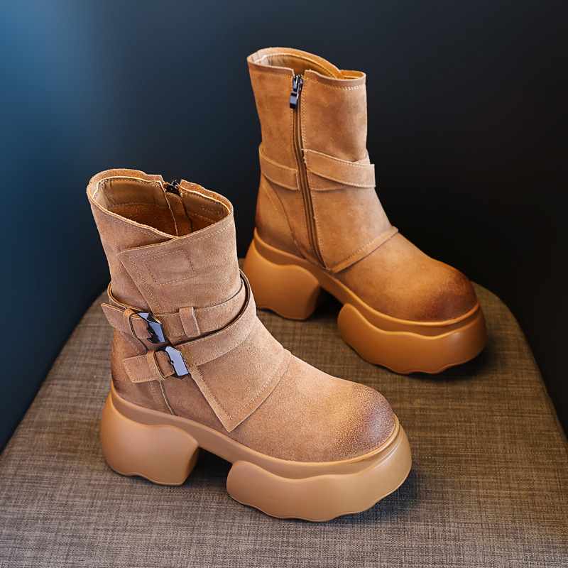 Đôi bốt cổ thấp này có phần đế dày bên trong giúp tăng chiều cao một cách tự nhiên. Kiểu dáng mang phong cách cổ điển, kết hợp cùng khóa đ trang trí tạo điểm nhấn. Dáng bốt ôm gọn, phù hợp để diện cùng nhiều loại trang phục khác nhau trong những ngày trời mát. Bạn có thể xỏ chân vào dễ dàng và dùng khóa kim loại để điều chỉnh cho vừa vặn. | Tên sản phẩm: Boot Cổ Thấp Nữ Tăng Chiều Cao Đế Cao Hàng Mùa Xuân Thu Đông Phục Cổ Cổ Điển - Giày Dép Nữ | Mã sản phẩm: B1914 - Giá: 1.210.000đ | Mã nhà sản xuất: WEDS-G04Hình ảnh sản phẩm