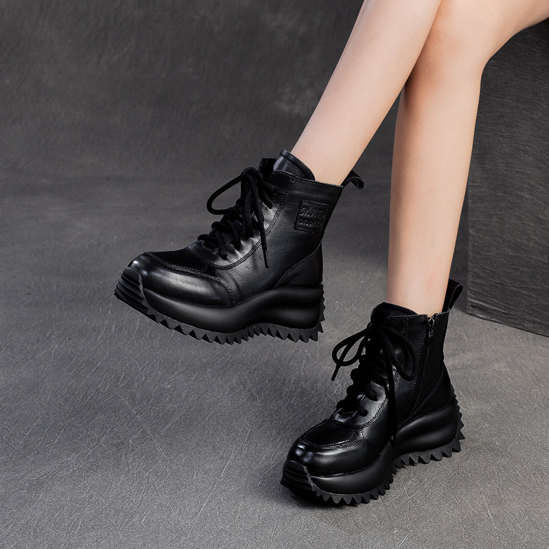 Đôi bốt cổ thấp này mang phong cách cổ điển châu Âu, phù hợp cho những ngày đông. Đế giày được làm dày một cách vừa phải, giúp tăng chiều cao nhẹ nhàng. Kiểu dáng kết hợp giữa nét đẹp xưa và sự thoải mái hiện đại, dễ dàng phối cùng nhiều loại trang phục khác nhau như quần jeans hay váy. Bạn có thể sử dụng hằng ngày để đi làm, đi chơi hay dạo phố. Chỉ cần lau sạch bề mặt bằng vải mềm sau khi dùng. | Tên sản phẩm: Giày Boot Martin Nữ Tăng Chiều Cao Đế Cao Hàng Mùa Xuân Thu Đông Phục Cổ Cổ Điển - Giày Dép Nữ | Mã sản phẩm: B1919 - Giá: 1.710.000đ | Mã nhà sản xuất: SHDU-G05Hình ảnh sản phẩm