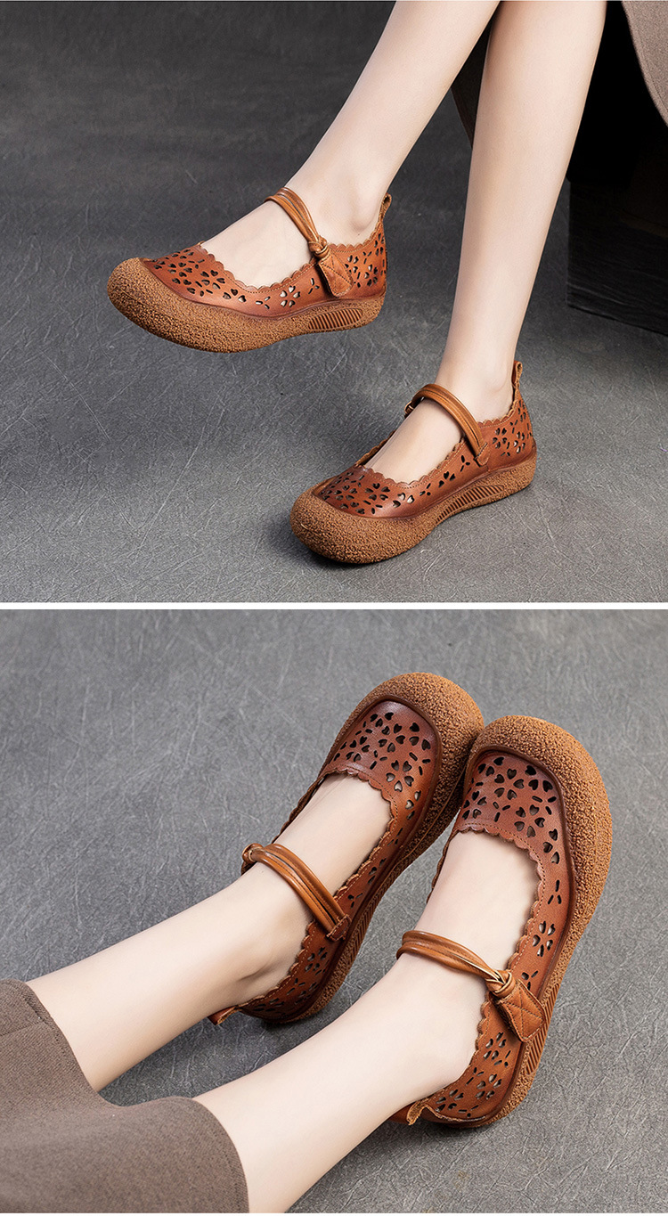 Giày nữ thiết kế theo phong cách cổ điển, mang cảm giác thoải mái và mát mẻ cho mùa hè. Trên mặt giày có nhiều lỗ nhỏ thông gió, giúp đôi chân luôn khô ráo và dễ chịu. Kiểu dáng đơn giản, dễ dàng kết hợp với nhiều loại trang phục khác nhau như quần short, váy hay quần jeans. Sản phẩm phù hợp cho các hoạt động thường ngày, đi dạo hay gặp gỡ bạn bè. Chỉ cần xỏ chân vào và điều chỉnh qu cho vừa vặn là có thể sử dụng ngay. | Tên sản phẩm: Giày Dép Sandal Nữ Thoáng Khí Hàng Mùa Hè Phục Cổ Cổ Điển - Giày Dép Nữ | Mã sản phẩm: B1923 - Giá: 1.280.000đ | Mã nhà sản xuất: SHDU-G04Hình ảnh sản phẩm