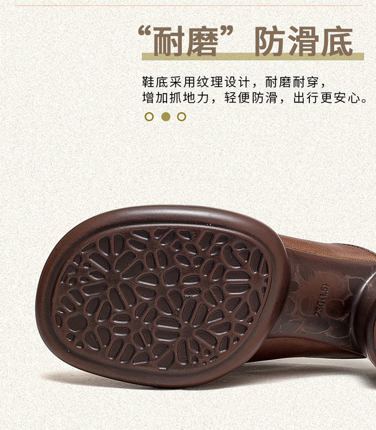 Đôi dép qu hậu mang phong cách hoài cổ với điểm nhấn là phần mũi khoét hình miệng cá độc đáo. Sản phẩm được làm từ chất liệu da bò mềm mại, tạo cảm giác dễ chịu khi mang. Đế giày có độ cao vừa phải, giúp tôn dáng một cách tự nhiên. Kiểu dáng đơn giản, dễ phối hợp với nhiều trang phục khác nhau như quần short, váy mùa hè. Bạn có thể sử dụng hằng ngày để tạo nên một phong cách nhẹ nhàng và thoải mái. | Tên sản phẩm: Giày Dép Lê Nữ Chất Liệu Da Bò Miệng Cá Hàng Mùa Hè Phục Cổ Cổ Điển - Giày Dép Nữ | Mã sản phẩm: B1932 - Giá: 1.280.000đ | Mã nhà sản xuất: SHDU-G04Hình ảnh sản phẩm
