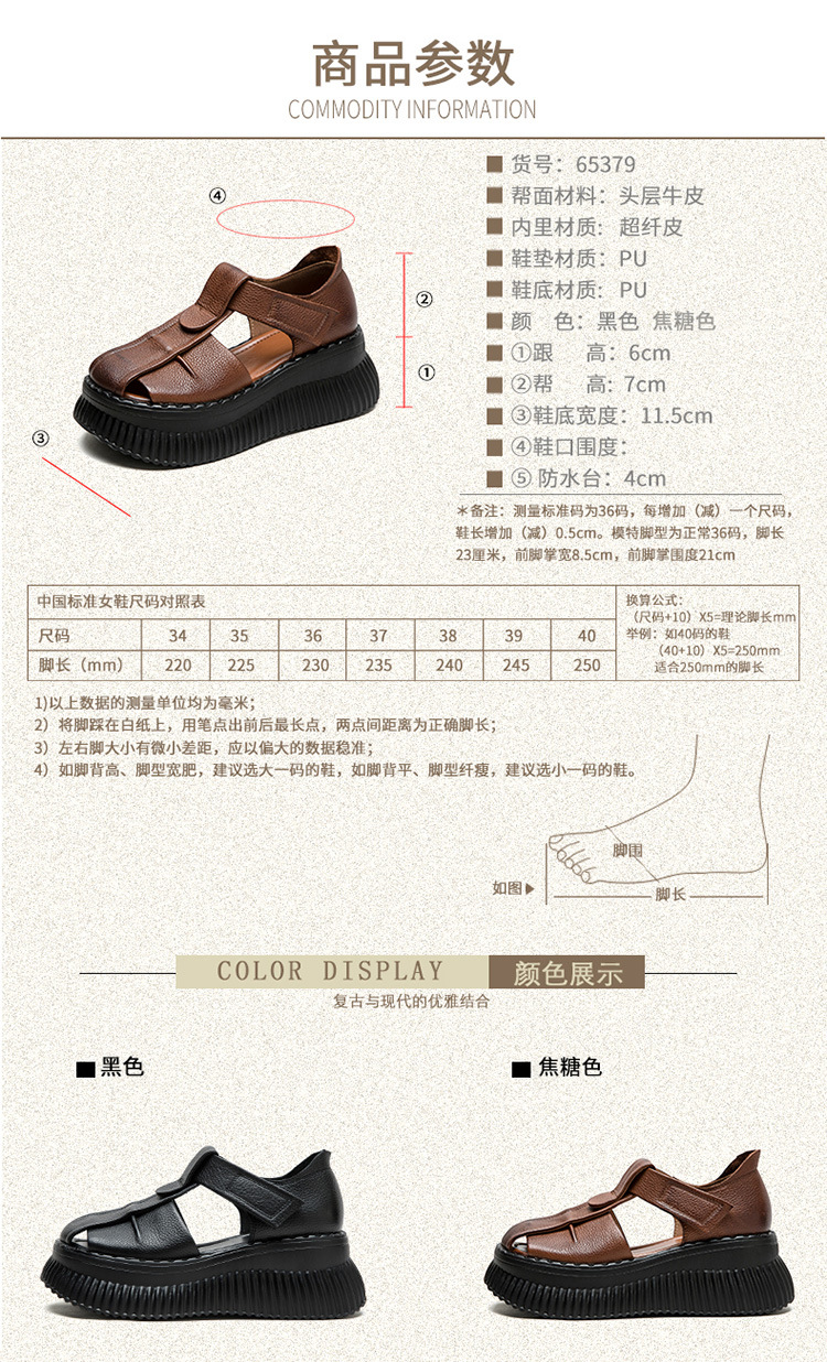 Giày sandal nữ thiết kế cổ điển với phần mũi bao kín. Sản phẩm được làm từ chất liệu da mềm mại, tạo cảm giác dễ chịu khi mang. Đế giày dạng đế xuồng cao vừa phải, giúp tôn dáng và dễ dàng di chuyển. Kiểu dáng mang phong cách hoài cổ, phù hợp để phối cùng nhiều loại trang phục khác nhau. Cách sử dụng đơn giản, chỉ cần xỏ chân vào và điều chỉnh qu cho vừa vặn. | Tên sản phẩm: Giày Dép Sandal Nữ Chất Liệu Da Bò Hàng Mùa Xuân Thu Đông Phục Cổ Cổ Điển - Giày Dép Nữ | Mã sản phẩm: B1957 - Giá: 1.420.000đ | Mã nhà sản xuất: SHDU-G04Hình ảnh sản phẩm
