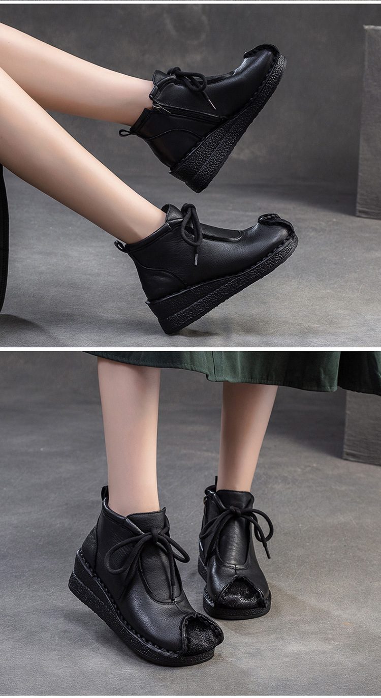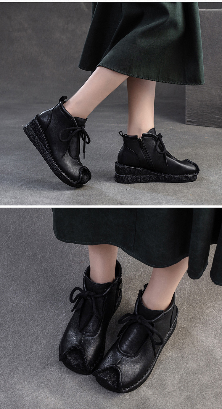 Đôi bốt cổ thấp này có kiểu dáng đơn giản, dễ phối đồ. Sản phẩm được làm từ chất liệu da bò thật, mang lại cảm giác êm chân và bền lâu. Phần đế được thiết kế có độ cao vừa phải, tôn dáng người đi một cách thoải mái. Kiểu dáng mang nét truyền thống, phù hợp cho nhiều dịp sử dụng. Bạn có thể dùng để đi làm, dạo phố hoặc trong các sinh hoạt thường ngày. | Tên sản phẩm: Giày Boot Cổ Thấp Nữ Chất Liệu Da Bò Đế Xuồng Hàng Mùa Xuân Thu Đông Trung Niên - Giày Dép Nữ | Mã sản phẩm: B1972 - Giá: 1.620.000đ | Mã nhà sản xuất: SHDU-G05Hình ảnh sản phẩm