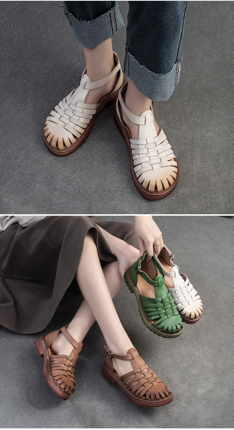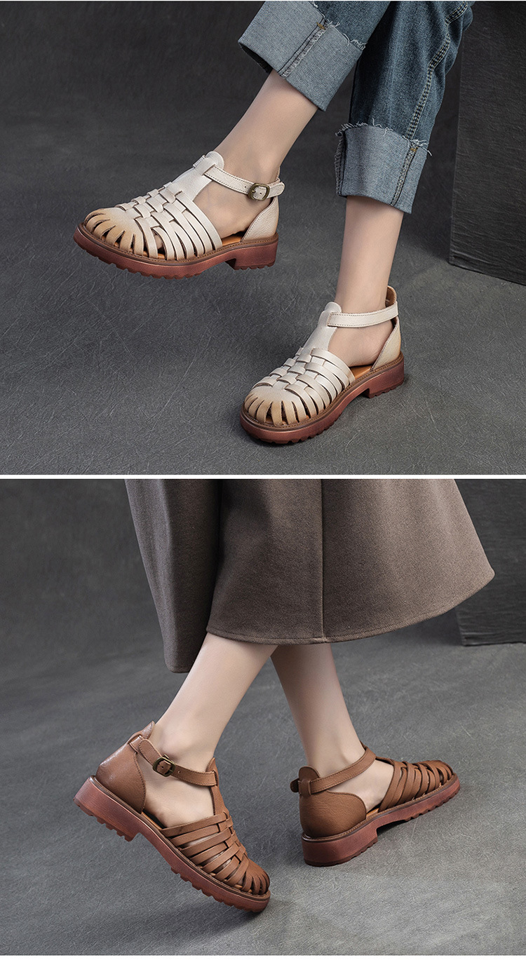 Giày sandal thiết kế kiểu dáng cổ điển châu Âu, được làm từ chất liệu da thật bền đẹp. Phần thân giày dệt lỗ thoáng khí giúp đôi chân luôn mát mẻ và khô ráo. Kiểu dáng kín mũi bảo vệ ngón chân một cách an toàn. Sản phẩm phù hợp cho những buổi dạo phố, gặp gỡ bạn bè hoặc đi làm. Cách sử dụng rất đơn giản, bạn chỉ cần qu giày và thắt chặt dây đeo là đã có ngay một set đồ hoàn chỉnh. | Tên sản phẩm: Giày Dép Sandal Nữ Chất Liệu Da Bò Thoáng Khí Hàng Mùa Hè Phục Cổ Cổ Điển - Giày Dép Nữ | Mã sản phẩm: B1983 - Giá: 1.420.000đ | Mã nhà sản xuất: SHDU-G04Hình ảnh sản phẩm